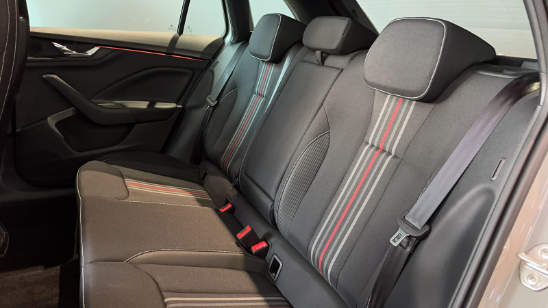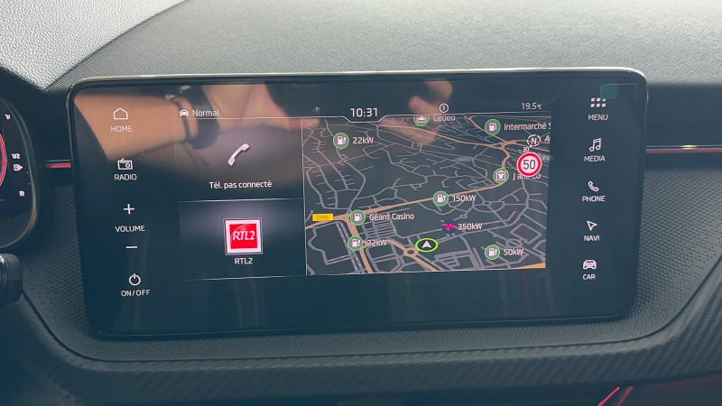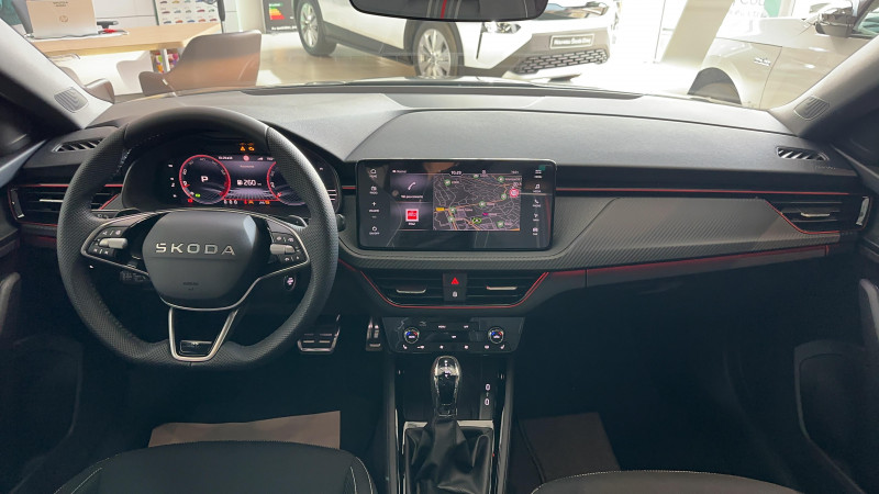 Allumage automatique des feux avec fonctions Coming Home / Leaving Home / Boîte de vitesse automatique à 7 vitesses / Climatronic : climatisation automatique bi-zones + fonction Air Care / Commandes de climatisation chromées / Déblocage automatique des portes et activation des feux de détresse en cas d'accident / Eclairage d'ambiance à LED (blanc/rouge) / Eclairage de plaque AR à LED / Feux AR Full LED avec clignotants à défilement / Feux AV antibrouillard à LED avec fonction corner light, éclairage des angles dans les virages / Front Assist: aide au freinage d'urgence incluant détection des piétons / Jantes alliage 17" Kajam Aero noires / Lane Assist : système d'aide au maintien dans la voie / Pommeau de levier de vitesse et poignée de frein de parking en cuir / Préparation pour dispositif d'attelage / Pédalier look aluminium / Volant multifonctions 3 branches sport en cuir avec palettes / 3ème appuie-tête AR à la place centrale / Accoudoir AV Jumbobox avec surpiqûres / Airbags frontaux conducteur et passager, déconnectable côté passager / Airbags latéraux AV avec airbags rideau / Assistance 24 /24 H pendant 7 ans / Aumônières au dos des sièges AV incluant des rangements pour téléphone / Avertisseur de ceinture de sécurité non-bouclée / Bacs de rangement dans les portes AV et AR / Blocage de l'arrivée de carburant en cas d'accident / Cache-bagages / Care connect + Infotainment Online 3 ans / Console centrale avec porte-bouteille et prise 12 V / Contrôle de la traction (TCS) / Correcteur électronique de trajectoire ESC, incl. ABS, MSR, ASR, XDS+, HBA, DSR, MKB, EBV, EDL, RBS, ESBS, TSA / Crochets dans le coffre à bagage / Diffuseur AR noir glossy / Disques de frein AV/AR / Eclairage du coffre à bagages / Entourage de calandre AV noire / Essuie-glace AV aéro à intermittence,avec capteur de lumière / Fixations ISOFIX sur banquette AR incluant 2 Top-Tether / Gratte-givre intégré dans la trappe à carburant / Infotainment Online 3 ans / Insert de bas de caisse noir glossy / Insert décoratif sur la planche de bord effet carbone avec liseré rouge et inserts de porte matériau synthétique effet carbone / Klaxon mono-ton / Lampes de lecture supplémentaires pour conducteur et passager / Lettrage noir à l'AR du véhicule / Parapluie intégré dans la portière conducteur / Pare-chocs AV couleur carrosserie / Pare-soleil AV conducteur et passager avec miroirs de courtoisie / Planche de bord en plastique moussé / Poignées de porte couleur carrosserie / Poignées de portes intérieures chromées / Poignées intérieures de maintien à l'AV et à l'AR avec crochet à l'AR / Porte bouteilles (0,5L) dans les portières AR / Porte bouteilles (1,5L) dans les portières AV / Porte gilet de sécurité / Porte-ticket sur côté gauche du pare-brise / Private E-Call / Radio numérique DAB (Digital Audio Broadcasting) / Rangement dans le coffre derrière les passages de roues / Réglage lombaire manuel des sièges AV / Rétroviseur intérieur électrochromatique / Rétroviseurs extérieurs noirs glossy / Seuils de portes SCALA à l'AV / Système de téléphonie Bluetooth / Tapis de sol textile
