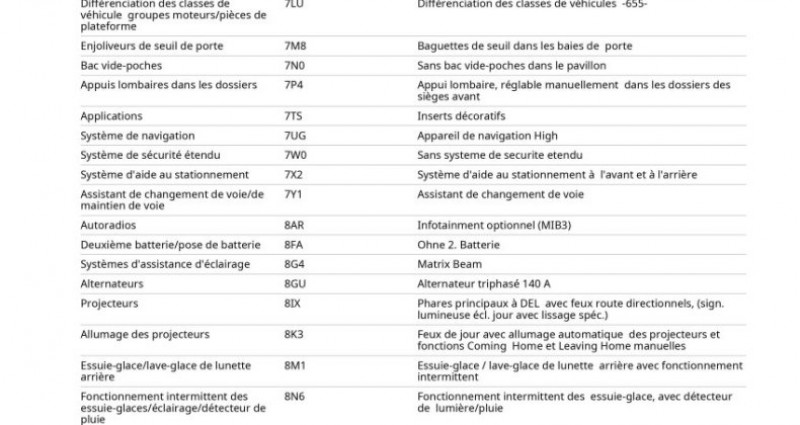 Première Main : Oui Nb. Vitesse : 7 Garantie : 12 Mois GARANTIE EQUIPEMENTS - Commandes du système audio au volant - Ecran tactile - Fonction mp3 - Gps cartographique - Kit mains libres bluetooth - Prise usb - Radio - Radio numérique dab - Services connectés - Système de localisation par satellite - Tmc - Aide au démarrage en côte - Arrêt et redémarrage auto. du moteur - Blocage électronique du différentiel - Capteur de luminosité - Capteur de pluie - Commande du comportement dynamique - Démarrage sans clé - Limiteur de vitesse - Palettes changement vitesses au volant - Régulateur de vitesse adaptatif - Système d'accès sans clé - Bleu energie - Tissu spécifique monte carlo/simili cuir carbone - Becquet arrière - Boucliers av et ar couleur caisse - Caméra de recul - Essuie glace arrière - Feux arrière à led - Feux de freinage d'urgence - Feux de jour à led - Feux de position à led - Jantes alu - Phares additionnels en virage - Phares avant led - Phares de route adaptatifs - Phares de virages adaptatifs - Poignées ton carrosserie - Radar de stationnement ar - Radar de stationnement av - Répétiteurs de clignotant dans rétro ext - Rétroviseurs dégivrants - Rétroviseurs extérieurs électrochromes - Rétroviseurs rabattables électriquement - Rétroviseurs électriques - Système d'éclairage intelligent - Toit panoramique en verre - Accoudoir arrière - Accoudoir central av avec rangement - Bacs de portes arrière - Bacs de portes avant - Banquette 1/3 2/3 - Banquette ar rabattable - Banquette arrière 3 places - Boite à gant fermée - Clim automatique bi zones - Compte tours - Eclairage d'ambiance - Ecran multifonction couleur - Filtre à pollen - Fixation isofix siège passager avant - Fixations isofix aux places arrières - Frein à main en cuir - Lampe de coffre - Lampes de lecture à l'avant - Lunette ar dégivrante - Lunette arrière surteintée - Miroir de courtoisie conducteur - Miroir de courtoisie passager - Ordinateur de bord - Ouverture des vitres séquentielle - Plafonnier central av et ar à led - Poches d'aumonières - Pommeau de levier vitesse en cuir - Porte gobelets arrière - Porte gobelets avant - Prise 12v - Pédalier sport - Rétroviseur intérieur électrochrome - Siège conducteur avec réglage lombaire - Siège conducteur réglable en hauteur - Siège passager avec réglage lombaire - Siège passager réglable en hauteur - Sièges avant sport - Tablette cache bagages - Température extérieure - Verrouillage centralisé des portes - Verrouillage centralisé à distance - Vitres arrière surteintées - Vitres arrière électriques - Vitres avant électriques - Vitres teintées - Volant multifonction - Volant réglable en profondeur et hauteur - Abs - Afil - Aide au freinage d'urgence - Airbag conducteur - Airbag passager déconnectable - Airbags latéraux avant - Airbags rideaux - Antidémarrage électronique - Antipatinage - Assistance de maintient de trajectoire - Ceintures avant ajustables en hauteur - Contrôle de freinage en courbe - Détecteur de sous gonflage - Ebd - Esp - Freinage automatique d'urgence - Phares antibrouillard - Reconnaissance panneaux de signalisation - Régulateur de couple d'inertie - Répartiteur électronique de freinage - Système avancé de détection d'obstacles - Système de contrôle des angles morts - Système de détection de somnolence - Système de prévention des collisions - Système de sécurité post collisions - Troisième ceinture de sécurité - Témoin de bouclage ceinture conducteur - Témoin de perte de pression pneumatique - ADS Automobile SAS grâce à son partenariat avec des organismes de crédits reconnus est en mesure de vous proposer des financements allant de 24 à 84 mois* avec garantie allant jusqu’à 84 mois. Documents à fournir: carte d’identité, justificatif de domicile de moins de 3 mois (facture EDF, Tel… ), 3 derniers bulletins de salaire et votre RIB. (*) Voir conditions en concession A 1 heure de Nancy/Metz et de Strasbourg. Proche gares TGV Forbach et Sarrebruck.