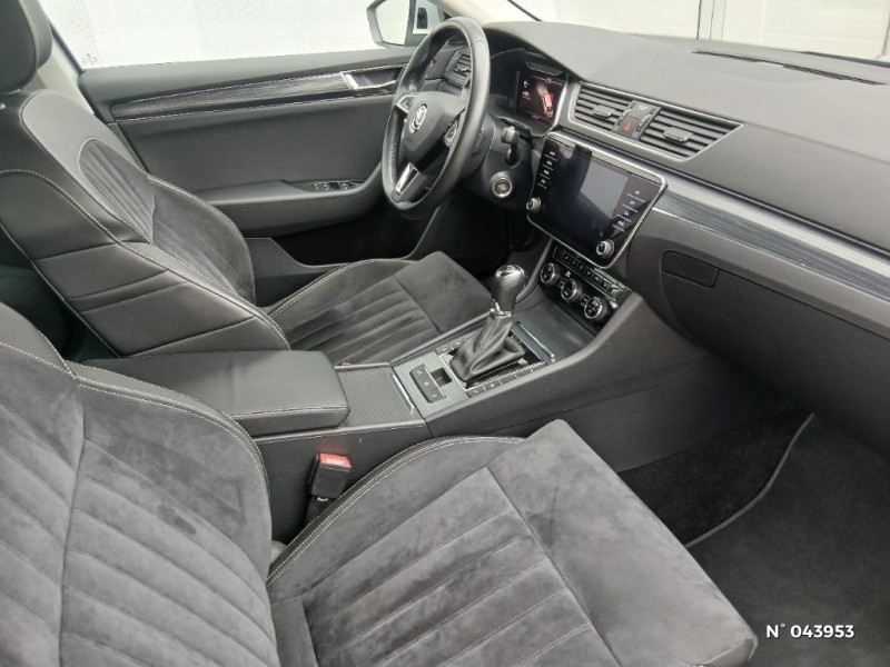 Sécurité enfant automatique / Sécurité enfant manuelle / Seuils de portes AV et AR / Seuils de portes spécifique / Siège conducteur à réglage électrique à mémoire incluant les rétroviseurs extérieurs dégivrants et à mémoire / Siège conducteur électrique à mémoire (incluant les rétroviseurs extérieurs à mémoire) et éclairage au niveau des pieds des passagers AR / SKODA Connect : Infotainment Online 1 an + Care Connect 1 an + Appel d'urgence E-call+ / Suspensions pilotées spécifiques / Système de navigation GPS Amundsen (Europe de l'Ouest, écran couleur 8", WLAN, 2 lecteurs de carte SD) / Système de récuperation d'énergie au freinage / Système de sécurité ISOFIX pour 2 sièges enfants sur les places AR extérieures / Système d'infotainement Amundsen nouvelle génération (MIB3) avec navigation GPS 2,5D et écran couleur 8": Cartographie Europe de l'Ouest intégrée au disque dur SSD de 64 Go (incluant l'information sur l'état du trafic en France), Connexion hotspot WLAN, commande vocale et gestuelle, mise à jour en ligne à vie, Web Radio, Affichage de la carte de navigation sur l'écran du système d' infotainment ou sur l'écran du Digital Cockpit / Système Smartlink+ : version sans fil / Système Smartlink: Mirrorlink, Android Auto, Carplay / Système Smartlink+ (Mirrorlink, Android Auto, Carplay) avec connexion filaire ou sans fil sur Apple / Système téléphone mobile Bluetooth à reconnaissance vocale recharge par induction / Système téléphone mobile Bluetooth avec commande vocale / Système téléphone mobile Bluetooth avec commande vocale et fonction hotspot WLAN / Tapis de sol / Témoin d'alerte lorsque le niveau de lave-glace est bas / Volant 2 branches chauffant Multifonctions réglable en hauteur et en profondeur avec palettes / Volant 2 branches en cuir, chauffant, multifonctions / Volant 2 branches multifonctions chauffant / Volant 2 branches multifonctions chauffant / 2 ports USB à l'AV : 1 port USB-A dans l'accoudoir et 1 port USB-C dans le vide poche / 4 vitres électriques à impulsion avec système anti-pincement / Câble de recharge mode 3 / Châssis standard / Coques de rétroviseurs extérieurs couleur carrosserie / Digital Cockpit: compteurs digitaux personnalisables / Direction assistée asservie à la vitesse / Driving Mode Select : sélection des profils de conduite / Eclairage au niveau des pieds des passagers AV et AR / Enjoliveurs de vitres chromés / Enjoliveurs de vitres latérales chromés / Entourage des buses de ventilation Chromé / Entourage des vitres chromées / ESC+ incluant ABS, EBD, XDS+, MSR, ASR, EDS, HBA, DSR, MKB et vFGS ESC : correcteur électronique de trajectoire / ABS : système antiblocage des roues / EBD : Répartiteur électronique de freina ge / XDS + : blocage électronique accru du différentiel / MSR : régulateur de couple d'inertie / ASR : anti patinage électronique / EDS : blocage électronique du différentiel /HBA : assistance hydraulique de freinage / DSR : contrebraquage assisté / MKB : freinage anti multicollisions / Espace de rangement sur 2 côtés du coffre / Essuie-glace AV avec intermittence réglable / Feux de position, de stop et de recul à LED / Frein à main électrique / Front Assist: aide au freinage d'urgence incluant détection des piétons / Garantie 2 ans / kilométrage illimité / Gratte-givre dans la trappe à carburant / Grille de calandre et entourage chromés / Inserts décoratifs noir veiné avec chrome (éclairage d'ambiance intégré) / Interface multimédia USB compatible Apple connectivity / Jantes alliage 17" Stratos (pneus 215/55 R17) / Jantes alliage 17" Stratos (pneus 215/55 R17) / Jantes alliage 17" Stratos (pneus 215/55 R17) / KESSY : système d'autorisation d'accès, de démarrage et arrêt du moteur main-libre / Kit anti-crevaison / Klaxon 2 tons / Lampe torche à LED amovible dans le coffre / Lave-phares haute pression / Logo d'accueil SKODA projeté sous les portes AV / Miroirs de courtoisie éclairés aux places AV / Ordinateur de bord grand écran "Maxi-Dot" couleur / Pack d'éclairage intérieur Full LED / Pack Visiblité / Pare-chocs couleur carrosserie / Peinture opaque Bleu Energie / Petit Pack Cuir / Phares AV à LED (feux de jour, de position, de croisement et de route) / Phares AV antibrouillard avec fonction "Corner lights" / Poignées de portes intérieures chromées / Porte-gobelet à l'AV / Préparation pour crochet d'attelage / Radio numérique DAB (Digital Audio Broadcasting) / Radio numérique DAB (digital audio broadcasting) / Rampes de pavillon Argent / Rangement porte-lunettes intégré au pavillon / Rangements fermés sur les côtés du coffre à bagage et intégrant les éléments cargoflex / Range-parapluie dans les portes AV (incluant un parapluie côté conducteur) / Range-parapluie dans les portes AV (incluant un parapluie pour chaque rangement) / Réglage lombaire des sièges AV / Régulateur de vitesse + Limiteur de vitesse / Rétroviseur intérieur électrochromatique / Rétroviseurs extérieurs à réglages électriques, dégivrants, rabattables électriquement, électrochromatiques (côté conducteur) et à mémoire / Airbags frontaux conducteur et passager AV (dont passager déconnectable) / Airbags latéraux (thorax) dans les sièges AV / Alerte visuelle et sonore d'oubli de ceinture de sécurité conducteur et passager / Allumage automatique des feux avec fonctions Coming Home / Leaving Home / Assistance 24 /24 H pendant 7 ans / Bacs de rangement dans les portes AV (pour bouteille de 1,5 l. ) et AR (pour bouteille de 1,5 l) / Câble de recharge mode 2 / 8 HP / Rétroviseurs extérieurs à réglages électriques, dégivrants, rabattables électriquement, électrochromatiques et à mémoire / Rétroviseurs extérieurs avec éclairage du sol