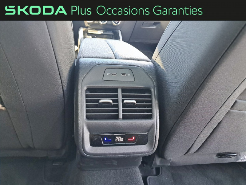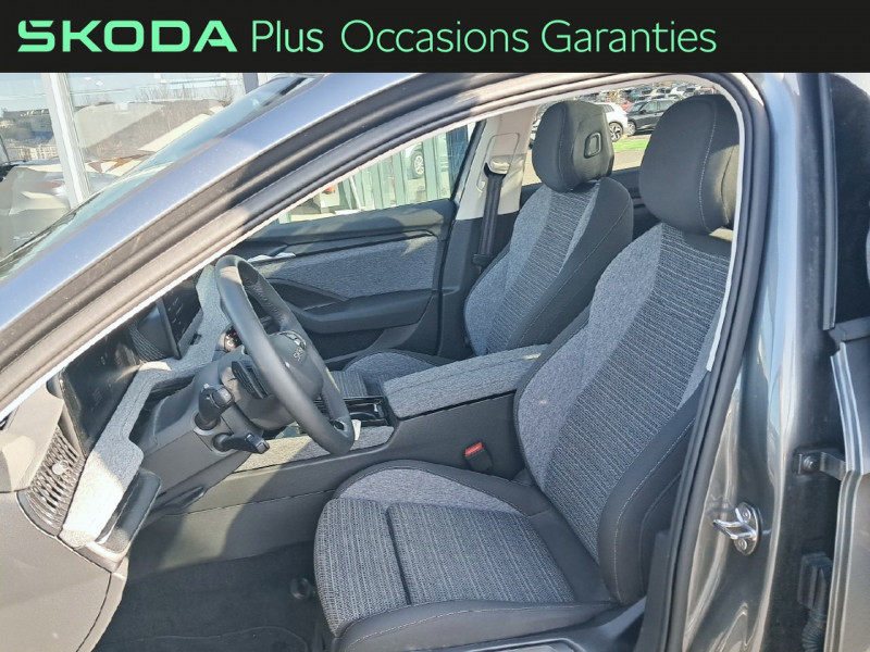Allumage automatique des feux avec fonctions Coming Home / Leaving Home / Auto Light Assist - Gestion automatique des pleins phares / Boutons des buses de ventilation Unique Dark Chrome (rendu alu mat) / Entourage de calandre Unique Dark Chrome (rendu alu mat) / Feux de position, de stop et de recul à LED / Insert d'une bande Unique Dark Chrome (rendu alu mat) dans le pare-choc AV / Jantes alliage Mintaka 17" argent pneumatiques 215/55 R17 94W, 7.5Jx17 / Phares AV à LED (feux de jour, de position, de croisement et de route) / Préparation pour crochet d'attelage / Radars de stationnement AV/AR avec assistance à la manoeuvre / Système d'infotainment 13'' nouvelle génération (MIB3) avec navigation GPS Cartographie intégrée au disque dur SSD de 128 Go, mise à jour cartographie gratuite (Mise à jour OTA - Over the air = Mise à jour a distance) Commande vocale et gestuelle, Web Radio / Travel Assist 2.0 Adaptation automatique à la limitation de vitesse, centrage dans la voie de circulation, assistant rond-point et virages dangereux / Volant 2 branches en cuir, multifonctions et intégrant les palettes au volant / 1 ports USB type C de 15kW à l'AV, situé sur le rétroviseur intérieur / 2 cargo éléments / 2 crochets porte-sacs rabattables situés dans le coffre / 4 ports USB type C de 45kW dans la console centrale à l'AV, derrière la console centrale à l'AR / 4 vitres électriques avec système anti-pincement / 8 HP / Accoudoir central AR Design Loft avec porte-gobelets / Accoudoir central AV passager et conducteur / Airbags frontaux conducteur et passager AV (dont passager déconnectable) / Airbags latéraux (thorax) dans les sièges AV / Alerte visuelle et sonore d'oubli de ceinture de sécurité conducteur et passager / Assistance 24 /24 H pendant 7 ans / Assistances à la conduite : Détection et reconnaissance des panneaux de signalisation, Front Assist Lane Assist, Side Assist, Trafic Jam Assist, Emergency Assist, Pedestrian, Protection, Crossroad Assist, Turn Assist, Rear Traffic Alert / Aumônières au dos des sièges AV avec emplacement pour smartphone / Bacs de rangement dans les portes AV (pour bouteille de 1,5 l. ) et AR (pour bouteille de 1,5 l) / Catadioptres dans les portes AV et AR / Châssis standard / Ciel de toit gris céramique / Coques de rétroviseurs extérieurs couleur carrosserie / Couvre-coffre coulissant / Crew Protect Assist - Protection active accrue des passagers / Digital Cockpit 10,25'' / Eclairage dans le coffre (2 lampes) / Eclairage sur le hayon (2 lampes) / Enjoliveurs de vitres latérales noirs mat / Entonnoir intégré au couvercle du réservoir de lave-glace / ESC+ incluant ABS, EBD, XDS+, MSR, ASR, EDS, HBA, DSR, MKB et vFGS / Espace de rangement Jumbobox sous accoudoir central AV avec compartiment de rangement pour lunettes de soleil / Espace de rangement sur le côté droit du coffre / Essuie-glace AV avec intermittence réglable / Frein à main électrique / Gratte-givre dans la trappe à carburant / Inserts décoratifs de planche de bord et de contreportes Noir grainé / KESSY Go : système de démarrage et arrêt du moteur sans clés / Klaxon bi-ton / Parapluie dans la porte côté conducteur / Pare-chocs couleur carrosserie / Phare antibrouillard à l'AR (côté conducteur) / Prise 12V dans la Jumbo Box - Prise 12V dans le coffre / Radio numérique DAB (Digital Audio Broadcasting) / Rampes de pavillon noir mat / Rétroviseur intérieur électrochromatique sans contour / Rétroviseurs extérieurs avec éclairage du sol / Rétroviseurs extérieurs à réglages électriques, dégivrants, rabattables électriquement et électrochromatique (côté conducteur) avec Projection du logo sur le sol / Seuils de portes AV / Siège conducteur et passager partiellement électriques - Réglage électrique de l'inclinaison du siège - Réglage mécanique de la hauteur du siège - Réglage mécanique de la position du siège -Réglage mécanique de la profondeur du siège - Réglage éléctrique des supports lombaires / Sièges conducteur et passager avec fonction massante basique / SKODA Connect : Infotainment Online 3 an + Care Connect 3 an + Appel d'urgence E-call+ / Smart Dials (Commandes intelligentes) / Système de sécurité ISOFIX pour 2 sièges enfants sur les places AR extérieures et siège passager AV / Système de téléphonie mobile Bluetooth avec dispositif Phonebox refrigérée et recharge par induction 15W / Système Smartlink (Android Auto, Apple Carplay) sans fil / Sécurité enfant électrique / Tapis de sol AV/AR / Témoin d'alerte lorsque le niveau de lave-glace est bas / Visières pare-soleil avec miroirs de courtoisie éclairés aux places AV / Vitres latérales et lunette AR surteintées