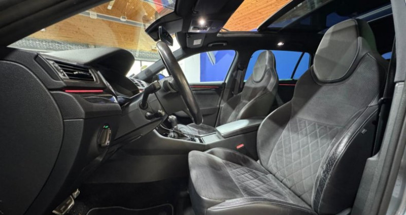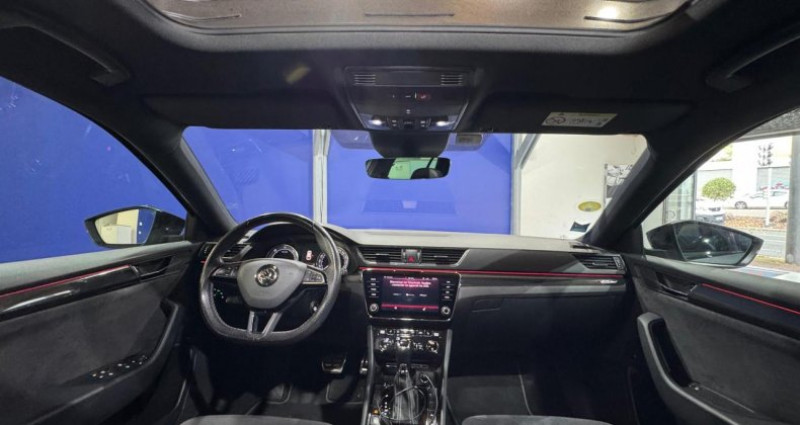 ======= OPTIONS ======= Banquette arrière rabattable automatiquement depuis le coffre à bagages Climatisation automatique Climatronic tri-zone Crochet d'attelage Direction assistée progressive Double plancher de chargement variable dans le coffre Hayon de coffre à ouverture et fermeture électriques Jantes alliage 19 Vega KESSY : système d'autorisation d'accès, de démarrage et arrêt du moteur main-libre, incluant l'alarme volumétrique et la fonction 'Safe lock' Pack Confort Park Assistant 3.0 Peinture métallisée Régulateur de vitesse adaptatif, contrôle de la vitesse jusqu'à 210km h Rideaux pare-soleil manuels pour les vitres arrière Sièges avant chauffants Sound System CANTON 12 haut-parleurs Toit ouvrant panoramique électrique en verre ======= EQUIPEMENTS DE SERIE ======= 3 appuie-tête arrière réglables en hauteur 4 vitres électriques à impulsion avec système anti-pincement 8 haut-parleurs ABS : Système de freinage avec antiblocage des roues Accoudoir central arrière avec trappe à skis Accoudoir central avant Aide au démarrage en côte Aide au stationnement avant arrière Airbag genoux conducteur Airbags frontaux conducteur et passager (déconnectable côté passager) Airbags latéraux (thorax) dans les sièges avant Airbags rideaux (tête) avant et arrière Alerte visuelle et sonore d'oubli des ceintures de sécurité conducteur et passager Allumage automatique des projecteurs ASR (antipatinage électronique) Assistance 24 24 H pendant 7 ans Banquette arrière rabattable 1 3-2 3 Boîte à gants éclairée et réfrigérée Caméra de recul Capteur de pluie Ceintures de sécurité avant à 3 points, réglables en hauteur, avec prétensionneurs Châssis Sport Ciel de toit noir Climatisation automatique bi-zone Climatronic Contrôle de pression des pneus ( TPMS ) Diffuseur arrière noir Glossy intégrant un insert alu optic façon double sortie d'échappement Direction assistée asservie à la vitesse Driving Select : selection du profil de conduite DSR : contrebraquage assisté Eclairage au niveau des pieds des passagers avant et arrière Eclairage d'ambiance intérieur à LED incluant 10 coloris Eclairage du sol intégré aux rétroviseurs extérieurs EDS : blocage électronique de différentiel Enjoliveurs de vitres latérales noirs Glossy ESC (Correcteur électronique de trajectoire) Essuie glace arrière Essuie-glaces avant avec intermittence réglable Feu arrière design LED Plus Feux de position et de stop arrière à LED Frein de parking électrique Front Assistant : freinage automatique d'urgence Garantie 2 ans (kilométrage illimité) Grille de calandre noire Glossy HBA (système hydraulique d'assistance au freinage) Inserts décoratifs type Carbone Interface multimédia USB compatible Apple connectivity Jantes alliage 18 Zenith noires glossy (pneumatiques 235 45 R18 94W) KESSY : système d'autorisation d'accès, de démarrage et arrêt du moteur main-libre Klaxon bi-ton Lampe torche amovible dans le coffre Limiteur de vitesse Logos ''SportLine'' sur les ailes avant Miroirs de courtoisie éclairés aux places avant MKB (système anti multicollision) MSR : Régulateur de couple d'inertie moteur Ordinateur de bord grand écran Maxi-Dot couleur Pack Techno Pare-chocs couleur carrosserie Peinture spéciale Gris Perle Petit Pack Cuir Phares avant antibrouillard avec fonction ''Corner-light'' Phares avant bi-Xénon directionnels avec système d'éclairage auto-adaptatif AFS, feux de jour à LED et lave-phares rétractables Poches aumônières au dos des sièges avant Poignées de portes intérieures chromées Porte-gobelet à l'avant Rampes de pavillon Glossy noires Rangement pour lunettes dans pavillon Rangement sur les côtés du coffre Réglage lombaire des sièges avant Régulateur de vitesse adaptatif, contrôle de la vitesse jusqu'à 160km h Répartiteur électronique de freinage (EBD) Répétiteurs de clignotants intégrés aux rétroviseurs extérieurs Rétroviseurs extérieurs électriques et dégivrants Rétroviseurs extérieurs noirs Glossy et poignées de portes dans la teinte de la carrosserie Rétroviseurs intérieur et extérieurs électrochromatiques rabattables électriquement Roue de secours Sellerie sport spécifique cuir Alcantara Anthracite Seuils de porte avant et arrière Siège conducteur électrique à mémoire incluant les rétroviseurs extérieurs dégivrants et à mémoire SKODA Connect : Infotainment Online 1 an + Care Connect 1 an + Appel d'urgence E-call Smartlink+ (intègre les fonctionnalités Smartlink + Smartgate) Système de navigation GPS couleur ''Amundsen'' avec cartographie Europe de l'Ouest, 2 lecteurs de carte SD Système de récupération d'énergie au freinage Système de sécurité Isofix pour 2 sièges enfants sur les places arrière extérieures Système Stop & Start Système téléphone mobile Bluetooth à contrôle vocal incluant la fonction hotspot WLAN Tapis de sol spécifique à surpiqûres Verrouillage centralisé à distance (2 clés) Vitres et lunette arrière sur-teintées Volant cuir 3 branches sport multifonctions Radio Téléphone à méplat, avec palettes au volant Volant réglable en hauteur et en profondeur XDS+ : contrôle électronique du différentiel Nb. Vitesses : 7 Conso Mixte : l/100