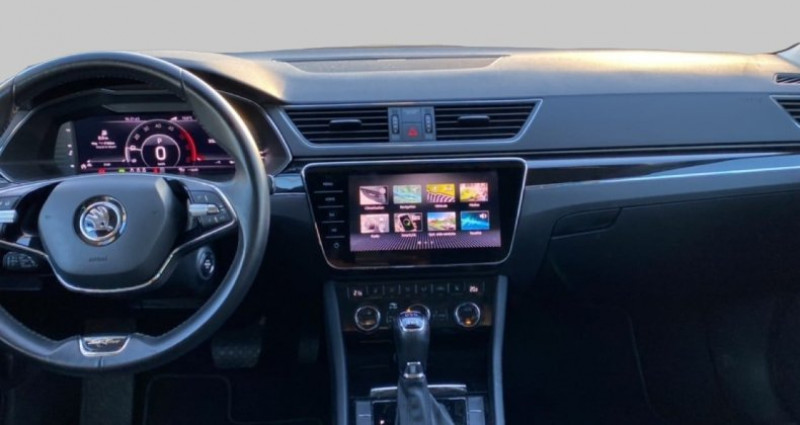 Cylindrée : 1968 cm3 Nb. Vitesse : 7 - Vitrage acoustique sur les vitres AV - Jantes alliage 18 ANTARES - Aide au démarrage en côte - Allumage automatique des feux avec fonctions Coming Home / Leaving Home - Auto Light Assist : gestion automatique des feux de route avec caméra multifonctions - Climatisation automatique Climatronic tri-zone - Couvre-coffre automatique - Feux de position, de stop et de recul Full LED avec clignotants AR à défilement et insert de coffre chromé - Front Assist: aide au freinage d'urgence incluant détection des piétons - Hayon de coffre à ouverture et fermeture électriques avec couvre-coffre automatique - Jantes alliage 18 Propus Aéro (pneumatiques 235/45 R18) - Pack Techno *** Avec : Digital Cockpit *** Avec : Hayon de coffre à ouverture et fermeture électriques avec couvre-coffre automatique *** Avec : Pack d'éclairage extérieur Full LED - Pack d'éclairage extérieur Full LED *** Avec : Lave-phares *** Avec : Auto Light Assist : gestion automatique des feux de route avec caméra multifonctions *** Avec : Phares AV Full LED avec technologie Matrix Beam *** Avec : Feux AR Full LED avec clignotants AR à défilement *** Avec : Insert de coffre chromé *** Avec : Eclairage de plaque à LED *** Avec : Effets de bienvenue au déverrouillage - Pack d'éclairage intérieur Full LED *** Avec : Eclairage d'ambiance intérieur à LED incluant 10 coloris *** Avec : Lampes de lecture AV/AR et plafonnier à LED *** Avec : Eclairage des poignées de porte à LED *** Avec : Eclairage au niveau des pieds à LED *** Avec : Miroirs de courtoisie à LED et éclairage des bacs de porte AV/AR - Pack Visiblité *** Avec : Détecteur de pluie *** Avec : Rétroviseur intérieur électrochromatique *** Avec : Allumage automatique des feux avec fonctions Coming Home / Leaving Home - Petit Pack Cuir *** Avec : Volant, levier de vitesse et fourreau de frein à main en cuir - Phares AV Full LED avec technologie Matrix Beam, éclairage de plaque à LED, effets de bienvenue au déverrouillage et lave-phares - Préparation pour crochet d'attelage - Radars de stationnement AV/AR - Sellerie Cuir - Système d'infotainement Columbus nouvelle génération (MIB3) avec navigation GPS 3D écran couleur 9,2 avec cartographie Europe de l'Ouest intégrée au disque dur SSD de 64 Go (incluant l'information sur l'état du trafic en France) - Connexion hotspot WLAN, commande vocale et gestuelle, mise à jour en ligne à vie, Web Radio, - Possibilité d'afficher la carte de navigation simultanément sur l'écran du Digital Cockpit et sur l'écran du système d'infotainment - Toit ouvrant électrique en verre (panoramique) - 2 ports USB à l'AV : 1 port USB-A dans l'accoudoir et 1 port USB-C dans le vide poche - 3 appuis-têtes AR réglables en hauteur - 3ème clé - 4 vitres électriques à impulsion avec système anti-pincement - Accoudoir central AR + trappe à skis - Accoudoir central AV - Airbag genoux côté conducteur - Airbags frontaux conducteur et passager AV (dont passager déconnectable) - Airbags latéraux (thorax) dans les sièges AV - Airbags rideaux AV/AR - Alerte visuelle et sonore d'oubli de ceinture de sécurité conducteur et passager - Appuie-têtes AV réglables en hauteur - Assistance 24 /24 H pendant 7 ans - Bacs de rangement dans les portes AV (pour bouteille de 1,5 l. ) et AR (pour bouteille de 1,5 l) - Baguettes de protection latérales chromées - Banquette AR rabattable 2/3-1/3 - Boîte à gants éclairée et réfrigérée - Caméra de recul - Ceintures de sécurité AV à 3 points, réglables en hauteur, avec prétensionneurs - Châssis avec suspensions pilotées (DCC) - Contrôle de la pression de pneus - Coques de rétroviseurs extérieurs couleur carrosserie - Digital Cockpit - Direction assistée asservie à la vitesse - Driving Mode Select : sélection des profils de conduite - Détecteur de pluie - Eclairage au niveau des pieds des passagers AV et AR - Entourage des buses de ventilation Chromé - Entourage des vitres chromées - ESC+ incluant ABS, EBD, XDS+, MSR, ASR, EDS, HBA, DSR, MKB et vFGS ESC : correcteur électronique de trajectoire / ABS : système antiblocage des roues / EBD : Répartiteur électronique de freina ge / XDS + : blocage électronique accru du différentiel / MSR : régulateur de couple d?inertie / ASR : anti patinage électronique / EDS : blocage électronique du différentiel /HBA : assistance hydraulique de freinage / DSR : contrebraquage assisté / MKB : freinage anti multicollisions - Espace de rangement sur 2 côtés du coffre - Essuie-glace AR - Essuie-glace AV avec intermittence réglable - Frein à main électrique - Gratte-givre dans la trappe à carburant - Grille de calandre et entourage chromés - Inserts chromés dans les moulures latérales - Inserts décoratifs laqués noir avec badge ''Laurin & Klement'' (éclairage d'ambiance intégré) - KESSY : système d'autorisation d'accès, de démarrage et arrêt du moteur main-libre - Klaxon 2 tons - Lave-phares haute pression - Logo d'accueil SKODA projeté sous les portes AV - Logos ''Laurin & Klement'' sur les ailes AV - Miroirs de courtoisie éclairés aux places AV - Pare-chocs couleur carrosserie - Phares AV antibrouillard avec fonction Corner lights - Poignées de portes intérieures chromées - Porte-gobelet à l'AV - Radio numérique DAB (Digital Audio Broadcasting) - Rampes de pavillon Argent - Range-parapluie dans les portes AV (incluant un parapluie côté conducteur) - Rangements fermés sur les côtés du coffre à bagage et intégrant les éléments cargoflex - Rappels de clignotants intégrés aux rétroviseurs extérieurs - Roue de secours temporaire - Réglage lombaire des sièges AV - Régulateur de vitesse adaptatif intégrant le limiteur de vitesse incluant la protection des piétons (210 km/h) - Rétroviseur intérieur électrochromatique - Rétroviseurs extérieurs avec éclairage du sol - Rétroviseurs extérieurs à réglages électriques, dégivran