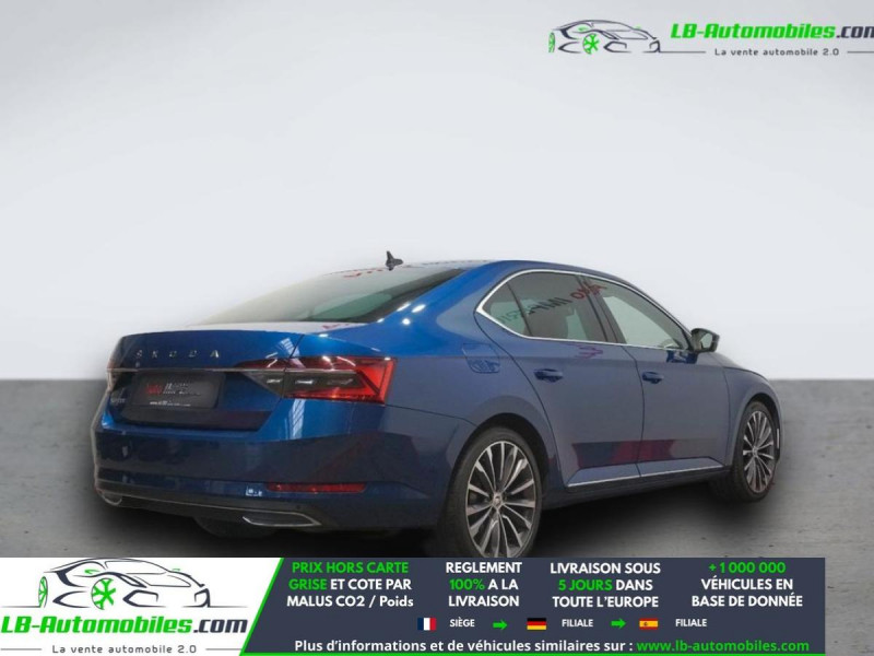 Référence : 1144527 Vos Avantages chez LB-AUTOMOBILES.com / Prix affiché TTC Livré hors carte grise / Livraison sous 10 jours dans toute la France hors 31 / Pas d?avance de frais paiement du véhicule 100% à la livraison par virement. Skoda Superb Neuf remisée, Skoda Superb Occasion Toulouse Beaupuy 31850, Skoda Superb Véhicule sorti de réseau collaborateur, Skoda Superb import, Skoda Superb importateur, Skoda Superb Livraison possible dans toute la France sous 5 jours, Skoda Superb, Skoda Superb Location Option Achat, Skoda Superb LLD, Skoda Superb Longue Durée, Skoda Superb TVA récupérable. Possibilité d'extension de garantie 12, 24,36 mois, Pour tout autres voitures import neufs ou occasions collaborateur fortement remisée, Mandataire Audi, Mandataire BMW, Mandataire Volkswagen, Mandataire Mercedes, Mandataire Peugeot Espagne, Mandataire Renault Espagne, Porsche import, Mandataire Citroën Espagne, Mandataire Seat Espagne, n'hésitez pas à nous contacter. « Sous réserve de vente préalable et erreur de saisie » Principaux équipements : - ABS - Accoudoir - Android Auto - Antidémarrage - Apple CarPlay - Assistance au freinage d'urgence - Assistance de démarrage en côte - Assistant d'angle mort - Assistant de sortie de stationnement - Assistant feux de route - Avertisseur de franchissement de ligne - Bluetooth - Boîte de vitesses robotisée - Capteur de lumière - Capteur de pluie - Carnet d'entretien - Chargement par induction pour smartphones - Chauffage auxiliaire - Cockpit numérique - Commande vocale - Contrôle de la pression des pneus - Direction assistée - Éclairage adaptatif de virage - Éclairage d'ambiance - Éclairage route non éblouissant - Écran tactile - ESP - Fermeture centralisée - Feux de jour LED - Garantie - GPS - Hayon électrique - Isofix - Jantes alliage - Kit mains libres - Ordinateur de bord - Package hiver - Phare antibrouillard - Phares LED - Port USB - Radio DAB - Réglage électrique des sièges - Réglage électrique des sièges avec fonction mémoire - Régulateur de vitesse adaptatif - Rétroviseur extérieur électrique - Rétroviseur intérieur anti-éblouissement automatique - Rétroviseurs extérieurs rabattables électriquement - Révision complète - Sièges arrières chauffants électriques - Sièges chauffants - Sièges sport - Streaming musical intégré - Support lombaire - Suspension adaptative - Système antipatinage - Système d'alarme - Système d'appel d'urgence - Système d'avertissement de la distance - Système de détection de la fatigue - Système de limitation de la vitesse - Système de nettoyage des phares - Système de reconnaissance des panneaux de signalisation - Système de sonorisation - Système Stop & Start - Traction avant - Tuner/radio - Véhicule non-fumeur - Ventilation du siège - Verrouillage centralisé sans clé - Vitre chauffante - Vitres électriques - Vitres teintées - Volant chauffant - Volant en cuir - Volant multifonction