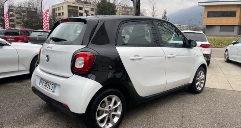 Smart Forfour 71ch passion twinamic, (Berline), Blanc / Toit Noir, 4cv, 5 portes, mise en circulation le 12-03-2019, garantie 6 mois. 4 places, longueur : 3,50 mètres, poids en charge 1435 Kg, boîte de vitesse : automatique OPTIONS ET EQUIPEMENTS : Audio - Télécommunications - 2 Haut parleurs - Fonction MP3 - GPS cartographique - Kit mains-libres Bluetooth - Prise USB - Prise auxiliaire de connexion audio - Pré-équipement Radio - Radio Conduite - Aide au démarrage en côte - Arrêt et redémarrage auto. du moteur - Commande Mode ECO - Limiteur de vitesse - Palettes changement vitesses au volant - Régulateur de vitesse Extérieur - Essuie-glace arrière - Feux de jour à LED - Jantes Alu - Phares halogènes - Poignées ton carrosserie - Rétroviseurs dégivrants - Rétroviseurs électriques Intérieur - Bacs de portes arrière - Bacs de portes avant - Banquette 2 places - Banquette 50/50 - Banquette AR rabattable - Boite à gants fermée - Climatisation - Compte tours - Ecran multifonction couleur - Filtre à Pollen - Fixations Isofix aux places arrières - Lampe de coffre - Lampes de lecture à l'avant - Lunette AR dégivrante - Lunette arrière - Miroir de courtoisie conducteur - Miroir de courtoisie passager - Ordinateur de bord - Ouverture des vitres séquentielle - Pommeau de levier vitesse en cuir - Porte-gobelets arrière - Porte-gobelets avant - Prise 12V - Siège conducteur réglable en hauteur - Siège passager rabattable - Tablette cache bagages - Température extérieure - Verrouillage auto. des portes en roulant - Verrouillage centralisé des portes - Verrouillage centralisé à distance - Vitres avant électriques - Vitres entrebaillantes sur rang 2 - Volant cuir - Volant multifonction - Volant réglable en hauteur Sécurité - ABS avec Répartiteur électr. de freinage - Airbag conducteur - Airbag genoux - Airbag passager - Airbags latéraux avant - Antidémarrage électronique - Antipatinage - Ceintures avant ajustables en hauteur - Contrôle élect. de la pression des pneus - EBD - ESP - Préparation Isofix - Témoin de bouclage des ceintures AV Autres équipements et informations : - Historique complet Reprise possible IDEAL AUTO 9 Boulevard Paul Langevin 38600 Fontaine