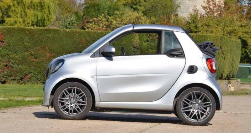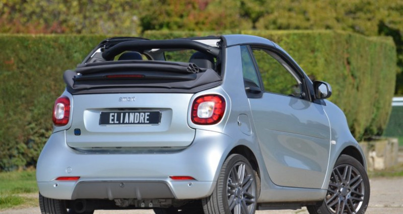 Smart Fortwo EQ Cabriolet Pack Brabus, gris argent métallisé, sellerie cuir anthracite, capote electrique, entretenue exclusivement par Smart Paris 17, blutooth, autonomie +/- 100 km, cette Smart électrique est en parfait état.