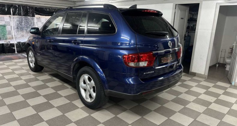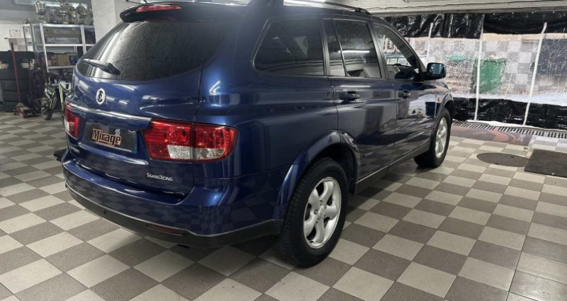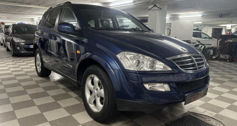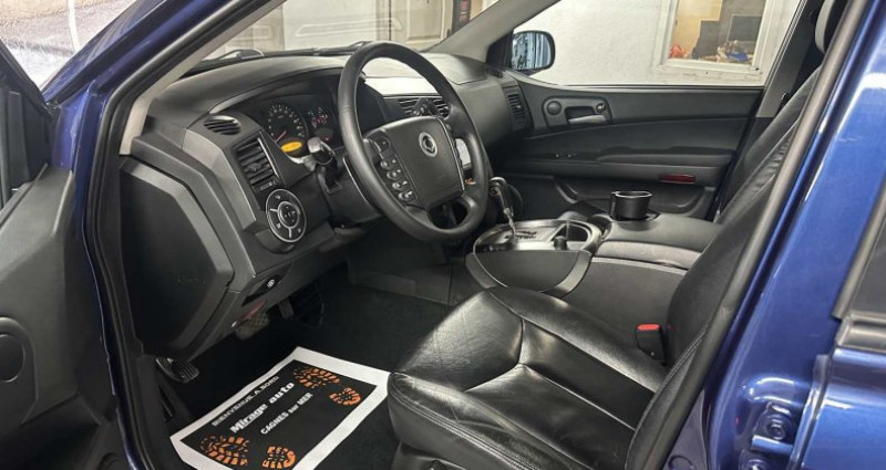 Ce SSANGYONG KYRON 2.0 XDI 4WD de 2009 est proposé par MIRAGE AUTO à CAGNES SUR MER. **Informations générales:** * **Boîte de vitesse:** Automatique * **Énergie:** Diesel * **Kilométrage:** 119 000 km * **Mise en circulation:** 11/06/2009 * **Couleur extérieure:** Bleu métal * **Sellerie:** Cuir noir * **Nombre de portes:** 5 * **Puissance fiscale:** 10 CV * **Puissance réelle du moteur (DIN):** 141 ch **Points forts de l'annonce:** * Véhicule en très bon état général avec quelques petits défauts de carrosserie. * Vendu révisé. * Garantie de 3 mois incluse, avec possibilité d'extension de 6 à 12 mois. **Équipements et Options:** * **Extérieur et Châssis:** 4 roues motrices, Aide au parking avec caméra de recul, Jantes aluminium, Radar de recul, Rétroviseurs électriques et dégivrants. * **Intérieur:** Climatisation, Ordinateur de bord, Prise 12V, Régulateur limiteur de vitesse, Apple CarPlay, Android Auto. * **Confort:** Bluetooth. **Informations supplémentaires:** * Pour tout renseignement, contactez MIRAGE AUTO par téléphone. Pas de SMS. Visite uniquement sur rendez-vous. * Le garage est un centre agréé pour les cartes grises.