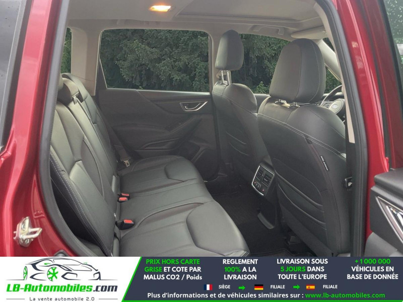 Référence : 1199338 Vos Avantages chez LB-AUTOMOBILES.com / Prix affiché TTC Livré hors carte grise / Livraison sous 10 jours dans toute la France hors 31 / Pas d?avance de frais paiement du véhicule 100% à la livraison par virement. Subaru Forester Neuf remisée, Subaru Forester Occasion Toulouse Beaupuy 31850, Subaru Forester Véhicule sorti de réseau collaborateur, Subaru Forester import, Subaru Forester importateur, Subaru Forester Livraison possible dans toute la France sous 5 jours, Subaru Forester, Subaru Forester Location Option Achat, Subaru Forester LLD, Subaru Forester Longue Durée, Subaru Forester TVA récupérable. Possibilité d'extension de garantie 12, 24,36 mois, Pour tout autres voitures import neufs ou occasions collaborateur fortement remisée, Mandataire Audi, Mandataire BMW, Mandataire Volkswagen, Mandataire Mercedes, Mandataire Peugeot Espagne, Mandataire Renault Espagne, Porsche import, Mandataire Citroën Espagne, Mandataire Seat Espagne, n'hésitez pas à nous contacter. « Sous réserve de vente préalable et erreur de saisie » Principaux équipements : - 4x4 - ABS - Android Auto - Antidémarrage - Apple CarPlay - Assistance au freinage d'urgence - Assistance de démarrage en côte - Assistant d'angle mort - Assistant de man?uvre avec remorque - Assistant feux de route - Avertisseur de franchissement de ligne - Bluetooth - Boîte de vitesses robotisée - Capteur de lumière - Capteur de pluie - Carnet d'entretien - Commande vocale - Contrôle de la pression des pneus - Diesel avec filtre à particules - Direction assistée - Éclairage adaptatif de virage - Écran tactile - ESP - Fermeture centralisée - Feux de jour LED - Galerie de toit - Garantie - GPS - Hayon électrique - Isofix - Jantes alliage - Kit de préparation pour système de navigation - Kit de réparation d'urgence des pneus - Kit mains libres - Lecteur CD - Ordinateur de bord - Package hiver - Phare antibrouillard - Phares LED - Pneus été - Port USB - Radio DAB - Réglage électrique des sièges - Réglage électrique des sièges avec fonction mémoire - Régulateur de vitesse adaptatif - Rétroviseur extérieur électrique - Rétroviseur intérieur anti-éblouissement automatique - Rétroviseurs extérieurs rabattables électriquement - Révision complète - Sièges arrières chauffants électriques - Sièges chauffants - Support lombaire - Système antipatinage - Système d'appel d'urgence - Système de nettoyage des phares - Système de reconnaissance des panneaux de signalisation - Système de sonorisation - Système Stop & Start - Toit ouvrant - Toit panoramique - Véhicule non-fumeur - Verrouillage centralisé sans clé - Vitres électriques - Vitres teintées - Volant chauffant - Volant en cuir - Volant multifonction