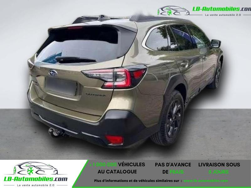 Référence : 999855 Vos Avantages chez LB-AUTOMOBILES.com / Prix affiché TTC Livré hors carte grise / Livraison sous 10 jours dans toute la France hors 31 / Pas d?avance de frais paiement du véhicule 100% à la livraison par virement. Subaru Outback Neuf remisée, Subaru Outback Occasion Toulouse Beaupuy 31850, Subaru Outback Véhicule sorti de réseau collaborateur, Subaru Outback import, Subaru Outback importateur, Subaru Outback Livraison possible dans toute la France sous 5 jours, Subaru Outback, Subaru Outback Location Option Achat, Subaru Outback LLD, Subaru Outback Longue Durée, Subaru Outback TVA récupérable. Possibilité d'extension de garantie 12, 24,36 mois, Pour tout autres voitures import neufs ou occasions collaborateur fortement remisée, Mandataire Audi, Mandataire BMW, Mandataire Volkswagen, Mandataire Mercedes, Mandataire Peugeot Espagne, Mandataire Renault Espagne, Porsche import, Mandataire Citroën Espagne, Mandataire Seat Espagne, n'hésitez pas à nous contacter. « Sous réserve de vente préalable et erreur de saisie » Principaux équipements : - 4x4 - Airbags frontaux et latéraux et autres - Android Auto - Apple CarPlay - Assistance de démarrage en côte - Assistant d'angle mort - Avertisseur de franchissement de ligne - Bluetooth - Capteur de lumière - Capteur de pluie - Carnet d'entretien - Climatisation automatique - Commande vocale - Contrôle de la pression des pneus - Direction assistée - ESP - Fermeture centralisée - Feux de jour - Galerie de toit - Garantie - GPS - Hayon électrique - Isofix - Jantes alliage - Kit mains libres - Ordinateur de bord - Phare antibrouillard - Phares LED - Radio DAB - Réglage électrique des sièges - Régulateur de vitesse adaptatif - Rétroviseur extérieur électrique - Rétroviseur intérieur anti-éblouissement automatique - Sièges arrières chauffants électriques - Sièges chauffants - Système d'appel d'urgence - Système de limitation de la vitesse - Système de nettoyage des phares - Système de reconnaissance des panneaux de signalisation - Système Stop & Start - Tuner/radio - Véhicule non-fumeur - Verrouillage centralisé sans clé - Vitres électriques - Volant chauffant - Volant en cuir - Volant multifonction - Radar de recul : Appareil photo - Première main : Oui