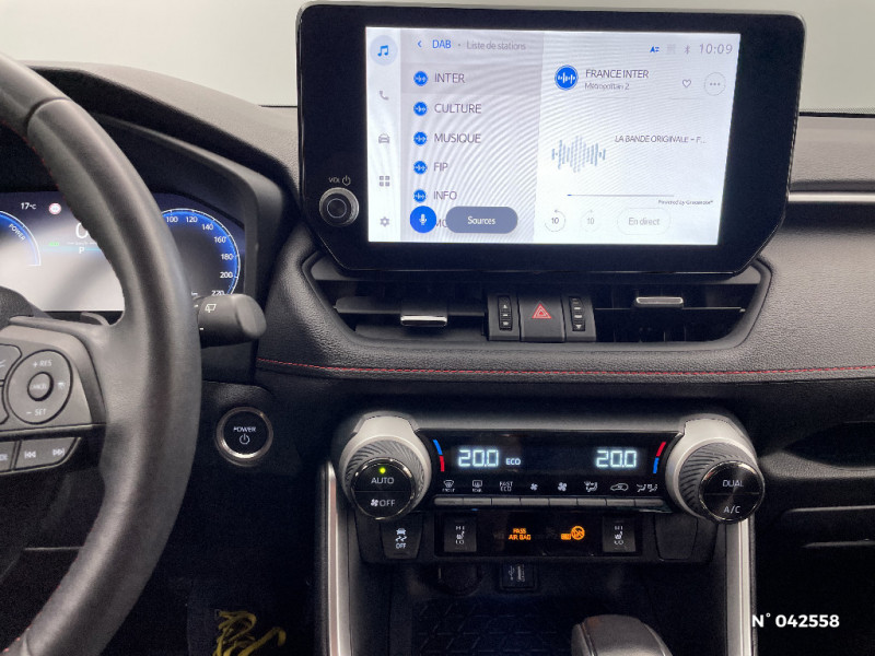 Système audio 10.5" avec écran couleur tactile multifonction, système de téléphonie Bluetooth, connectique auxiliaire/USB, 6 haut-parleurs et radio digitale (DAB) / Rétroviseurs extérieurs électriques, dégivrants, et rabattables automatiquement avec rappels de clignotants / Crochet d'arrimage (x4) / Coques de rétroviseurs couleur carrosserie / Système de contrà²le de stabilité du véhicule et de l'attelage (TSC) / Avertisseur de trafic en marche AR avec freinage d'urgence automatique / Câble de recharge pour prise domestique - 5 mètres - 8 Ampères / Commande de blocage de différentiel AR "Trail" / Commandes de boîte de vitesses avec mode séquentiel et palettes au volant / Fermeture centralisée avec commande à distance et verrouillage automatique des ouvrants en roulant / Frein de stationnement électrique / Gestion automatique des feux de route (AHB) / Roue de secours de type galette dans le coffre / Sélection du mode de conduite : ECO, NORMAL, SPORT / Système d'appel d'urgence automatique "E-Call" / Système d'alerte acoustique du véhicule (Mode EV) / Système de sécurité précollision avec détection des piétons (jour/nuit) et des cyclistes (PCS) / Système de contrôle de motricité (TRC) / Système de stabilité du véhicule (TSC) / Feux AV à extinction différée (Guide me home) / 2 prises 12 V (1 à l'AV et 1 dans le compartiment à bagages) / 7 airbags (frontaux et latéraux pour conducteur et passager AV, rideaux AV et AR et protège-genoux conducteur, avec déconnexion de l'airbag passager) / Système de freinage antiblocage (ABS) + BA + EBD / Air conditionnéà régulation automatique bi-zone avec mode "S-Flow" / Combiné d'instrumentation digital avec écran couleur LCD multifonction 12,3" / Système de connectivité smartphone Apple CarPlay sans fil / Android Auto / Indicateur de perte de pression des pneus (TPMS) / Porte-gobelet AV et AR (accoudoir) x2 / Poignées de maintien conducteur et passager (x4) / Désactivation de l'Airbag passager AV / Eclairage du coffre / Essuie-glace AV à détecteur de pluie / Lecture des panneaux de signalisation et rappel sur écran LCD / Cache-bagages / Essuie-glace AR à 1 vitesse + intermittence / Crochet d'arrimage (x2) / Sécurité enfants sur portes AR / Sellerie en cuir synthétique/tissus sport noir & rouge / Tapis de sol x4 / Levier de vitesses gainé cuir / Ouverture électrique du hayon avec bouton de contrôle / Ouverture motorisée du coffre au pied par détection automatique / 1 prise 220 V dans le compartiment à bagages / 3 ports USB (1 dans la console centrale, 2 à l'AR) / Compartiments de rangement sur console centrale / Lève-vitres électriques AV avec système anti-pincement, descente et remontée à impulsion / Ouverture électrique de la trappe à carburant / Rétroviseurs AV avec éclairage de courtoisie / Siège conducteur à réglages électriques, avec réglage lombaire / Système d'ouverture/fermeture et démarrage sans clé "Smart Entry & Start" / Ventilation aux places AR / Volant chauffant / Alerte de franchissement de ligne avec aide au maintien dans la file, assistant de trajectoire et détecteur de fatigue / Ajustement automatique des projecteurs / Range bouteille AV et AR x2 / Antenne de toit type requin / Barres de toit longitudinales noires / Calandre AV sport noir laqué / Double sorties d'échappement ovales / Jantes en alliage léger polies 19" et pneumatiques 235/55R19 / Optiques AV et AR à LED / Ornements supérieurs de vitres latérales chromés / Ski de protection de bouclier gris argent / Aumônière au dos des sièges AV / Bandeau de planche de bord avec surpiqures rouge / Ciel de pavillon noir / Eclairage d'accueil aux places AV / Pare-soleil AV avec miroirs de courtoisie éclairés x2 / Poignées de porte extérieures ton carrosserie / Mode Trail avec contrôle électronique de la motricité / Filtre à pollen / Essuie-glace AV à 2 vitesses avec intermittence réglable / Eléments de carrosserie peints en noir laqué : bas de caisse latéraux et bas de porte de coffre, bouclier AR et passages de roues