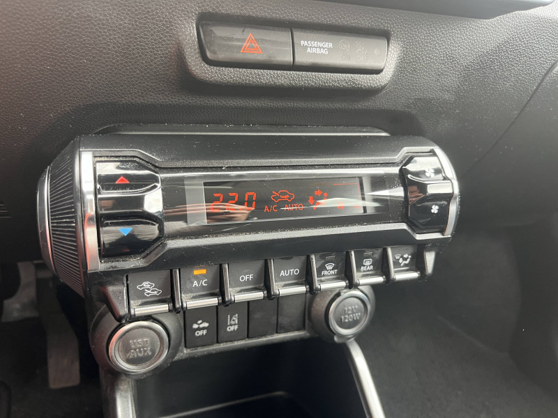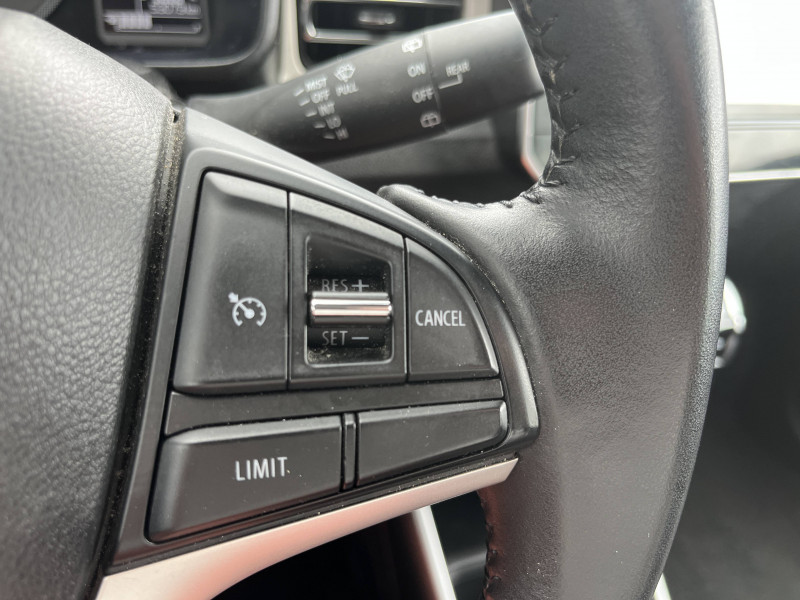 3ème feu stop à LED / Boucliers AV et AR avec sabots de protection gris aluminium / Dispositif de réglage des phares automatique / Dual Camera Brake Support freinage actif d'urgence, alerte de franchissementde ligne, alerte de changement de trajectoire / Eclairage de plaques à LED / Navigation avec cartographie Europe et infotrafic en continu / Système multimédia 7" : connectivité Smartphone, navigation Europe, caméra de recul / Volant 3 branches gainé cuir avec commandes du régulateur et du limiteur de vitesse / ABS + EBD / Affichage du non bouclage des ceintures de sécurité aux places AR / Affichage multifonctions : heure, indicateur de température extérieure, consommation de carburant (instantanée / moyenne), vitesse moyenne, autonomie, indicateur de rapport engagé, indicateur de changement de vitesse, indicateur de la pression des pneumatiques / Alarme sonore d'oubli d'extinction des feux et/ou retrait de la clé de contact / Alarme sonore et visuelle de non-bouclage des ceintures de sécurité aux places AV / Bandeau blanc au centre de la planche de bord / Barres de renfort intégrées aux portes / Cache-bagages / Ceintures de sécurité AR 3 points (x3) / Ceintures de sécurité AV 3 points à enrouleur avec limiteur de force et hauteur ajustable / Cerclage chromé des aérateurs / Compte-tours / Dispositif d'ouverture et démarrage moteur "sans clé" / Eclairage avec fonction Guide me home / Eclairage du compteur / Engine Auto Stop Start system / Enjoliveurs de roues / Entourage de la console centrale orange ou gris titane / Essuie-glace AR à 1 vitesse + intermittence / Essuie-glace AV à 2 vitesses avec intermittence réglable / Filtre à pollen / Habillage habitacle noir et blanc / Kit de réparation de pneumatique / Lecteur de cartes AV (3 positions) / Montants A et B noirs / Ornements des portes AV et AR noir et blanc / Ouverture du hayon manuelle avec poignée / Ouverture à distance de la trappe à carburant / Pare-soleil AV avec porte-ticket côté conducteur / Poignées de maintien dans les portes AV orange ou gris titane / Poignées de maintien passagers AV et AR / Poignées de portes couleur carrosserie / Poignées de portes intérieures chromées / Porte-bouteille AR (x2) / Porte-bouteille AV (x2) / Porte-gobelet AR (x1) / Porte-gobelet AV (x2) / Pédalier sécurisé en cas de collision / Radio tuner CD / compatible MP3 / Rangement dans la console centrale / Repose-pied conducteur / Smart Hybrid Vehicle by Suzuki SHVS / Système de désactivation de l'airbag passager AV / Sécurité enfants sur portes AR / TPMS (Indicateur de pression des pneumatiques) / Tweeters AV / Télécommande / Témoin de faible niveau de carburant / Témoin de porte mal fermée / Témoin vidange huile moteur