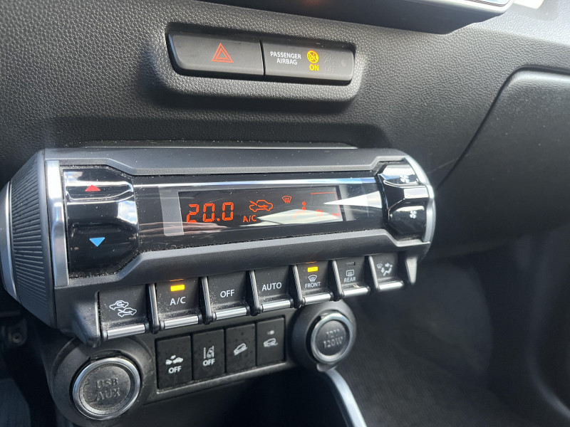 3ème feu stop à LED / Boucliers AV et AR avec sabots de protection gris aluminium / Dispositif de réglage des phares automatique / Dual Camera Brake Support freinage actif d'urgence, alerte de franchissementde ligne, alerte de changement de trajectoire / Eclairage de plaques à LED / Navigation avec cartographie Europe et infotrafic en continu / Système multimédia 7" : connectivité Smartphone, navigation Europe, caméra de recul / Volant 3 branches gainé cuir avec commandes du régulateur et du limiteur de vitesse / ABS + EBD / Affichage du non bouclage des ceintures de sécurité aux places AR / Affichage multifonctions : heure, indicateur de température extérieure, consommation de carburant (instantanée / moyenne), vitesse moyenne, autonomie, indicateur de rapport engagé, indicateur de changement de vitesse, indicateur de la pression des pneumatiques / Alarme sonore d'oubli d'extinction des feux et/ou retrait de la clé de contact / Alarme sonore et visuelle de non-bouclage des ceintures de sécurité aux places AV / Bandeau blanc au centre de la planche de bord / Barres de renfort intégrées aux portes / Cache-bagages / Ceintures de sécurité AR 3 points (x3) / Ceintures de sécurité AV 3 points à enrouleur avec limiteur de force et hauteur ajustable / Cerclage chromé des aérateurs / Compte-tours / Dispositif d'ouverture et démarrage moteur "sans clé" / Eclairage avec fonction Guide me home / Eclairage du compteur / Engine Auto Stop Start system / Enjoliveurs de roues / Entourage de la console centrale orange ou gris titane / Essuie-glace AR à 1 vitesse + intermittence / Essuie-glace AV à 2 vitesses avec intermittence réglable / Filtre à pollen / Habillage habitacle noir et blanc / Kit de réparation de pneumatique / Lecteur de cartes AV (3 positions) / Montants A et B noirs / Ornements des portes AV et AR noir et blanc / Ouverture du hayon manuelle avec poignée / Ouverture à distance de la trappe à carburant / Pare-soleil AV avec porte-ticket côté conducteur / Poignées de maintien dans les portes AV orange ou gris titane / Poignées de maintien passagers AV et AR / Poignées de portes couleur carrosserie / Poignées de portes intérieures chromées / Porte-bouteille AR (x2) / Porte-bouteille AV (x2) / Porte-gobelet AR (x1) / Porte-gobelet AV (x2) / Pédalier sécurisé en cas de collision / Radio tuner CD / compatible MP3 / Rangement dans la console centrale / Repose-pied conducteur / Smart Hybrid Vehicle by Suzuki SHVS / Système de désactivation de l'airbag passager AV / Sécurité enfants sur portes AR / TPMS (Indicateur de pression des pneumatiques) / Tweeters AV / Télécommande / Témoin de faible niveau de carburant / Témoin de porte mal fermée / Témoin vidange huile moteur