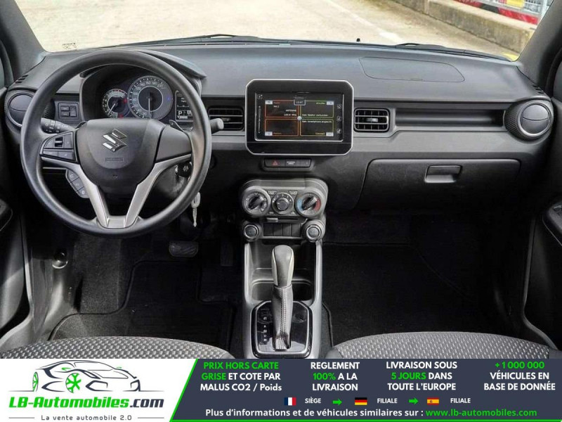 Référence : 1174472 Vos Avantages chez LB-AUTOMOBILES.com / Prix affiché TTC Livré hors carte grise / Livraison sous 10 jours dans toute la France hors 31 / Pas d?avance de frais paiement du véhicule 100% à la livraison par virement. Suzuki Ignis Neuf remisée, Suzuki Ignis Occasion Toulouse Beaupuy 31850, Suzuki Ignis Véhicule sorti de réseau collaborateur, Suzuki Ignis import, Suzuki Ignis importateur, Suzuki Ignis Livraison possible dans toute la France sous 5 jours, Suzuki Ignis, Suzuki Ignis Location Option Achat, Suzuki Ignis LLD, Suzuki Ignis Longue Durée, Suzuki Ignis TVA récupérable. Possibilité d'extension de garantie 12, 24,36 mois, Pour tout autres voitures import neufs ou occasions collaborateur fortement remisée, Mandataire Audi, Mandataire BMW, Mandataire Volkswagen, Mandataire Mercedes, Mandataire Peugeot Espagne, Mandataire Renault Espagne, Porsche import, Mandataire Citroën Espagne, Mandataire Seat Espagne, n'hésitez pas à nous contacter. « Sous réserve de vente préalable et erreur de saisie » Principaux équipements : - Accoudoir - Assistance de démarrage en côte - Bluetooth - Boîte de vitesses robotisée - Capteur de lumière - Carnet d'entretien - Commande vocale - Contrôle de la pression des pneus - Écran tactile - ESP - Fermeture centralisée - Feux de jour - Galerie de toit - Garantie - GPS - Isofix - Jantes alliage - Kit de réparation d'urgence des pneus - Kit mains libres - Ordinateur de bord - Phare antibrouillard - Phares LED - Pneus toutes saisons - Port USB - Radio DAB - Rétroviseur extérieur électrique - Sièges chauffants - Streaming musical intégré - Support lombaire - Système de sonorisation - Système Stop & Start - Traction avant - Véhicule non-fumeur - Vitre chauffante - Vitres électriques - Volant multifonction