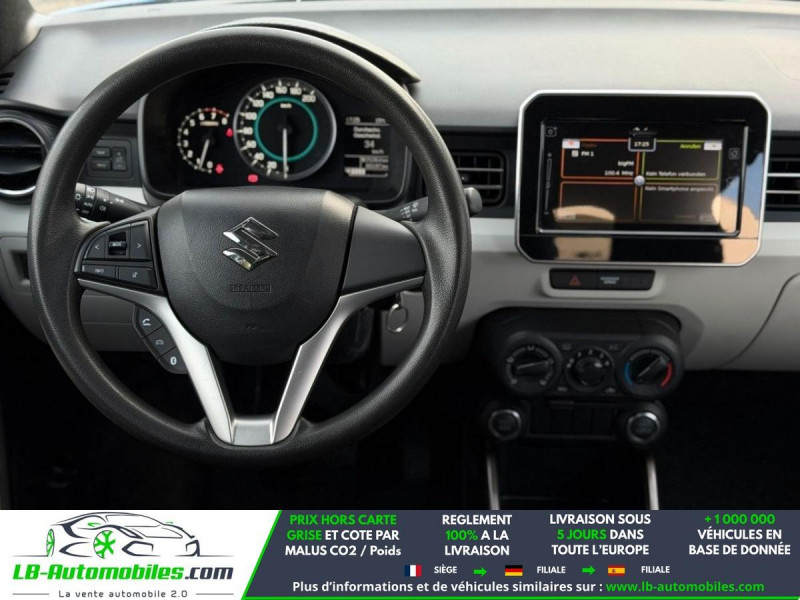 Référence : 1212174 Vos Avantages chez LB-AUTOMOBILES.com / Prix affiché TTC Livré hors carte grise / Livraison sous 10 jours dans toute la France hors 31 / Pas d?avance de frais paiement du véhicule 100% à la livraison par virement. Suzuki Ignis Neuf remisée, Suzuki Ignis Occasion Toulouse Beaupuy 31850, Suzuki Ignis Véhicule sorti de réseau collaborateur, Suzuki Ignis import, Suzuki Ignis importateur, Suzuki Ignis Livraison possible dans toute la France sous 5 jours, Suzuki Ignis, Suzuki Ignis Location Option Achat, Suzuki Ignis LLD, Suzuki Ignis Longue Durée, Suzuki Ignis TVA récupérable. Possibilité d'extension de garantie 12, 24,36 mois, Pour tout autres voitures import neufs ou occasions collaborateur fortement remisée, Mandataire Audi, Mandataire BMW, Mandataire Volkswagen, Mandataire Mercedes, Mandataire Peugeot Espagne, Mandataire Renault Espagne, Porsche import, Mandataire Citroën Espagne, Mandataire Seat Espagne, n'hésitez pas à nous contacter. « Sous réserve de vente préalable et erreur de saisie » Principaux équipements : - ABS - Accoudoir - Android Auto - Assistance de démarrage en côte - Assistant feux de route - Bluetooth - Capteur de lumière - Capteur de pluie - Carnet d'entretien - Cockpit numérique - Commande vocale - Contrôle de la pression des pneus - Direction assistée - Écran tactile - ESP - Fermeture centralisée - Feux de jour LED - Galerie de toit - Garantie - Grille de protection pour coffre - Isofix - Jantes alliage - Kit de réparation d'urgence des pneus - Kit mains libres - Ordinateur de bord - Pack sport - Phare antibrouillard - Pneus toutes saisons - Port USB - Rétroviseur extérieur électrique - Rétroviseur intérieur anti-éblouissement automatique - Siège passager rabattable - Sièges chauffants - Sièges sport - Système antipatinage - Traction avant - Tuner/radio - Véhicule non-fumeur - Vitres électriques - Vitres teintées - Volant en cuir - Volant multifonction