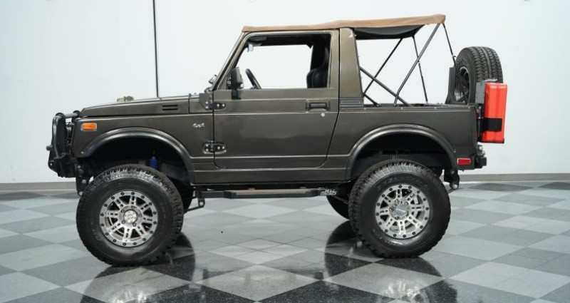 - Marque : Suzuki - Modèle : Jimny - Année : 1982 - Couleur extérieure : Noir graphite - Couleur intérieure : Noir vinyle - Type de carrosserie : SUV - Transmission : Boîte de vitesses à 5 rapports manuelle - Propulsion : 4 roues motrices - Moteur : 1.6L 4 cylindres - Equipement : Lift kit Calmini de 6 pouces, roues ProComp de 15 pouces avec pneus BF Goodrich All-Terrain de 31 pouces, boucliers avant et arrière Rocky Road Outfitters, passerelles latérales RW Customs, lampes de brouillard KC, support à canette de carburant, sièges avant améliorés, toit malleable retirable, moteur à injection électronique - Kilométrage : 30 600 - État : Signes d'usure intérieure, en bon état général. Provenance : Georgia. Disponibilité : environ 7 semaines, clés en main. 25 000 € tout compris (importation, taxes, procédure d'immatriculation). Annonce publiée le 21/12/2025
