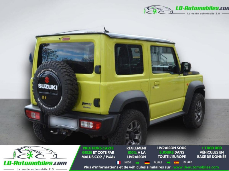Référence : 1206885 Vos Avantages chez LB-AUTOMOBILES.com / Prix affiché TTC Livré hors carte grise / Livraison sous 10 jours dans toute la France hors 31 / Pas d?avance de frais paiement du véhicule 100% à la livraison par virement. Suzuki Jimny Neuf remisée, Suzuki Jimny Occasion Toulouse Beaupuy 31850, Suzuki Jimny Véhicule sorti de réseau collaborateur, Suzuki Jimny import, Suzuki Jimny importateur, Suzuki Jimny Livraison possible dans toute la France sous 5 jours, Suzuki Jimny, Suzuki Jimny Location Option Achat, Suzuki Jimny LLD, Suzuki Jimny Longue Durée, Suzuki Jimny TVA récupérable. Possibilité d'extension de garantie 12, 24,36 mois, Pour tout autres voitures import neufs ou occasions collaborateur fortement remisée, Mandataire Audi, Mandataire BMW, Mandataire Volkswagen, Mandataire Mercedes, Mandataire Peugeot Espagne, Mandataire Renault Espagne, Porsche import, Mandataire Citroën Espagne, Mandataire Seat Espagne, n'hésitez pas à nous contacter. « Sous réserve de vente préalable et erreur de saisie » Principaux équipements : - 4x4 - ABS - Attache remorque détachable - Avertisseur de franchissement de ligne - Bluetooth - Carnet d'entretien - Direction assistée - ESP - Fermeture centralisée - Feux de jour - Garantie - GPS - Isofix - Jantes alliage - Kit mains libres - Lecteur CD - Phare antibrouillard - Phares LED - Régulateur de vitesse - Rétroviseur extérieur électrique - Révision complète - Sièges chauffants - Sièges sport - Système de nettoyage des phares - Système de reconnaissance des panneaux de signalisation - Véhicule non-fumeur - Vitres électriques - Vitres teintées - Volant en cuir - Volant multifonction