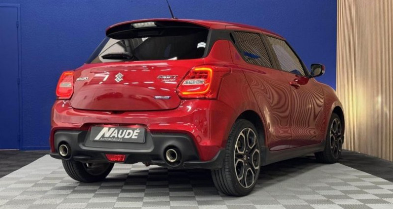 SUZUKI SWIFT SPORT 1.4 Boosterjet 129 CH HYBRID - Garantie Suzuki 06/26 - Véhicule visible uniquement sur rendez-vous, du lundi au vendredi de 9h30 à 18h00 et le samedi de 10h00 à 16h00 - Ce véhicule bénéficie d'une garantie constructeur. Possibilité d'extension jusqu'à 48 mois avec notre partenaire leader de la garantie mécanique OPTEVEN (à partir de 35 euros / mois). Prix hors frais de formalités de 390 euros et carte grise en fonction du département. Reprise possible de votre ancien véhicule. Les plus de ce véhicule: - Première main française origine Richard Drevet - Entretien complet Suzuki - 4 pneus Hankook neuf - Contactez NICOLAS de l'agence NAUDE AUTOMOBILES LOZANNE - LOZANNE pour ce véhicule. - ======= OPTIONS ======= Peinture métallisée Red Pearl Metallic ======= EQUIPEMENTS DE SERIE ======= ABS (Système anti blocage des roues) Aide démarrage en côte Aide freinage d'urgence Allumage automatique des feux Android Auto Apple CarPlay Anti-démarrage Auto-radio commandé au volant Avertisseur franchissement de ligne Banquette arrière rabattable Châssis sport Clé main libre Contrôle pression des pneus Détecteur de pluie Double des clés Eclairage d'ambiance Entretien dans le réseau ESP (Système de correction de la trajectoire) Fermeture centralisée Feux arrières LED Fixation Isofix Front Assist (Système de freinage automatique d'urgence) GPS Historique du véhicule Lane Assist (Maintien dans la voie) Non-fumeur Ordinateur de bord Phares de jour Phares LED Phares Feux antibrouillard avant et arrière Prise(s) AUX USB Régulateur de vitesse adaptatif (ACC) Rétroviseurs électriques Rétroviseurs rabattables Radars arrière de stationnement Reconnaissance vocale Sièges avant chauffants Sièges sport Start & Stop Vitres électriques Vitres arrières et lunette surteintées Volant multifonctions Volant réglable Volant sport Bluetooth Caméra de recul Canules d'échappement chromées Climatisation automatique Direction assistée Limiteur de vitesse Nb. Vitesses : 6 Conso Mixte : l/100