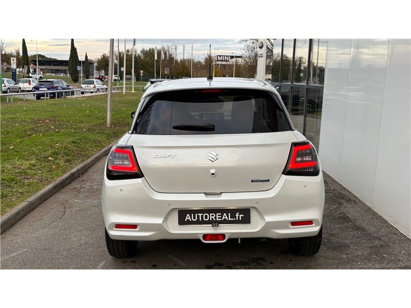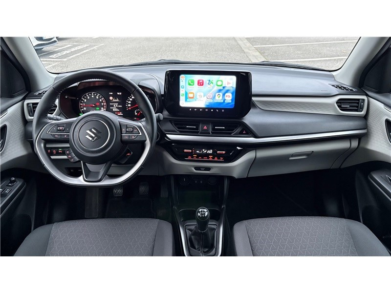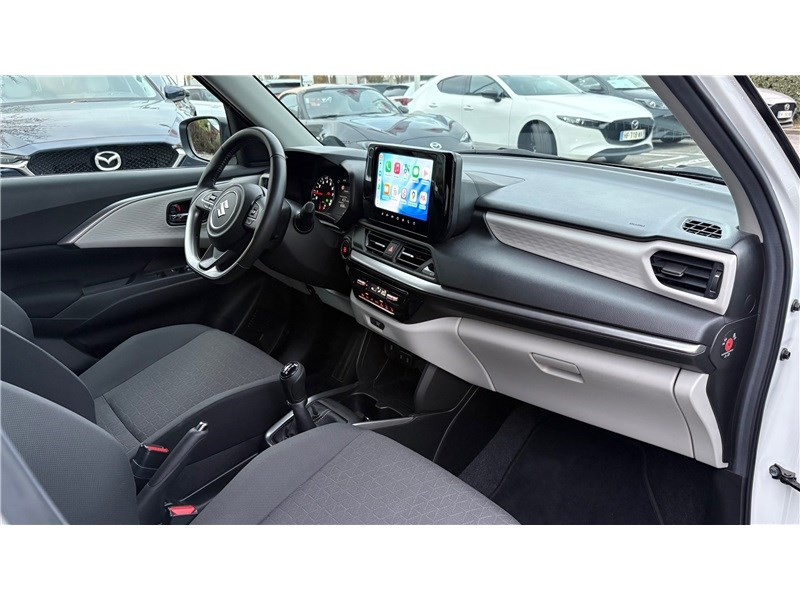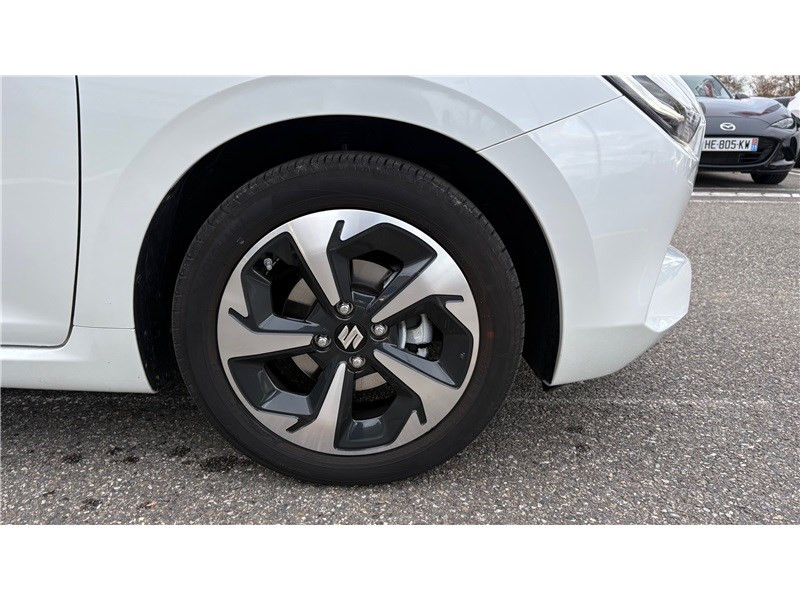 3ème feu stop / ABS avec EBD (répartiteur électronique de freinage) / Adaptation intelligente à la vitesse avec limiteur de vitesse / Aide au maintien dans la voie / Alarme de sécurité (portes et capot) / Alerte de trafic en marche AR / Alerte niveau carburant bas / Alerte porte mal fermée / Ancrages d'attache pour sièges enfants (x2) / Appuis-tête réglables en hauteur et aumônière côté passager / Bac de stockage dans les contre-portes AV / Becquet de toit AR / Boîte manuelle / Boucliers AV/AR et jupes latérales ton carrosserie / Buses d'aération aux places AR / Cache-bagages rigide / Calandre noire laquée en nid d'abeilles / Ceintures de sécurité AR 3 points à enrouleur et limiteurs d'effort X 2, 3 points X 1 (centre) / Ceintures de sécurité AV 3 points à enrouleur et limiteurs d'effort / Contrôle de la traction TCS / Contrôle du régulateur et du limiteur de vitesse sur le volant / Couleur de l?habillage de l?habitacle noir et gris clair / Crochet de sac / Décor de planche de bord gris clair / Détecteurs d'angles morts / Dispositif d'ouverture et démarrage "sans clé" / Eclairage / Eclairage de plaque d'immatriculation à LED / Engine Auto Stop Start system / Enregistreur de données d'événements / Essuie-glace AR à 1 vitesse + intermittence / Essuie-glace AV à 2 vitesses avec intermittence réglable / Feux de jour LED (intégrés dans les projecteurs) / Filtre à pollen / Fonction "Guide me home" / Freinage actif d'urgence (DSBS II) avec détection des piétons, vélos et mot / Gestion automatique des feux de croisement / route / Haut parleur aux places AR / Hybrid SHVS (Smart Hybrid Vehicle by Suzuki) / Instrumentation analogique avec écran central / Jantes 16" en alliage léger polies et pneumatiques 185/55 / Lame de pare-choc AV noire / Lecteur de cartes AV (3 positions) / Montant de portes et de pare-brise de couleur noire / Ordinateur de bord avec écran couleur LCD 4.2'' / Ornement de la planche de bord gris foncé satiné / Ornement des contre-portes gris foncé satiné / Ornement du levier de vitesse gris foncé satiné / Ouverture à distance de la trappe à carburant / Ouverture du hayon Electromagnétique / Pare-soleil côté conducteur avec porte ticket & miroir de courtoisie / Pare-soleil côté passager avec porte ticket & miroir de courtoisie / Pédalier rétractable en cas de choc frontal (frein et embrayage) / Poignées de maintien côté passager AR x2 / Poignées de maintien côté passager AV / Poignées de porte AV et AR ton carrosserie / Poignées de portes intérieures chromées / Portes bouteille (AV X2 et AR X2) / Portes gobelet (AV X2 et AR X1) / Prédisposition pour l'installation d'un éthylotest antidémarrage / Prise accessoire 12 V et Prise USB / Prises avant supplémentaires type-A 2.4 Ah et type-C 3.0 Ah / Projecteurs & feux AR à LED / Réglage de la hauteur des ceintures de sécurité aux places AV / Réglage manuel de la hauteur des projecteurs / Renforts latéraux dans les portes / Repose-pied conducteur / Rétroviseurs extérieurs ton carrosserie / Sécurité enfant aux portes AR / Sellerie tissu noire et grise / Signal sonore d?oubli d?extinction des feux et/ou retrait de la clé de contact / Signal sonore et visuel de non bouclage des ceinture de sécurité AR / Signal sonore et visuel de non bouclage des ceinture de sécurité AV / Système Audio avec HP aux places AV et connexion Bluetooth / Système de désactivation de l'airbag passager AV / Système de détection de somnolence du conducteur / Système multimédia avec écran tactile 9" : caméra de recul, connectivité Smartphone sans fil compatible Android Auto et Apple CarPlay, navigation cartographie Europe, reconnaissance vocale / Tweeters AV / Volant 3 branches avec contrôle audio et téléphonie mains-libre / Volant 3 branches gainé cuir
