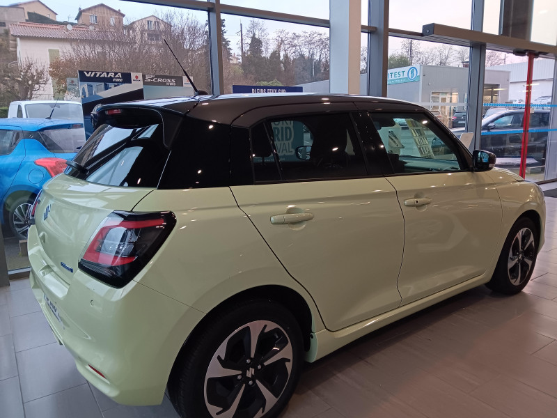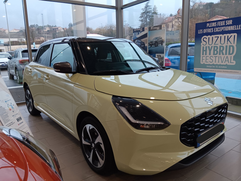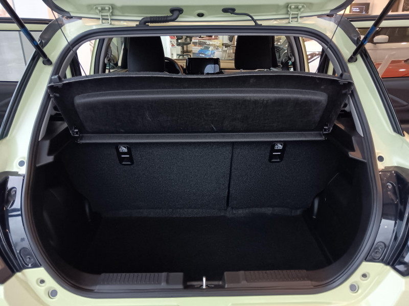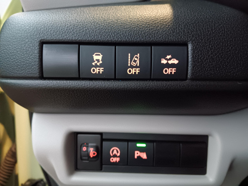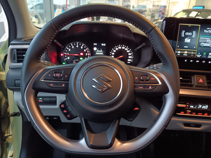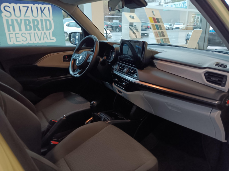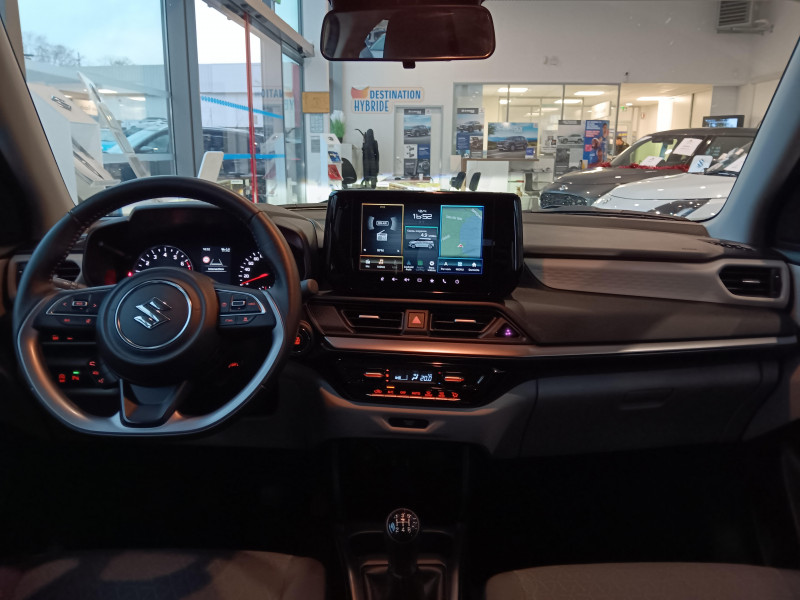 Aide au maintien dans la voie / Eclairage de plaque d'immatriculation à LED / Feux de jour LED (intégrés dans les projecteurs) / Gestion automatique des feux de croisement / route / Jantes 16" en alliage léger polies et pneumatiques 185/55 / Projecteurs & feux AR à LED / Système multimédia avec écran tactile 9" : caméra de recul, connectivité Smartphone sans fil compatible Android Auto et Apple CarPlay, navigation cartographie Europe, reconnaissance vocale / Volant 3 branches gainé cuir / 3ème feu stop / ABS avec EBD (répartiteur électronique de freinage) / Adaptation intelligente à la vitesse avec limiteur de vitesse / Alarme de sécurité (portes et capot) / Alerte de trafic en marche AR / Alerte niveau carburant bas / Alerte porte mal fermée / Ancrages d'attache pour sièges enfants (x2) / Appuis-tête réglables en hauteur et aumônière côté passager / Bac de stockage dans les contre-portes AV / Becquet de toit AR / Boucliers AV/AR et jupes latérales ton carrosserie / Buses d'aération aux places AR / Cache-bagages rigide / Calandre noire laquée en nid d'abeilles / Ceintures de sécurité AR 3 points à enrouleur et limiteurs d'effort X 2, 3 points X 1 (centre) / Ceintures de sécurité AV 3 points à enrouleur et limiteurs d'effort / Contrôle du régulateur et du limiteur de vitesse sur le volant / Couleur de l'habillage de l'habitacle noir et gris clair / Crochet de sac / Dispositif d'ouverture et démarrage "sans clé" / Décor de planche de bord gris clair / Détecteurs d'angles morts / Eclairage / Engine Auto Stop Start system / Enregistreur de données d'événements / Essuie-glace AR à 1 vitesse + intermittence / Essuie-glace AV à 2 vitesses avec intermittence réglable / Filtre à pollen / Fonction "Guide me home" / Freinage actif d'urgence (DSBS II) avec détection des piétons, vélos et mot / Haut parleur aux places AR / Hybrid SHVS (Smart Hybrid Vehicle by Suzuki) / Instrumentation analogique avec écran central / Lame de pare-choc AV noire / Lecteur de cartes AV (3 positions) / Montant de portes et de pare-brise de couleur noire / Ordinateur de bord avec écran couleur LCD 4.2'' / Ornement de la planche de bord gris foncé satiné / Ornement des contre-portes gris foncé satiné / Ornement du levier de vitesse gris foncé satiné / Ouverture du hayon Electromagnétique / Ouverture à distance de la trappe à carburant / Pare-soleil côté conducteur avec porte ticket & miroir de courtoisie / Pare-soleil côté passager avec porte ticket & miroir de courtoisie / Poignées de maintien côté passager AR x2 / Poignées de maintien côté passager AV / Poignées de porte AV et AR ton carrosserie / Poignées de portes intérieures chromées / Portes bouteille (AV X2 et AR X2) / Portes gobelet (AV X2 et AR X1) / Prise accessoire 12 V et Prise USB / Prises avant supplémentaires type-A 2.4 Ah et type-C 3.0 Ah / Prédisposition pour l'installation d'un éthylotest antidémarrage / Pédalier rétractable en cas de choc frontal (frein et embrayage) / Renforts latéraux dans les portes / Repose-pied conducteur / Réglage de la hauteur des ceintures de sécurité aux places AV / Réglage manuel de la hauteur des projecteurs / Rétroviseurs extérieurs ton carrosserie / Signal sonore d'oubli d'extinction des feux et/ou retrait de la clé de contact / Signal sonore et visuel de non bouclage des ceinture de sécurité AR / Signal sonore et visuel de non bouclage des ceinture de sécurité AV / Système Audio avec HP aux places AV et connexion Bluetooth / Système de désactivation de l'airbag passager AV / Système de détection de somnolence du conducteur / Sécurité enfant aux portes AR / Tweeters AV / Volant 3 branches avec contrôle audio et téléphonie mains-libre