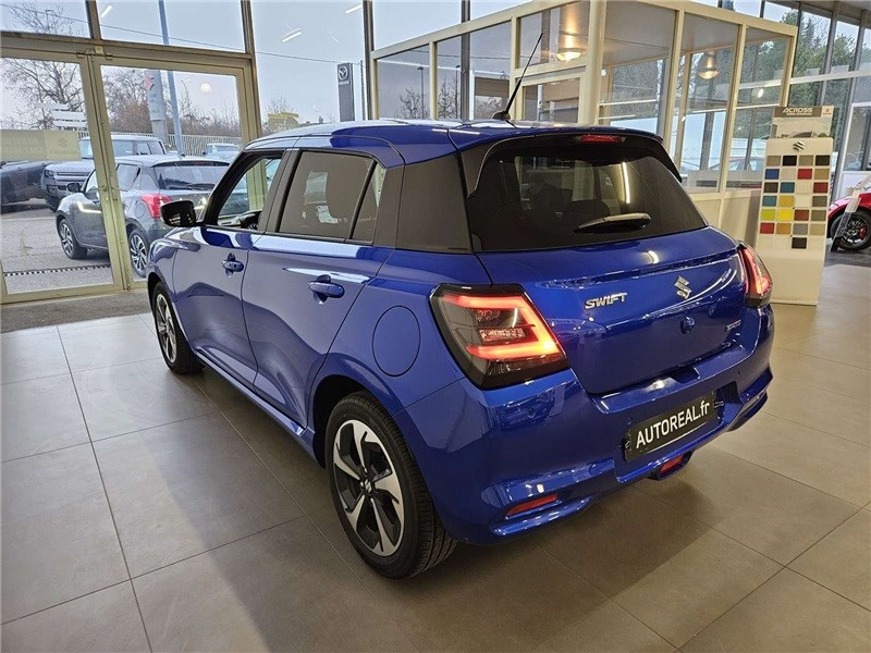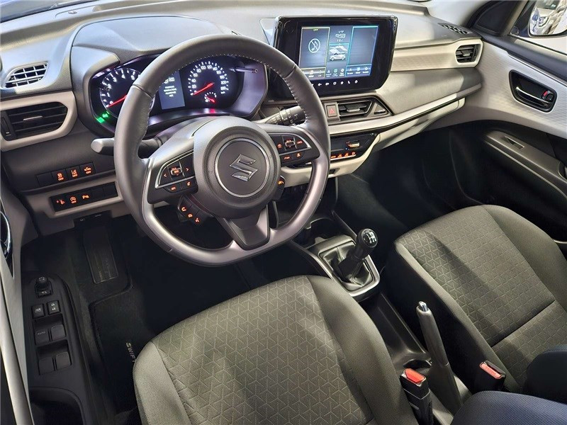 3ème feu stop / ABS avec EBD (répartiteur électronique de freinage) / Adaptation intelligente à la vitesse avec limiteur de vitesse / Aide au maintien dans la voie / Alarme de sécurité (portes et capot) / Alerte de trafic en marche AR / Alerte niveau carburant bas / Alerte porte mal fermée / Ancrages d'attache pour sièges enfants (x2) / Appuis-tête réglables en hauteur et aumônière côté passager / Bac de stockage dans les contre-portes AV / Becquet de toit AR / Boîte manuelle / Boucliers AV/AR et jupes latérales ton carrosserie / Buses d'aération aux places AR / Cache-bagages rigide / Calandre noire laquée en nid d'abeilles / Ceintures de sécurité AR 3 points à enrouleur et limiteurs d'effort X 2, 3 points X 1 (centre) / Ceintures de sécurité AV 3 points à enrouleur et limiteurs d'effort / Contrôle de la traction TCS / Contrôle du régulateur et du limiteur de vitesse sur le volant / Couleur de l?habillage de l?habitacle noir et gris clair / Crochet de sac / Décor de planche de bord gris clair / Détecteurs d'angles morts / Dispositif d'ouverture et de démarrage sans clé / Eclairage / Eclairage de plaque d'immatriculation à LED / Engine Auto Stop Start system / Enregistreur de données d'événements / Essuie-glace AR à 1 vitesse + intermittence / Essuie-glace AV à 2 vitesses avec intermittence réglable / Feux de jour LED (intégrés dans les projecteurs) / Filtre à pollen / Fonction "Guide me home" / Freinage actif d'urgence (DSBS II) avec détection des piétons, vélos et mot / Gestion automatique des feux de croisement / feux de route / Haut parleur aux places AR / Hybrid SHVS (Smart Hybrid Vehicle by Suzuki) / Instrumentation analogique avec écran central / Jantes 16" en alliage léger polies et pneumatiques 185/55 / Lame de pare-choc AV noire / Lecteur de cartes AV (3 positions) / Montant de portes et de pare-brise de couleur noire / Ordinateur de bord avec écran couleur LCD 4.2'' / Ornement de la planche de bord gris foncé satiné / Ornement des contre-portes gris foncé satiné / Ornement du levier de vitesse gris foncé satiné / Ouverture à distance de la trappe à carburant / Ouverture du hayon Electromagnétique / Pare-soleil côté conducteur avec porte ticket & miroir de courtoisie / Pare-soleil côté passager avec porte ticket & miroir de courtoisie / Pédalier rétractable en cas de choc frontal (frein et embrayage) / Poignées de maintien côté passager AR x2 / Poignées de maintien côté passager AV / Poignées de porte AV et AR ton carrosserie / Poignées de portes intérieures chromées / Portes bouteille (AV X2 et AR X2) / Portes gobelet (AV X2 et AR X1) / Prédisposition pour l'installation d'un éthylotest antidémarrage / Prise accessoire 12 V et Prise USB / Prises avant supplémentaires type-A 2.4 Ah et type-C 3.0 Ah / Projecteurs & feux AR à LED / Réglage de la hauteur des ceintures de sécurité aux places AV / Réglage manuel de la hauteur des projecteurs / Renforts latéraux dans les portes / Repose-pied conducteur / Rétroviseurs extérieurs ton carrosserie / Sécurité enfant aux portes AR / Sellerie tissu noire et grise / Signal sonore d?oubli d?extinction des feux et/ou retrait de la clé de contact / Signal sonore et visuel de non bouclage des ceinture de sécurité AR / Signal sonore et visuel de non bouclage des ceinture de sécurité AV / Système Audio avec HP aux places AV et connexion Bluetooth / Système de désactivation de l'airbag passager AV / Système de détection de somnolence du conducteur / Système multimédia avec écran tactile 9" : caméra de recul, connectivité Smartphone sans fil / Tweeters AV / Volant 3 branches avec contrôle audio et téléphonie mains-libre / Volant 3 branches gainé cuir