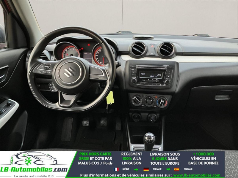 Référence : 1149105 Vos Avantages chez LB-AUTOMOBILES.com / Prix affiché TTC Livré hors carte grise / Livraison sous 10 jours dans toute la France hors 31 / Pas d?avance de frais paiement du véhicule 100% à la livraison par virement. Suzuki Swift Neuf remisée, Suzuki Swift Occasion Toulouse Beaupuy 31850, Suzuki Swift Véhicule sorti de réseau collaborateur, Suzuki Swift import, Suzuki Swift importateur, Suzuki Swift Livraison possible dans toute la France sous 5 jours, Suzuki Swift, Suzuki Swift Location Option Achat, Suzuki Swift LLD, Suzuki Swift Longue Durée, Suzuki Swift TVA récupérable. Possibilité d'extension de garantie 12, 24,36 mois, Pour tout autres voitures import neufs ou occasions collaborateur fortement remisée, Mandataire Audi, Mandataire BMW, Mandataire Volkswagen, Mandataire Mercedes, Mandataire Peugeot Espagne, Mandataire Renault Espagne, Porsche import, Mandataire Citroën Espagne, Mandataire Seat Espagne, n'hésitez pas à nous contacter. « Sous réserve de vente préalable et erreur de saisie » Principaux équipements : - ABS - Accoudoir - Antidémarrage - Bluetooth - Capteur de lumière - Carnet d'entretien - Contrôle de la pression des pneus - Direction assistée - ESP - Fermeture centralisée - Feux de jour LED - Garantie - Isofix - Jantes en acier - Kit de réparation d'urgence des pneus - Kit mains libres - Lecteur CD - Ordinateur de bord - Pneus été - Pneus hiver - Port USB - Streaming musical intégré - Système antipatinage - Traction avant - Tuner/radio - Véhicule non-fumeur - Vitres électriques - Volant multifonction