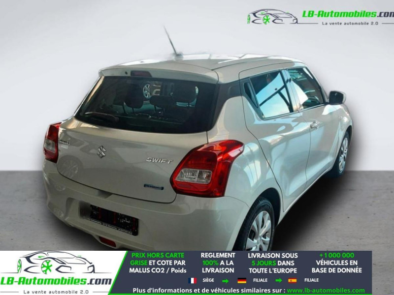 Référence : 1149112 Vos Avantages chez LB-AUTOMOBILES.com / Prix affiché TTC Livré hors carte grise / Livraison sous 10 jours dans toute la France hors 31 / Pas d?avance de frais paiement du véhicule 100% à la livraison par virement. Suzuki Swift Neuf remisée, Suzuki Swift Occasion Toulouse Beaupuy 31850, Suzuki Swift Véhicule sorti de réseau collaborateur, Suzuki Swift import, Suzuki Swift importateur, Suzuki Swift Livraison possible dans toute la France sous 5 jours, Suzuki Swift, Suzuki Swift Location Option Achat, Suzuki Swift LLD, Suzuki Swift Longue Durée, Suzuki Swift TVA récupérable. Possibilité d'extension de garantie 12, 24,36 mois, Pour tout autres voitures import neufs ou occasions collaborateur fortement remisée, Mandataire Audi, Mandataire BMW, Mandataire Volkswagen, Mandataire Mercedes, Mandataire Peugeot Espagne, Mandataire Renault Espagne, Porsche import, Mandataire Citroën Espagne, Mandataire Seat Espagne, n'hésitez pas à nous contacter. « Sous réserve de vente préalable et erreur de saisie » Principaux équipements : - ABS - Antidémarrage - Bluetooth - Capteur de lumière - Commande vocale - Contrôle de la pression des pneus - Direction assistée - Écran tactile - ESP - Fermeture centralisée - Feux de jour LED - Garantie - Isofix - Jantes en acier - Kit de réparation d'urgence des pneus - Kit mains libres - Lecteur CD - Ordinateur de bord - Pneus toutes saisons - Port USB - Rétroviseur extérieur électrique - Système antipatinage - Système Stop & Start - Traction avant - Tuner/radio - Véhicule non-fumeur - Vitres électriques - Volant en cuir - Volant multifonction