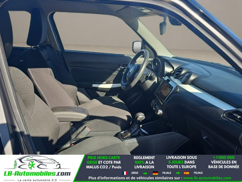 Référence : 1175714 Vos Avantages chez LB-AUTOMOBILES.com / Prix affiché TTC Livré hors carte grise / Livraison sous 10 jours dans toute la France hors 31 / Pas d?avance de frais paiement du véhicule 100% à la livraison par virement. Suzuki Swift Neuf remisée, Suzuki Swift Occasion Toulouse Beaupuy 31850, Suzuki Swift Véhicule sorti de réseau collaborateur, Suzuki Swift import, Suzuki Swift importateur, Suzuki Swift Livraison possible dans toute la France sous 5 jours, Suzuki Swift, Suzuki Swift Location Option Achat, Suzuki Swift LLD, Suzuki Swift Longue Durée, Suzuki Swift TVA récupérable. Possibilité d'extension de garantie 12, 24,36 mois, Pour tout autres voitures import neufs ou occasions collaborateur fortement remisée, Mandataire Audi, Mandataire BMW, Mandataire Volkswagen, Mandataire Mercedes, Mandataire Peugeot Espagne, Mandataire Renault Espagne, Porsche import, Mandataire Citroën Espagne, Mandataire Seat Espagne, n'hésitez pas à nous contacter. « Sous réserve de vente préalable et erreur de saisie » Principaux équipements : - ABS - Antidémarrage - Assistance au freinage d'urgence - Assistant d'angle mort - Assistant de sortie de stationnement - Assistant feux de route - Attache remorque fixe - Avertisseur de franchissement de ligne - Bluetooth - Capteur de lumière - Carnet d'entretien - Contrôle de la pression des pneus - Diesel avec filtre à particules - Direction assistée - Écran tactile - ESP - Fermeture centralisée - Feux de jour LED - Garantie - GPS - Isofix - Jantes alliage - Kit de réparation d'urgence des pneus - Kit mains libres - Lecteur CD - Ordinateur de bord - Phare antibrouillard - Phares LED - Port USB - Radio DAB - Régulateur de vitesse adaptatif - Rétroviseur extérieur électrique - Sièges chauffants - Système antipatinage - Système de reconnaissance des panneaux de signalisation - Traction avant - Tuner/radio - Véhicule non-fumeur - Verrouillage centralisé sans clé - Vitres électriques - Volant en cuir - Volant multifonction