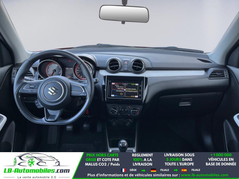 Référence : 1200418 Vos Avantages chez LB-AUTOMOBILES.com / Prix affiché TTC Livré hors carte grise / Livraison sous 10 jours dans toute la France hors 31 / Pas d?avance de frais paiement du véhicule 100% à la livraison par virement. Suzuki Swift Neuf remisée, Suzuki Swift Occasion Toulouse Beaupuy 31850, Suzuki Swift Véhicule sorti de réseau collaborateur, Suzuki Swift import, Suzuki Swift importateur, Suzuki Swift Livraison possible dans toute la France sous 5 jours, Suzuki Swift, Suzuki Swift Location Option Achat, Suzuki Swift LLD, Suzuki Swift Longue Durée, Suzuki Swift TVA récupérable. Possibilité d'extension de garantie 12, 24,36 mois, Pour tout autres voitures import neufs ou occasions collaborateur fortement remisée, Mandataire Audi, Mandataire BMW, Mandataire Volkswagen, Mandataire Mercedes, Mandataire Peugeot Espagne, Mandataire Renault Espagne, Porsche import, Mandataire Citroën Espagne, Mandataire Seat Espagne, n'hésitez pas à nous contacter. « Sous réserve de vente préalable et erreur de saisie » Principaux équipements : - ABS - Antidémarrage - Bluetooth - Capteur de lumière - Carnet d'entretien - Commande vocale - Contrôle de la pression des pneus - Direction assistée - Écran tactile - ESP - Fermeture centralisée - Feux de jour LED - GPS - Isofix - Jantes alliage - Kit mains libres - Ordinateur de bord - Phare antibrouillard - Pneus été - Port USB - Radio DAB - Rétroviseur extérieur électrique - Sièges chauffants - Système antipatinage - Système d'appel d'urgence - Tuner/radio - Véhicule non-fumeur - Vitres électriques - Volant en cuir - Volant multifonction