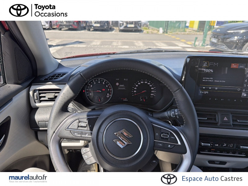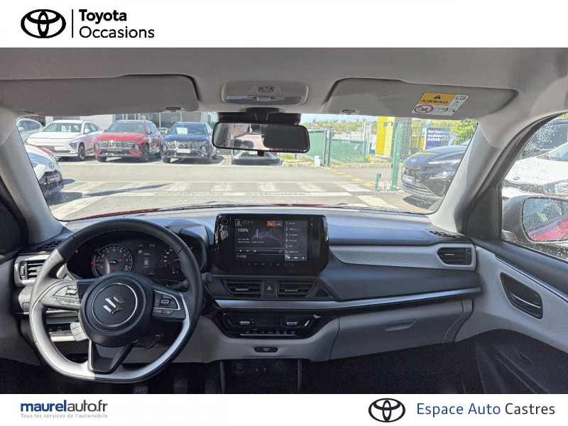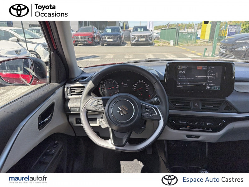 Aide au maintien dans la voie / Eclairage de plaque d'immatriculation à LED / Feux de jour LED (intégrés dans les projecteurs) / Gestion automatique des feux de croisement / feux de route / Jantes 16" en alliage léger polies et pneumatiques 185/55 / Projecteurs & feux AR à LED / Système multimédia avec écran tactile 9" : caméra de recul, connectivité Smartphone sans fil compatible Android Auto et Apple CarPlay, navigation cartographie Europe, reconnaissance vocale / Volant 3 branches gainé cuir / 3ème feu stop / ABS avec EBD (répartiteur électronique de freinage) / Adaptation intelligente à la vitesse avec limiteur de vitesse / Alarme de sécurité (portes et capot) / Alerte de trafic en marche AR / Alerte niveau carburant bas / Alerte porte mal fermée / Ancrages d'attache pour sièges enfants (x2) / Appuis-tête réglables en hauteur et aumônière côté passager / Bac de stockage dans les contre-portes AV / Becquet de toit AR / Boucliers AV/AR et jupes latérales ton carrosserie / Buses d'aération aux places AR / Cache-bagages rigide / Calandre noire laquée en nid d'abeilles / Ceintures de sécurité AR 3 points à enrouleur et limiteurs d'effort X 2, 3 points X 1 (centre) / Ceintures de sécurité AV 3 points à enrouleur et limiteurs d'effort / Contrôle du régulateur et du limiteur de vitesse sur le volant / Couleur de l'habillage de l'habitacle noir et gris clair / Crochet de sac / Dispositif d'ouverture et de démarrage sans clé / Décor de planche de bord gris clair / Détecteurs d'angles morts / Eclairage / Engine Auto Stop Start system / Enregistreur de données d'événements / Essuie-glace AR à 1 vitesse + intermittence / Essuie-glace AV à 2 vitesses avec intermittence réglable / Filtre à pollen / Fonction "Guide me home" / Freinage actif d'urgence (DSBS II) avec détection des piétons, vélos et mot / Haut parleur aux places AR / Hybrid SHVS (Smart Hybrid Vehicle by Suzuki) / Instrumentation analogique avec écran central / Lame de pare-choc AV noire / Lecteur de cartes AV (3 positions) / Montant de portes et de pare-brise de couleur noire / Ordinateur de bord avec écran couleur LCD 4.2'' / Ornement de la planche de bord gris foncé satiné / Ornement des contre-portes gris foncé satiné / Ornement du levier de vitesse gris foncé satiné / Ouverture du hayon Electromagnétique / Ouverture à distance de la trappe à carburant / Pare-soleil côté conducteur avec porte ticket & miroir de courtoisie / Pare-soleil côté passager avec porte ticket & miroir de courtoisie / Poignées de maintien côté passager AR x2 / Poignées de maintien côté passager AV / Poignées de porte AV et AR ton carrosserie / Poignées de portes intérieures chromées / Portes bouteille (AV X2 et AR X2) / Portes gobelet (AV X2 et AR X1) / Prise accessoire 12 V et Prise USB / Prises avant supplémentaires type-A 2.4 Ah et type-C 3.0 Ah / Prédisposition pour l'installation d'un éthylotest antidémarrage / Pédalier rétractable en cas de choc frontal (frein et embrayage) / Renforts latéraux dans les portes / Repose-pied conducteur / Réglage de la hauteur des ceintures de sécurité aux places AV / Réglage manuel de la hauteur des projecteurs / Rétroviseurs extérieurs ton carrosserie / Signal sonore d'oubli d'extinction des feux et/ou retrait de la clé de contact / Signal sonore et visuel de non bouclage des ceinture de sécurité AR / Signal sonore et visuel de non bouclage des ceinture de sécurité AV / Système Audio avec HP aux places AV et connexion Bluetooth / Système de désactivation de l'airbag passager AV / Système de détection de somnolence du conducteur / Sécurité enfant aux portes AR / Tweeters AV / Volant 3 branches avec contrôle audio et téléphonie mains-libre