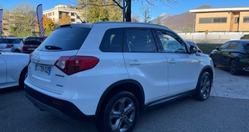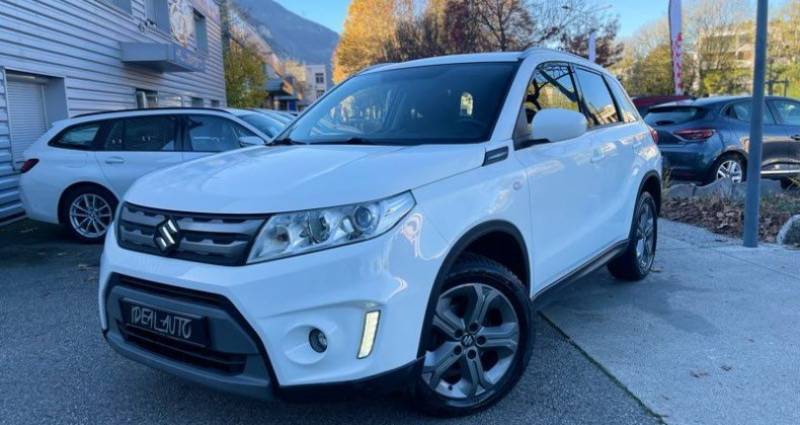 Suzuki Vitara 1.6 VVT 120 4X4 Privilège Allgrip, (S.U.V.), Blanc, 6cv, 5 portes, mise en circulation le 09-01-2017, première main, garantie 6 mois. 5 places, longueur : 4,17 mètres, poids en charge 1730 Kg, boîte de vitesse : manuelle OPTIONS ET EQUIPEMENTS : Audio - Télécommunications - 4 Haut parleurs - Commandes du système audio au volant - Ecran LCD - Ecran tactile - Fonction MP3 - Interface Media - Kit mains-libres Bluetooth - Prise USB - Radio - Radio numérique DAB Conduite - Aide au démarrage en côte - Arrêt et redémarrage auto. du moteur - Commande du comportement dynamique - Limiteur de vitesse - Régulateur de vitesse adaptatif Extérieur - Calandre chromée - Caméra de recul - Essuie-glace arrière - Feux arrière à LED - Feux de jour à LED - Jantes Alu - Phares halogènes - Poignées ton carrosserie - Radar de stationnement AR - Rétroviseurs dégivrants - Rétroviseurs électriques Intérieur - Accoudoir central AV avec rangement - Banquette 60/40 - Banquette AR rabattable - Boite à gants fermée - Clim automatique - Compte tours - Ecran multifonction couleur - Filtre à Pollen - Fixations Isofix aux places arrières - Lampe de coffre - Lampes de lecture à l'avant - Lunette AR dégivrante - Lunette arrière surteintée - Miroir de courtoisie conducteur éclairé - Ordinateur de bord - Poches d'aumonières - Porte-gobelets arrière - Porte-gobelets avant - Prise 12V - Siège conducteur réglable en hauteur - Tablette cache bagages - Température extérieure - Verrouillage centralisé des portes - Verrouillage centralisé à distance - Vitres arrière électriques - Vitres avant électriques - Vitres teintées - Volant cuir - Volant réglable en profondeur et hauteur Sécurité - ABS - AFIL - Aide au freinage d'urgence - Airbag conducteur - Airbag genoux - Airbag passager déconnectable - Airbags latéraux avant - Airbags rideaux AV et AR - Alarme d'oubli d'extinction des feux - Alarme périmétrique - Antidémarrage électronique - Assistance de maintien de trajectoire - Ceintures avant ajustables en hauteur - Contrôle élect. de la pression des pneus - EBD - ESP - Freinage automatique d'urgence - Phares antibrouillards - Témoin de bouclage des ceintures AV Autres équipements et informations : - 4 Roues motrices - Première main Reprise possible IDEAL AUTO 9 Boulevard Paul Langevin 38600 Fontaine