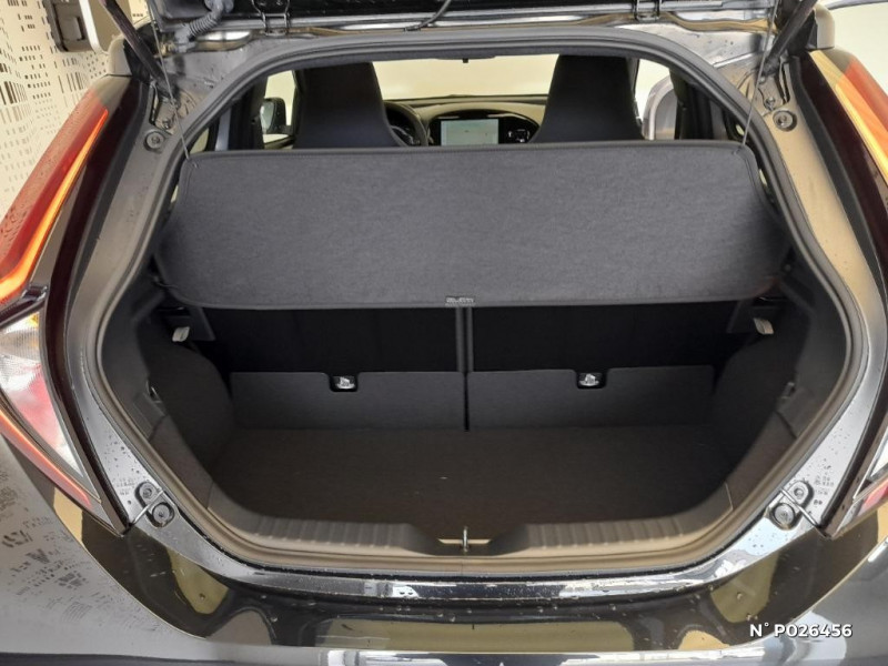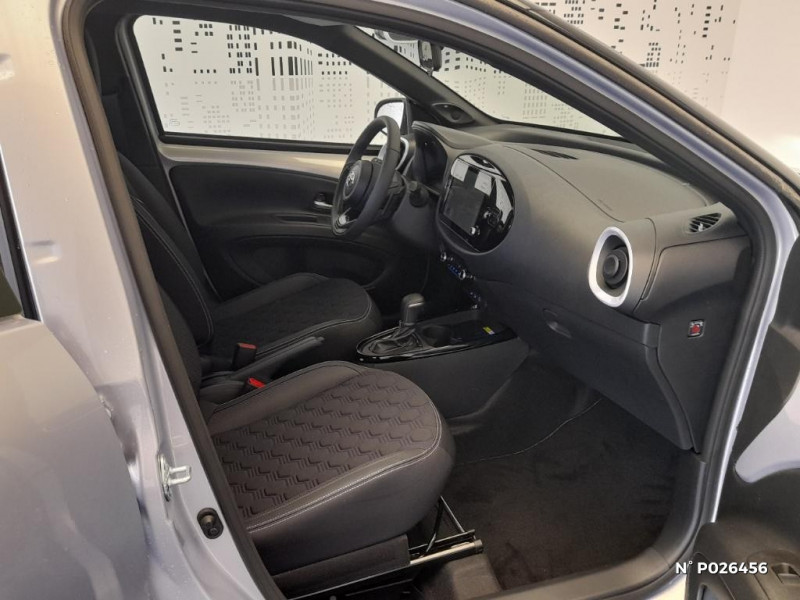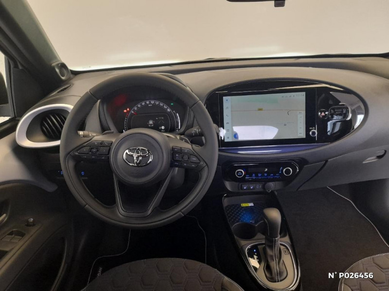 Jantes en alliage 18" noir laqué avec inserts Violet Jasmin / Kit anti-crevaison / Kit de sécurité / Levier de vitesse en cuir avec surpiqûres couleur carrosserie / Levier de vitesse en cuir avec surpiqûres Violet Jasmin / Ornements latéraux noirs (partie supérieure du bas de caisse) / Sellerie mi-cuir avec renforts latéraux en cuir véritable et assise et dossier en tissu avec surpiqûres Violet Jasmin et estampage JBL sous l'appui-tête / Passages de roues et bas de caisse latéraux noirs / Poignées de portes extérieurs couleur carroserie / Porte-gobelets (2) / Rétroviseurs extérieurs électriques, dégivrants et rabattables manuellement / 1 prise 12V AV sur console centrale / 4 HP / Services connectés de contrôle à distance MyToyota (inclus 4 ans) / Services connectés standards MyToyota (inclus 10 ans) / Sticker exclusif JBL sur vitres portes AR / Système audio JBL 4 HP et 1 caisson de basse / Système audio Premium JBL à 4 HP et 1 caisson de basse / Système d'appel d'urgence automatique "E-Call" / Système de contrôle de stabilité (VSC) + Système de contrôle de motricité (TRC) / Système de freinage antiblocage ABS / Système d'ouverture/fermeture et démarrage sans clé "Smart Entry & Start" / Système multimédia Toyota Smart Connect avec écran tactile 10,5" haute définition, Bluetooth, USB, Radio FM et DAB (digitale), système de connectivité smartphone Apple CarPlay et Android Auto (sans fil), Services intelligents avec Navigation connectée avec infotrafic en temps réel, mises à jour cartographiques, assistant vocal "Hey Toyota" et recherche de points d'intérêts (inclus 4 ans) / Tapis de sol AV/AR avec surpiqûres Violet Jasmin / Toyota Safety Sense Système de sécurité précollision avec détection des véhicules, des piétons et des cyclistes, actif également dans les intersections, Alerte de franchissement de ligne avec aide au maintien dans la voie et assistant de trajectoire, Régulateur de vitesse adaptatif intelligent, Lecture des panneaux de signalisation, Gestion automatique des feux de route / Toyota Safety Sense Système de sécurité précollision avec détection des véhicules, piétons et cyclistes, actif également dans les intersections. Alerte de franchissement de ligne avec aide au maintien dans la file, assistant de trajectoire et détecteur de fatigue, Lecture des panneaux de signalisation avec limiteur de vitesse, Gestion automatique des feux de route, Régulateur de vitesse adaptatif intelligent / Transmission automatique S-CVT avec commande de boîte de vitesses séquentielle / Volant cuir avec commandes au volant / 1 Port USB de type C sur console centrale / Badge chrome AR exclusif JBL et sticker exclusif JBL sur vitres portes AR / Branche centrale du volant Violet Jasmin / Calandre noir laqué / Carrosserie bi-ton Gris Jasmin avec toit et piliers peints en noir / Ciel de toit noir / Combiné d'instrumentation avec écran couleur TFT multifonction 4,2" / Compte-tours / Connectivité smartphone Apple CarPlay et Android Auto sans fil / Contour d'aérateurs couleur carrosserie / Contour de console centrale noir laqué / Contour de l'écran tactile noir laqué / Contour de levier de vitesses Violet Jasmin / Coques de rétroviseurs noires / Eclairage de coffre / Entourage d'antibrouillards noir laqué / Essuie-glace AV à détecteur de pluie / Fermeture centralisée avec commande à distance / Feux AV à extinction différée (Follow me home) / Indicateur de perte de pression des pneus / Insert de pare-chocs AR couleur carrosserie / Insert inférieur de l'écran tactile 10,5" couleur carrosserie avec traitement anodisé Violet Jasmin / Inserts sur contours et bas de caisse AV/AR (selon couleur carrosserie) : Violet Jasmin