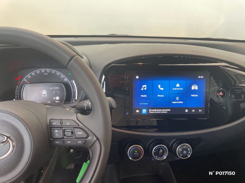 Levier de vitesse en cuir avec surpiqûres / Passages de roues et bas de caisse latéraux noirs / Poignées de portes extérieurs couleur carroserie / Pommeau de levier de vitesse avec contour chromé / Porte-gobelets (2) / 1 prise 12V AV sur console centrale / 4 HP / Rétroviseurs extérieurs électriques, dégivrants et rabattables manuellement / Services connectés standards MyToyota (inclus 10 ans) / Système d'appel d'urgence automatique "E-Call" / Système de contrôle de stabilité (VSC) + Système de contrôle de motricité (TRC) / Système de freinage antiblocage ABS / Système multimédia Toyota Touch 3 avec écran couleur tactile 9" haute définition, Bluetooth, USB, Radio FM et DAB (digitale), Système de connectivité smartphone Apple CarPlay et Android Auto (sans fil) / Tapis de sol AV/AR / Toyota Safety Sense Système de sécurité précollision avec détection des véhicules, des piétons et des cyclistes, actif également dans les intersections, Alerte de franchissement de ligne avec aide au maintien dans la voie et assistant de trajectoire, Régulateur de vitesse adaptatif intelligent, Lecture des panneaux de signalisation, Gestion automatique des feux de route / Volant cuir avec commandes au volant / 1 Port USB de type C sur console centrale / Projecteurs AV et clignotants halogènes / Branche centrale du volant noir laqué / Ciel de toit gris clair / Combiné d'instrumentation avec écran couleur TFT multifonction 4,2" / Compte-tours / Connectivité smartphone Apple CarPlay et Android Auto sans fil / Coques de rétroviseurs noires / Eclairage de coffre / Fermeture centralisée avec commande à distance / Indicateur de perte de pression des pneus / Jantes en acier 17" avec enjoliveurs et centre de roue avec logo Toyota / Kit anti-crevaison / Kit de sécurité