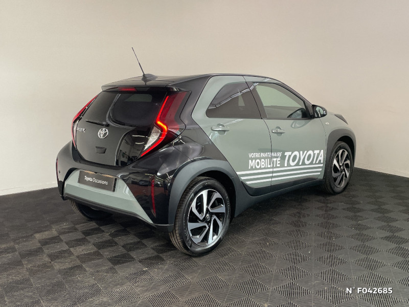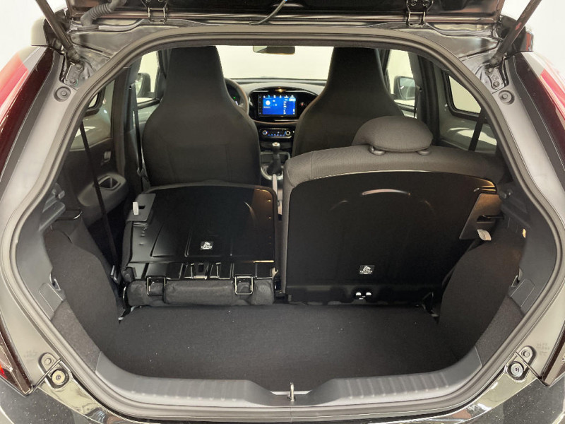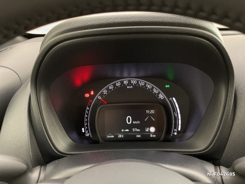 Levier de vitesse en cuir avec surpiqûres couleur carrosserie / Ornements latéraux noirs (partie supérieure du bas de caisse) / Passages de roues et bas de caisse latéraux noirs / Contours d'aérateurs couleur carrosserie / Connectivité smartphone Apple CarPlay et Android Auto avec câble USB / Contour de console centrale couleur carrosserie / Contour de l'écran tactile noir laqué / Branche centrale du volant noir laqué / Calandre noir laqué / Carrosserie bi-ton avec toit et piliers peints en noir / Ciel de toit noir / Combiné d'instrumentation avec écran couleur TFT multifonction 4,2" / Compte-tours / Poignées de portes extérieures couleur carroserie / Pommeau de levier de vitesses avec contour chromé / Porte-gobelet / Projecteurs AV et clignotants halogènes / Rétroviseurs dégivrants et réglables électriquement (rabattables manuellement) / Sellerie tissu avec contour d'assise et de dossier couleur carrosserie / Services connectés MyT (Niveau de carburant, trouver mon véhicule, données de conduite, voyants d'avertissements, service et entretien) / Système d'appel d'urgence automatique "E-Call" / Système de freinage antiblocage ABS / Système multimédia Toyota Touch avec écran couleur tactile 8'', radio digitale (DAB), système téléphonique Bluetooth / Systèmes de contrôle de stabilité (VSC) et de motricité (TRC) / Tapis de sol AV/AR / 1 Port USB de type A sur console centrale / 4 HP / Toyota Safety Sense : Système de sécurité précollision avec détection des véhicules, des piétons et des cyclistes, actif également dans les intersections, Alerte de franchissement de ligne avec aide au maintien dans la voie et assistant de trajectoire, Régulateur de vitesse adaptatif intelligent, Lecture des panneaux de signalisation et Commutation automatique des feux de route / Coques de rétroviseurs extérieurs peintes en noir / Eclairage de coffre / Fermeture centralisée avec commande à distance / Indicateur de perte de pression des pneus / Insert de pare-chocs AR couleur carrosserie / Jantes en alliage 17" noir usiné avec centre de roue avec logo Toyota noir / Kit anti-crevaison / Kit de sécurité