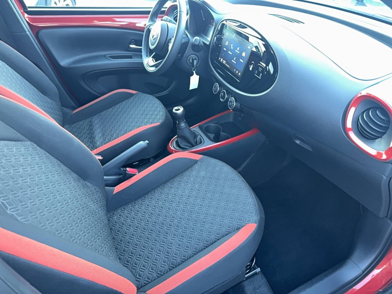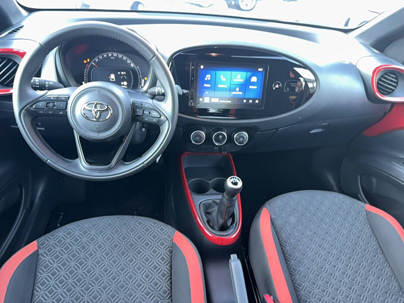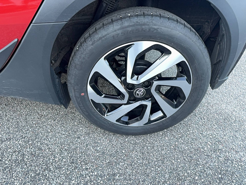 1 Port USB de type A sur console centrale / 4 HP / Branche centrale du volant noir laqué / Calandre noir laqué / Carrosserie bi-ton avec toit et piliers peints en noir / Ciel de toit noir / Combiné d'instrumentation avec écran couleur TFT multifonction 4,2" / Compte-tours / Connectivité smartphone Apple CarPlay et Android Auto avec câble USB / Contour de console centrale couleur carrosserie / Contour de l'écran tactile noir laqué / Contours d'aérateurs couleur carrosserie / Coques de rétroviseurs extérieurs peintes en noir / Eclairage de coffre / Fermeture centralisée avec commande à distance / Indicateur de perte de pression des pneus / Insert de pare-chocs AR couleur carrosserie / Jantes en alliage 17" noir usiné avec centre de roue avec logo Toyota noir / Kit anti-crevaison / Kit de sécurité / Levier de vitesse en cuir avec surpiqûres couleur carrosserie / Ornements latéraux noirs (partie supérieure du bas de caisse) / Passages de roues et bas de caisse latéraux noirs / Poignées de portes extérieures couleur carroserie / Pommeau de levier de vitesses avec contour chromé / Porte-gobelet / Projecteurs AV et clignotants halogènes / Rétroviseurs dégivrants et réglables électriquement (rabattables manuellement) / Sellerie tissu avec contour d'assise et de dossier couleur carrosserie / Services connectés MyT (Niveau de carburant, trouver mon véhicule, données de conduite, voyants d'avertissements, service et entretien) / Système d'appel d'urgence automatique "E-Call" / Système de freinage antiblocage ABS / Système multimédia Toyota Touch avec écran couleur tactile 8'', radio digitale (DAB), système téléphonique Bluetooth / Systèmes de contrôle de stabilité (VSC) et de motricité (TRC) / Tapis de sol AV/AR / Toyota Safety Sense : Système de sécurité précollision avec détection des véhicules, des piétons et des cyclistes, actif également dans les intersections, Alerte de franchissement de ligne avec aide au maintien dans la voie et assistant de trajectoire, Régulateur de vitesse adaptatif intelligent, Lecture des panneaux de signalisation et Commutation automatique des feux de route