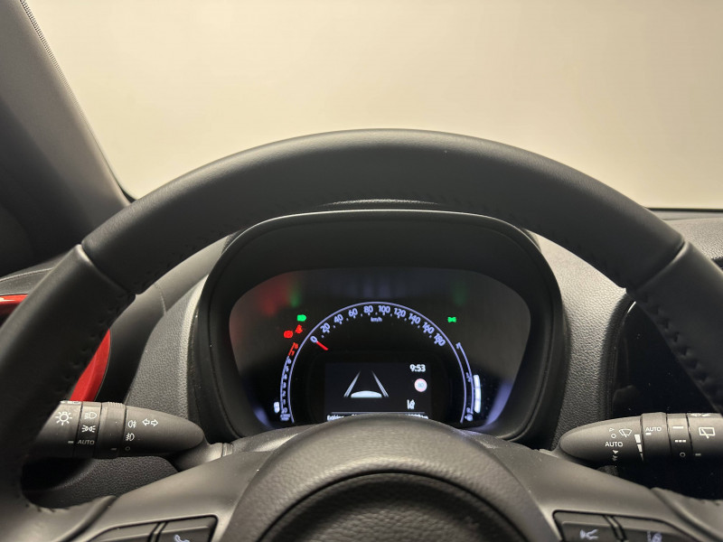 1 Port USB de type C sur console centrale / 1 prise 12V AV sur console centrale / 4 HP / Branche centrale du volant noir laqué / Calandre noir laqué / Capote en toile découvrable electriquement / Carrosserie bi-ton avec toit et piliers peints en noir / Ciel de toit noir / Combiné d'instrumentation avec écran couleur TFT multifonction 4,2" / Compte-tours / Connectivité smartphone Apple CarPlay et Android Auto sans fil / Contour d'aérateurs couleur carrosserie / Contour de console centrale couleur carrosserie / Contour de l'écran tactile noir laqué / Coques de rétroviseurs noires / Eclairage de coffre / Entourage d'antibrouillards noir laqué / Fermeture centralisée avec commande à distance / Indicateur de perte de pression des pneus / Insert de pare-chocs AR couleur carrosserie / Inserts sur contours et bas de caisse AV/AR (selon couleur carrosserie) : Noir laqué / Jantes en alliage 18" noir mat avec, selon couleur carrosserie, inserts Rouge Piment / Kit anti-crevaison / Kit de sécurité / Levier de vitesse en cuir avec surpiqûres couleur carrosserie / Ornements latéraux noirs (partie supérieure du bas de caisse) / Passages de roues et bas de caisse latéraux noirs / Poignées de portes extérieurs couleur carroserie / Porte-gobelets (2) / Projecteurs AV et clignotants halogènes / Rétroviseurs extérieurs électriques, dégivrants et rabattables manuellement / Sellerie tissu avec contour d'assise et de dossier couleur carrosserie / Services connectés standards MyToyota (inclus 10 ans) / Système d'appel d'urgence automatique "E-Call" / Système de contrôle de stabilité (VSC) + Système de contrôle de motricité (TRC) / Système de freinage antiblocage ABS / Système multimédia Toyota Touch 3 avec écran couleur tactile 9" haute définition, Bluetooth, USB, Radio FM et DAB (digitale), Système de connectivité smartphone Apple CarPlay et Android Auto (sans fil) / Tapis de sol AV/AR / Toyota Safety Sense Système de sécurité précollision avec détection des véhicules, piétons et cyclistes, actif également dans les intersections. Alerte de franchissement de ligne avec aide au maintien dans la file, assistant de trajectoire et détecteur de fatigue, Lecture des panneaux de signalisation avec limiteur de vitesse, Gestion automatique des feux de route, Régulateur de vitesse adaptatif intelligent / Volant cuir avec commandes au volant