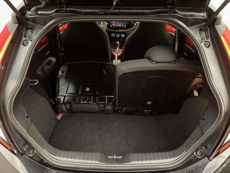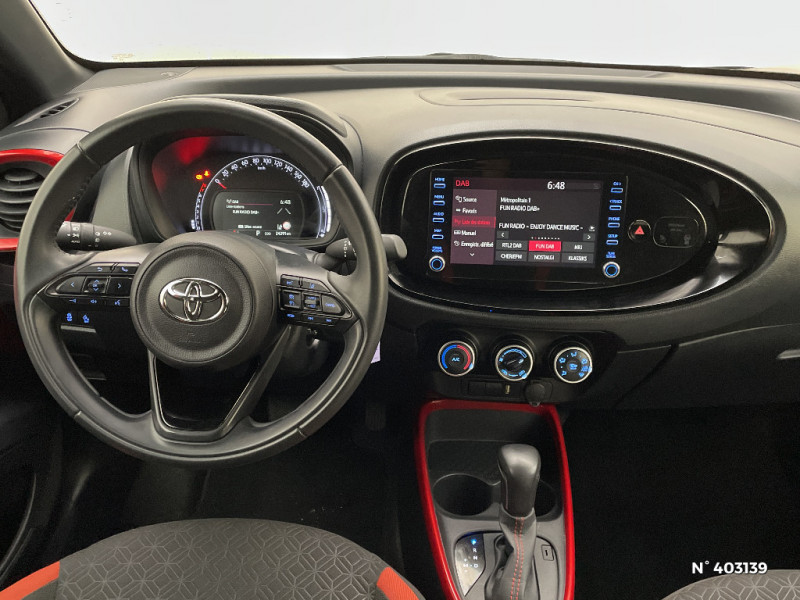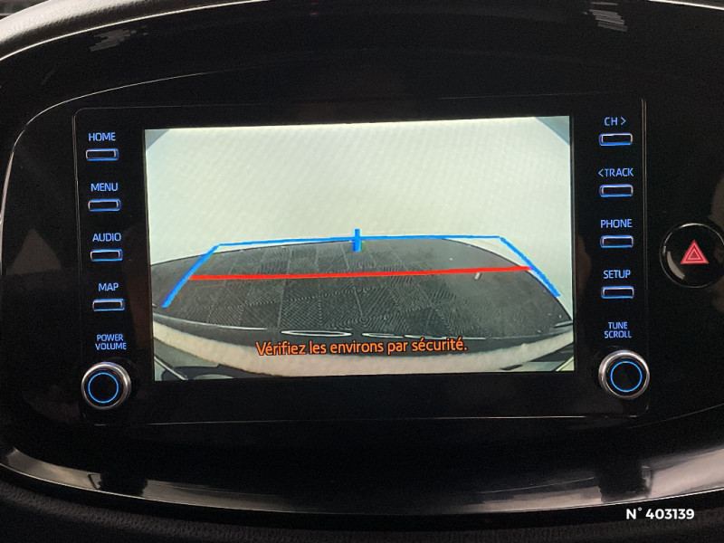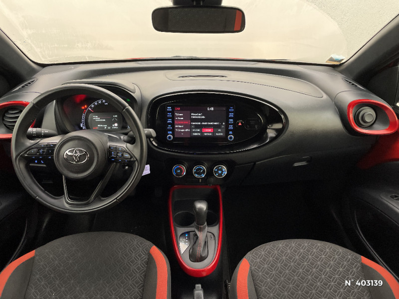 Contour de console centrale couleur carrosserie / Contours d'aérateurs couleur carrosserie / Coques de rétroviseurs noires / Eclairage de coffre / Fermeture centralisée avec commande à distance / Indicateur de perte de pression des pneus / Insert de pare-chocs AR couleur carrosserie / Jantes alliage 17" avec centre de roues avec logo Toyota noir / Kit anti-crevaison / Kit de sécurité / Levier de vitesse en cuir avec surpiqûres couleur carrosserie / Ornements latéraux noirs / Passages de roues et bas de caisse latéraux noirs / Poignées de portes couleur carrosserie / Porte-gobelet / Projecteurs AV et clignotants et feux halogènes / Sellerie tissu avec contour d'assise et de dossier couleur carrosserie / Système d'appel d'urgence automatique "E-Call" / Système de contrôle de stabilité (VSC) + Système de contrôle de motricité (TRC) / Système de freinage antiblocage ABS / Système multimédia Toyota Touch avec écran tactile couleur 8" / Tapis de sol AV/AR / Toyota Safety Sense : Système de sécurité précollision avec détection des véhicules, piétons et cyclistes, actif également dans les intersections, Alerte de franchissement de ligne avec aide au maintien dans la file, assistant de trajectoire et détecteur de fatigue, Régulateur de vitesse adaptatif intelligent allant jusqu'à l'arrêt, Lecture des panneaux de signalisation avec limiteur de vitesse et Gestion automatique des feux de route / 1 Port USB type A AV / 2 HP / Appuis-tête AR intdépendants / Branche centrale du volant noir laqué / Calandre noir laqué / Carrosserie bi-ton avec toit et piliers peints en noir / Ciel de toit noir / Combiné d'instrumentation avec écran couleur TFT multifonction 4" / Compte-tours / Connectivité smartphone Apple CarPlay et Android Auto / Contour de l'ecran tactile 8" noir laqué