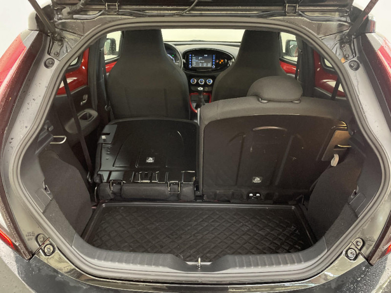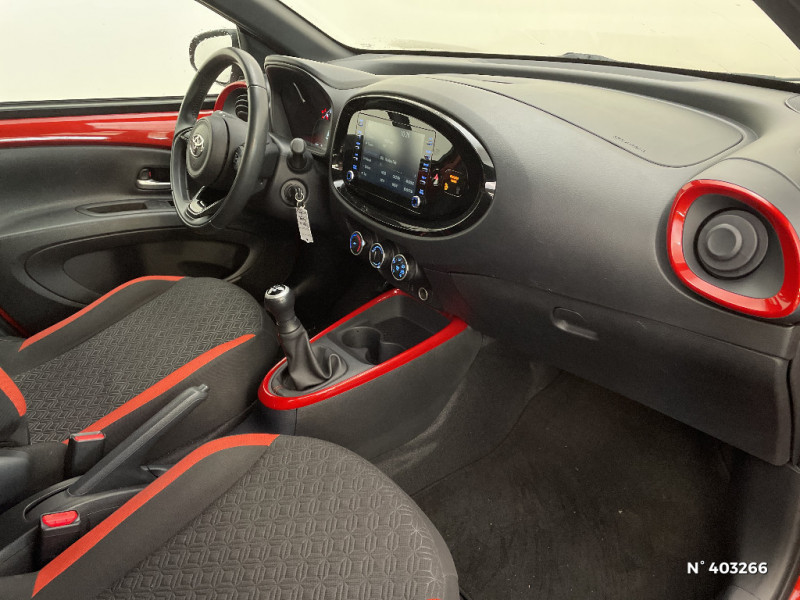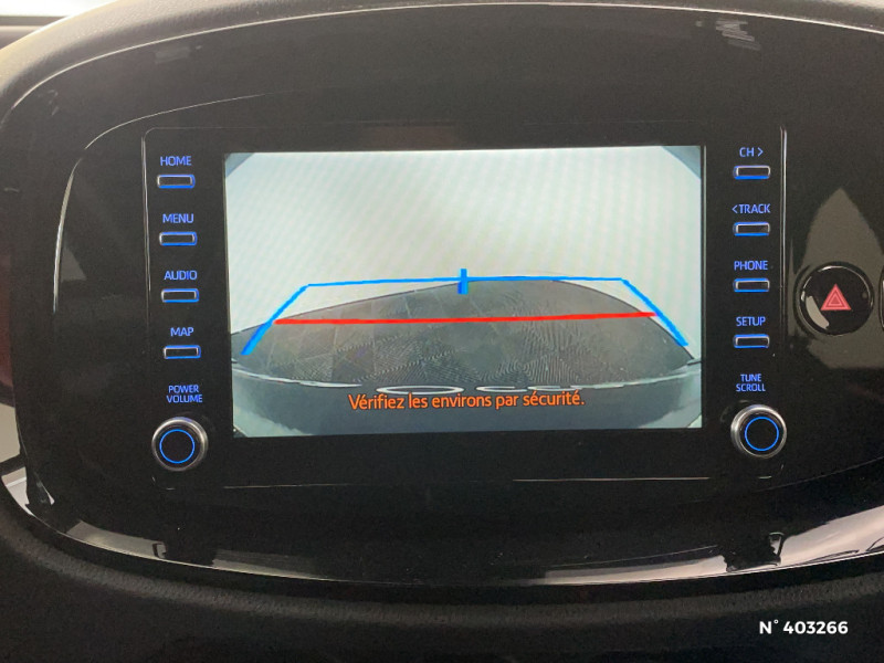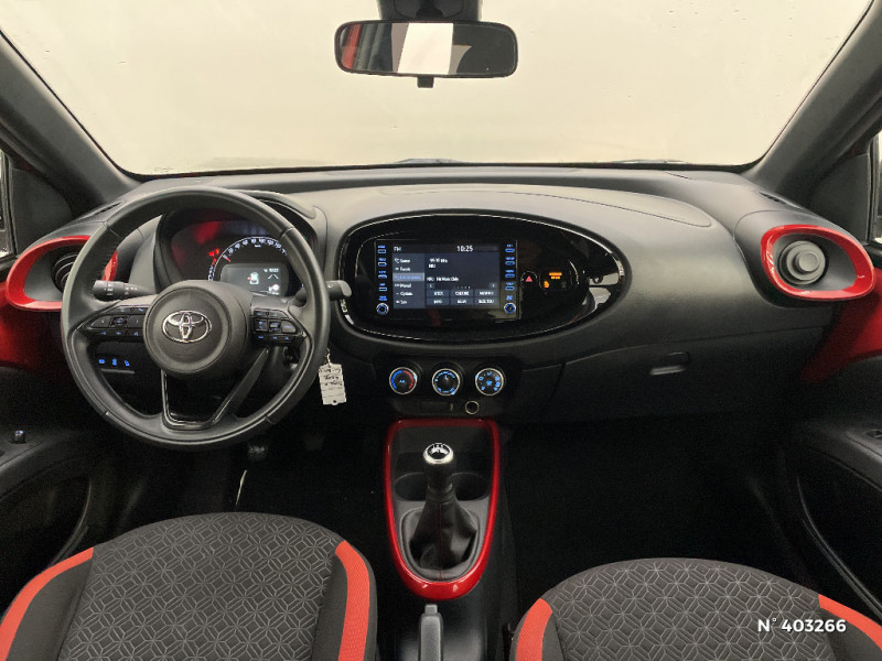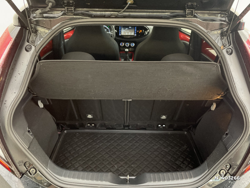 Branche centrale du volant noir laqué / Calandre noir laqué / Carrosserie bi-ton avec toit et piliers peints en noir / Ciel de toit noir / Combiné d'instrumentation avec écran couleur TFT multifonction 4" / Compte-tours / Connectivité smartphone Apple CarPlay et Android Auto / Contour de console centrale couleur carrosserie / Contour de l'ecran tactile 8" noir laqué / Contours d'aérateurs couleur carrosserie / Coques de rétroviseurs noires / Eclairage de coffre / 1 Port USB type A AV / 2 HP / Toyota Safety Sense : Système de sécurité précollision avec détection des véhicules, piétons et cyclistes, actif également dans les intersections, Alerte de franchissement de ligne avec aide au maintien dans la file, assistant de trajectoire et détecteur de fatigue, Régulateur de vitesse adaptatif intelligent allant jusqu'à l'arrêt, Lecture des panneaux de signalisation avec limiteur de vitesse et Gestion automatique des feux de route / Fermeture centralisée avec commande à distance / Indicateur de perte de pression des pneus / Insert de pare-chocs AR couleur carrosserie / Jantes alliage 17" avec centre de roues avec logo Toyota noir / Kit anti-crevaison / Kit de sécurité / Levier de vitesse en cuir avec surpiqûres couleur carrosserie / Ornements latéraux noirs / Passages de roues et bas de caisse latéraux noirs / Poignées de portes couleur carrosserie / Porte-gobelet / Projecteurs AV et clignotants et feux halogènes / Sellerie tissu avec contour d'assise et de dossier couleur carrosserie / Système d'appel d'urgence automatique "E-Call" / Système de contrôle de stabilité (VSC) + Système de contrôle de motricité (TRC) / Système de freinage antiblocage ABS / Système multimédia Toyota Touch avec écran tactile couleur 8" / Tapis de sol AV/AR / Appuis-tête AR intdépendants
