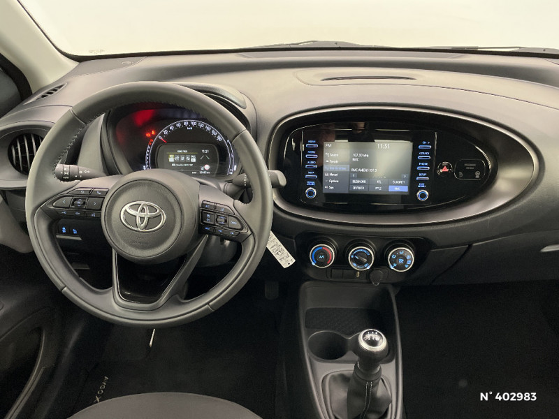 Toyota Safety Sense : Système de sécurité précollision avec détection des véhicules, piétons et cyclistes, actif également dans les intersections, Alerte de franchissement de ligne avec aide au maintien dans la file, assistant de trajectoire et détecteur de fatigue, Régulateur de vitesse adaptatif intelligent allant jusqu'à l'arrêt, Lecture des panneaux de signalisation avec limiteur de vitesse et Gestion automatique des feux de route / 1 Port USB type A AV / Appuis-tête AR intdépendants / Ciel de toit gris clair / Combiné d'instrumentation avec écran couleur TFT multifonction 4" / Compte-tours / Connectivité smartphone Apple CarPlay et Android Auto / Coques de rétroviseurs noires / Eclairage de coffre / Fermeture centralisée avec commande à distance / Indicateur de perte de pression des pneus / Jantes en acier 17" avec enjoliveurs et centre de roue avec logo Toyota / Kit anti-crevaison / Kit de sécurité / Levier de vitesse en cuir synthetique avec surpiqures et pommeau avec contour chrome / Passages de roues et bas de caisse latéraux noirs / Peinture Blanc Pur / Poignées de portes couleur carrosserie / Porte-gobelet / Projecteurs AV et clignotants et feux halogènes / Système d'appel d'urgence automatique "E-Call" / Système de contrôle de stabilité (VSC) + Système de contrôle de motricité (TRC) / Système de freinage antiblocage ABS / Système multimédia Toyota Touch avec écran couleur tactile 7" multifonction, système de téléphone Bluetooth, 4 HP et radio digitale (DAB) / Tapis de sol AV/AR / 2 HP