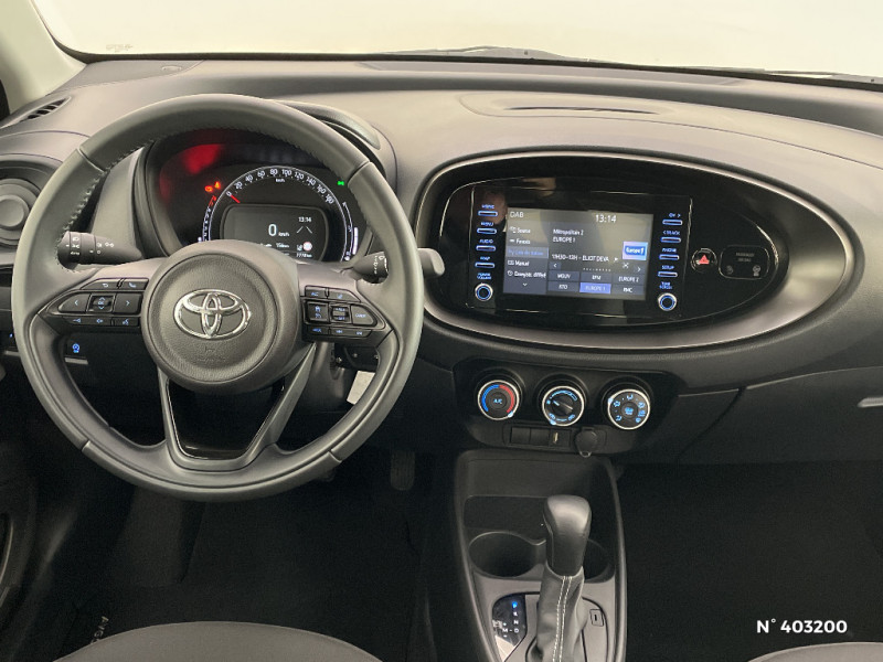 Combiné d'instrumentation avec écran couleur TFT multifonction 4" / Compte-tours / Connectivité smartphone Apple CarPlay et Android Auto / Coques de rétroviseurs noires / Eclairage de coffre / Fermeture centralisée avec commande à distance / Indicateur de perte de pression des pneus / Jantes en acier 17" avec enjoliveurs et centre de roue avec logo Toyota / Kit anti-crevaison / Kit de sécurité / Levier de vitesse en cuir synthetique avec surpiqures et pommeau avec contour chrome / Passages de roues et bas de caisse latéraux noirs / Peinture Blanc Pur / Poignées de portes couleur carrosserie / Porte-gobelet / Projecteurs AV et clignotants et feux halogènes / Système d'appel d'urgence automatique "E-Call" / Système de contrôle de stabilité (VSC) + Système de contrôle de motricité (TRC) / Système de freinage antiblocage ABS / Système multimédia Toyota Touch avec écran couleur tactile 7" multifonction, système de téléphone Bluetooth, 4 HP et radio digitale (DAB) / Tapis de sol AV/AR / Toyota Safety Sense : Système de sécurité précollision avec détection des véhicules, piétons et cyclistes, actif également dans les intersections, Alerte de franchissement de ligne avec aide au maintien dans la file, assistant de trajectoire et détecteur de fatigue, Régulateur de vitesse adaptatif intelligent allant jusqu'à l'arrêt, Lecture des panneaux de signalisation avec limiteur de vitesse et Gestion automatique des feux de route / 1 Port USB type A AV / 2 HP / Appuis-tête AR intdépendants / Ciel de toit gris clair