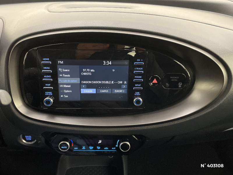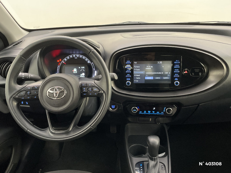 Ciel de toit gris clair / Combiné d'instrumentation avec écran couleur TFT multifonction 4" / Compte-tours / Connectivité smartphone Apple CarPlay et Android Auto / Coques de rétroviseurs noires / Eclairage de coffre / Fermeture centralisée avec commande à distance / Indicateur de perte de pression des pneus / Jantes en acier 17" avec enjoliveurs et centre de roue avec logo Toyota / Kit anti-crevaison / Kit de sécurité / Levier de vitesse en cuir synthetique avec surpiqures et pommeau avec contour chrome / Passages de roues et bas de caisse latéraux noirs / Peinture Blanc Pur / Poignées de portes couleur carrosserie / Porte-gobelet / Projecteurs AV et clignotants et feux halogènes / Système d'appel d'urgence automatique "E-Call" / Système de contrôle de stabilité (VSC) + Système de contrôle de motricité (TRC) / Système de freinage antiblocage ABS / Système multimédia Toyota Touch avec écran couleur tactile 7" multifonction, système de téléphone Bluetooth, 4 HP et radio digitale (DAB) / Tapis de sol AV/AR / Toyota Safety Sense : Système de sécurité précollision avec détection des véhicules, piétons et cyclistes, actif également dans les intersections, Alerte de franchissement de ligne avec aide au maintien dans la file, assistant de trajectoire et détecteur de fatigue, Régulateur de vitesse adaptatif intelligent allant jusqu'à l'arrêt, Lecture des panneaux de signalisation avec limiteur de vitesse et Gestion automatique des feux de route / 1 Port USB type A AV / 2 HP / Appuis-tête AR intdépendants