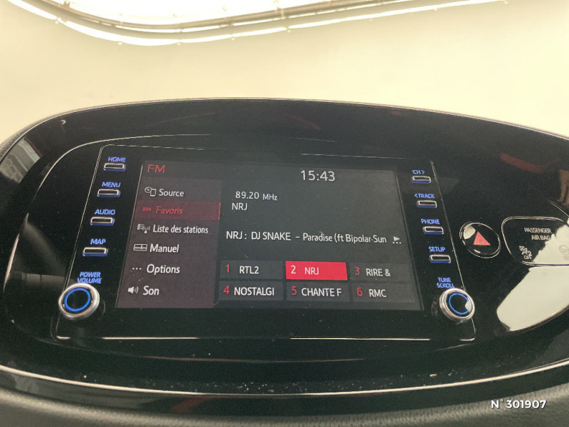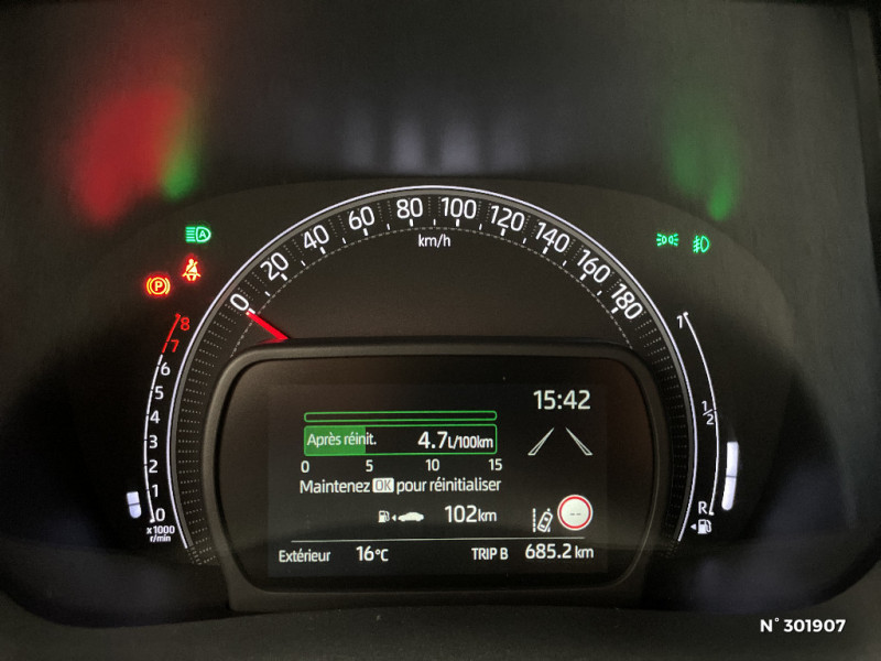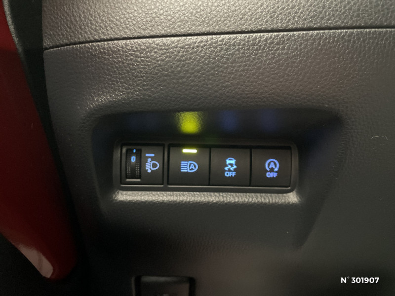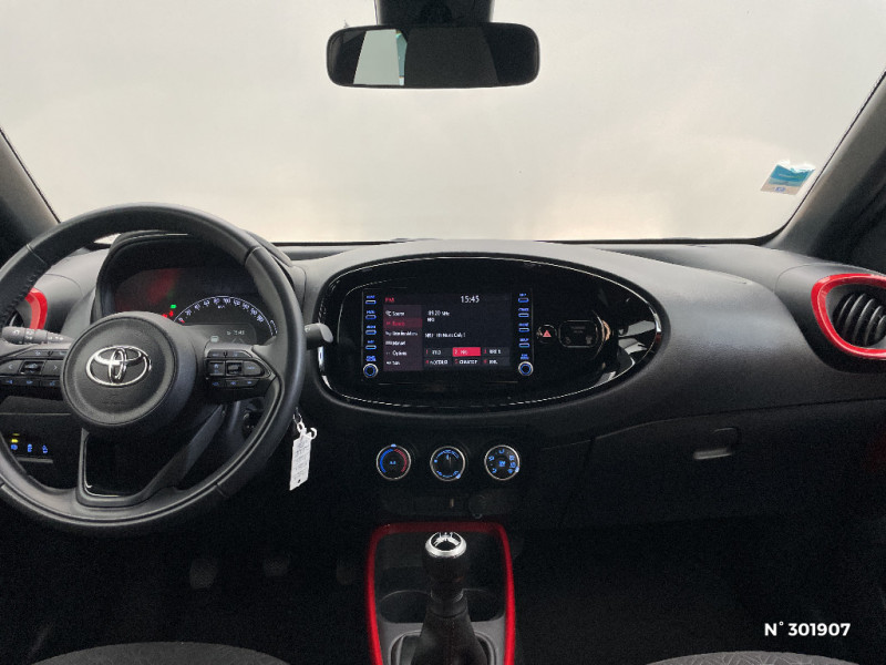 Système de freinage antiblocage ABS / Système multimédia Toyota Touch avec écran tactile couleur 8" / Tapis de sol AV/AR / Toyota Safety Sense : Système de sécurité précollision avec détection des véhicules, piétons et cyclistes, actif également dans les intersections, Alerte de franchissement de ligne avec aide au maintien dans la file, assistant de trajectoire et détecteur de fatigue, Régulateur de vitesse adaptatif intelligent allant jusqu'à l'arrêt, Lecture des panneaux de signalisation avec limiteur de vitesse et Gestion automatique des feux de route / 1 Port USB type A AV / 2 HP / Appuis-tête AR intdépendants / Branche centrale du volant noir laqué / Calandre noir laqué / Carrosserie bi-ton avec toit et piliers peints en noir / Ciel de toit noir / Combiné d'instrumentation avec écran couleur TFT multifonction 4" / Compte-tours / Connectivité smartphone Apple CarPlay et Android Auto / Contour de console centrale couleur carrosserie / Contour de l'ecran tactile 8" noir laqué / Contours d'aérateurs couleur carrosserie / Coques de rétroviseurs noires / Eclairage de coffre / Fermeture centralisée avec commande à distance / Indicateur de perte de pression des pneus / Insert de pare-chocs AR couleur carrosserie / Jantes alliage 17" avec centre de roues avec logo Toyota noir / Kit anti-crevaison / Kit de sécurité / Levier de vitesse en cuir avec surpiqûres couleur carrosserie / Ornements latéraux noirs / Passages de roues et bas de caisse latéraux noirs / Poignées de portes couleur carrosserie / Porte-gobelet / Projecteurs AV et clignotants et feux halogènes / Sellerie tissu avec contour d'assise et de dossier couleur carrosserie / Système d'appel d'urgence automatique "E-Call" / Système de contrôle de stabilité (VSC) + Système de contrôle de motricité (TRC)