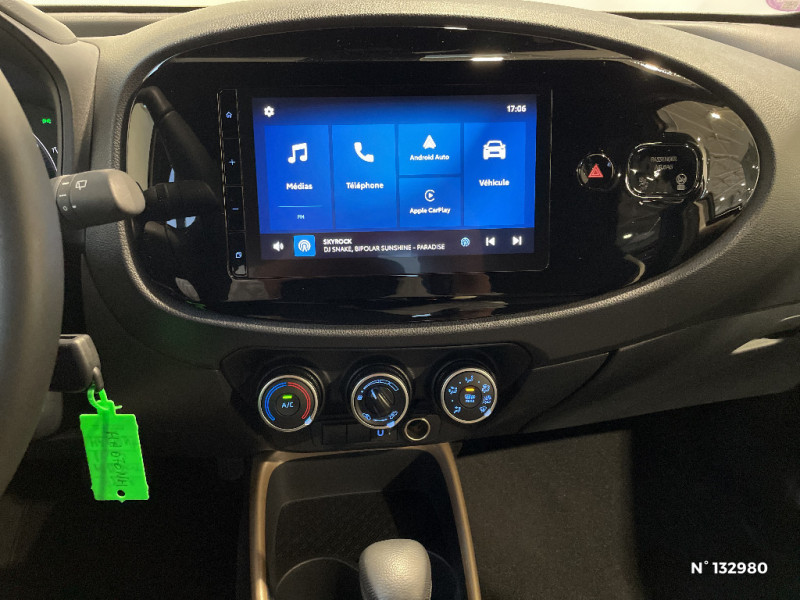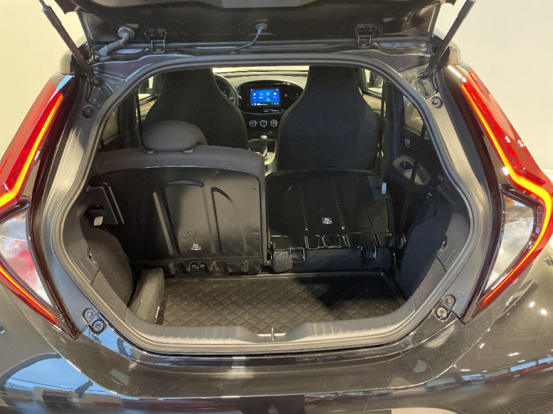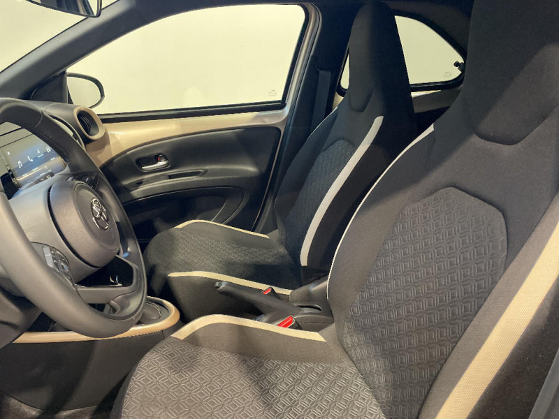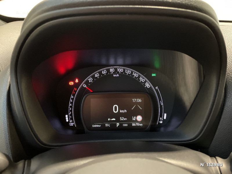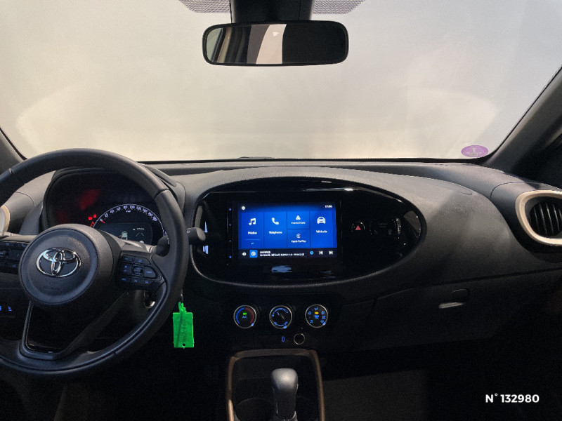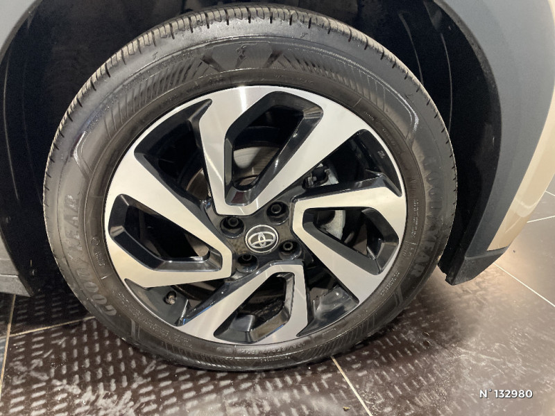 4 HP / 1 prise 12V AV sur console centrale / Branche centrale du volant noir laqué / Calandre noir laqué / Carrosserie bi-ton avec toit et piliers peints en noir / Ciel de toit noir / Combiné d'instrumentation avec écran couleur TFT multifonction 4,2" / Compte-tours / Connectivité smartphone Apple CarPlay et Android Auto sans fil / Contour d'aérateurs couleur carrosserie / Contour de console centrale couleur carrosserie / Contour de l'écran tactile noir laqué / Coques de rétroviseurs noires / Eclairage de coffre / Fermeture centralisée avec commande à distance / Indicateur de perte de pression des pneus / Insert de pare-chocs AR couleur carrosserie / Jantes en alliage 17" noir usiné avec centre de roue avec logo Toyota noir / Kit anti-crevaison / Kit de sécurité / Levier de vitesse en cuir avec surpiqûres couleur carrosserie / Ornements latéraux noirs (partie supérieure du bas de caisse) / Passages de roues et bas de caisse latéraux noirs / Poignées de portes extérieurs couleur carroserie / Porte-gobelets (2) / Projecteurs AV et clignotants halogènes / Rétroviseurs extérieurs électriques, dégivrants et rabattables manuellement / Sellerie tissu avec contour d'assise et de dossier couleur carrosserie / Services connectés standards MyToyota (inclus 10 ans) / Système d'appel d'urgence automatique "E-Call" / Système de contrôle de stabilité (VSC) + Système de contrôle de motricité (TRC) / Système de freinage antiblocage ABS / Système multimédia Toyota Touch 3 avec écran couleur tactile 9" haute définition, Bluetooth, USB, Radio FM et DAB (digitale), Système de connectivité smartphone Apple CarPlay et Android Auto (sans fil) / Système multimédia Toyota Touch 3 avec écran couleur tactile 9", radio digitale (DAB) et système de téléphonie Bluetooth / Tapis de sol AV/AR / Toyota Safety Sense Système de sécurité précollision avec détection des véhicules, des piétons et des cyclistes, actif également dans les intersections, Alerte de franchissement de ligne avec aide au maintien dans la voie et assistant de trajectoire, Régulateur de vitesse adaptatif intelligent, Lecture des panneaux de signalisation, Gestion automatique des feux de route / Toyota Safety Sense Système de sécurité précollision avec détection des véhicules, piétons et cyclistes, actif également dans les intersections. Alerte de franchissement de ligne avec aide au maintien dans la file, assistant de trajectoire et détecteur de fatigue, Lecture des panneaux de signalisation avec limiteur de vitesse, Gestion automatique des feux de route, Régulateur de vitesse adaptatif intelligent / Transmission automatique S-CVT avec commande de boîte de vitesses séquentielle / Volant cuir avec commandes au volant / 1 Port USB de type C sur console centrale