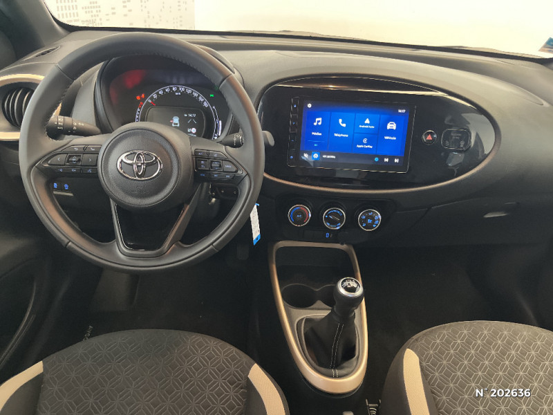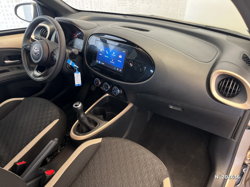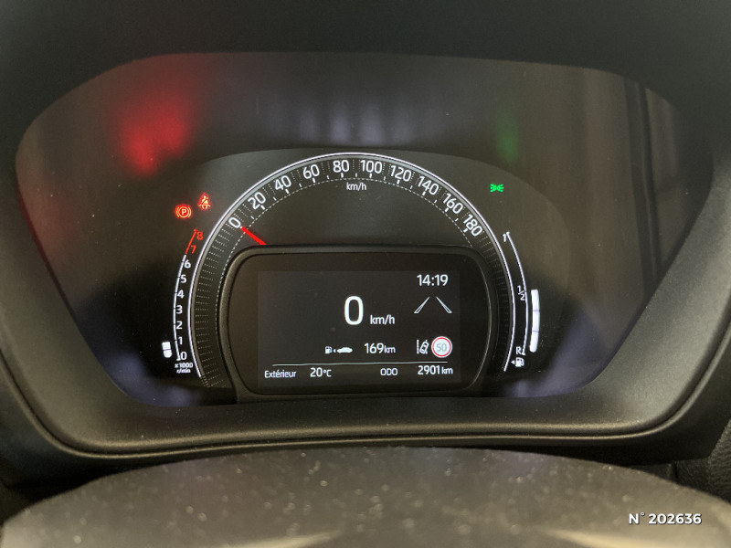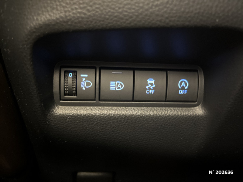 Indicateur de perte de pression des pneus / Jantes alliage 17" avec centre de roues avec logo Toyota noir / Kit anti-crevaison / Kit de sécurité / Levier de vitesse en cuir avec surpiqûres couleur carrosserie / Ornements latéraux noirs / Passages de roues et bas de caisse latéraux noirs / Poignées de portes couleur carrosserie / Porte-gobelet / Projecteurs AV et clignotants et feux halogènes / Sellerie tissu avec contour d'assise et de dossier couleur carrosserie / Système d'appel d'urgence automatique "E-Call" / Système de contrôle de stabilité (VSC) + Système de contrôle de motricité (TRC) / Appuis-tête AR intdépendants / Branche centrale du volant noir laqué / Calandre noir laqué / Carrosserie bi-ton avec toit et piliers peints en noir / Ciel de toit noir / Combiné d'instrumentation avec écran couleur TFT multifonction 4" / Compte-tours / Connectivité smartphone Apple CarPlay et Android Auto / Contour de console centrale couleur carrosserie / Contour de l'ecran tactile 8" noir laqué / Contours d'aérateurs couleur carrosserie / Coques de rétroviseurs noires / Eclairage de coffre / Fermeture centralisée avec commande à distance / Système de freinage antiblocage ABS / Système multimédia Toyota Touch avec écran tactile couleur 8" / Tapis de sol AV/AR / Toyota Safety Sense : Système de sécurité précollision avec détection des véhicules, piétons et cyclistes, actif également dans les intersections, Alerte de franchissement de ligne avec aide au maintien dans la file, assistant de trajectoire et détecteur de fatigue, Régulateur de vitesse adaptatif intelligent allant jusqu'à l'arrêt, Lecture des panneaux de signalisation avec limiteur de vitesse et Gestion automatique des feux de route / 1 Port USB type A AV / 2 HP / Insert de pare-chocs AR couleur carrosserie