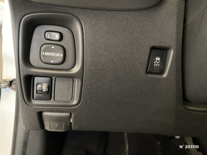 Pommeau de levier de vitesse chromé / Porte-gobelets AR / Rappel sonore d'oubli de ceinture de sécurité AV et AR / Rétroviseurs extérieurs électriques dégivrants couleur carrosserie / Sellerie tissu gris foncé avec renforts latéraux Blanc et Gris clair / Système de contrôle de stabilité (VSC) + Système de contrôle de motricité (TRC) / Système de freinage antiblocage ABS / Compte-tours / Contours d'aérateurs couleur carrosserie / Dossier banquette AR rabattable (monobloc) / Fermeture centralisée des portes avec télécommande / Indicateur de perte de pression des pneus / Insert de pare-chocs AR Noirs / Insert de tableau de bord et console centrale gris / Jantes acier 15" avec enjoliveurs / Lame du pare-chocs AV noir laquée / Poignées de portes extérieures noires / Tapis de sol en velours / Porte-gobelet AV (x2)