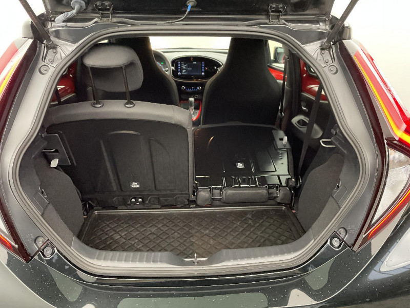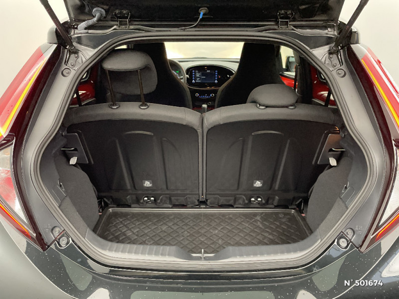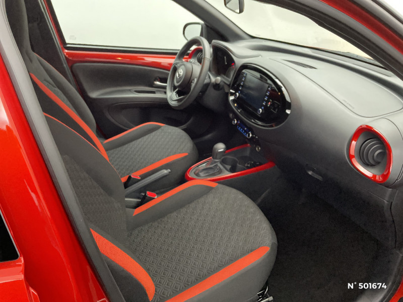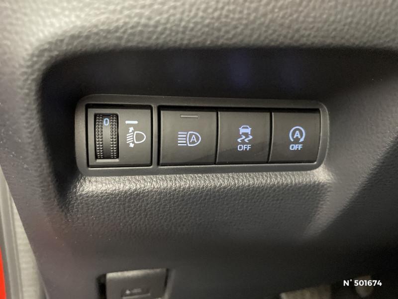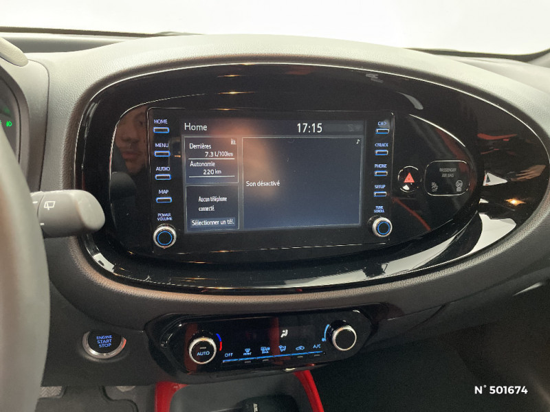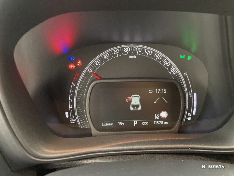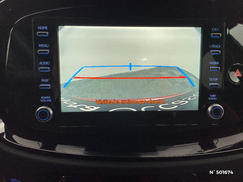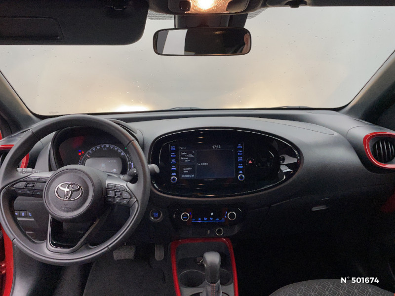 Contour de l'ecran tactile 8" noir laqué / Connectivité smartphone Apple CarPlay et Android Auto / Combiné d'instrumentation avec écran couleur TFT multifonction 4" / Carrosserie bi-ton avec toit et piliers peints en noir / Coques de rétroviseurs noires / Toyota Safety Sense : Système de sécurité précollision avec détection des véhicules, piétons et cyclistes, actif également dans les intersections, Alerte de franchissement de ligne avec aide au maintien dans la file, assistant de trajectoire et détecteur de fatigue, Régulateur de vitesse adaptatif intelligent allant jusqu'à l'arrêt, Lecture des panneaux de signalisation avec limiteur de vitesse et Gestion automatique des feux de route / Système multimédia Toyota Touch avec écran tactile couleur 8" / Porte-gobelet / Jantes alliage 17" avec centre de roues avec logo Toyota noir