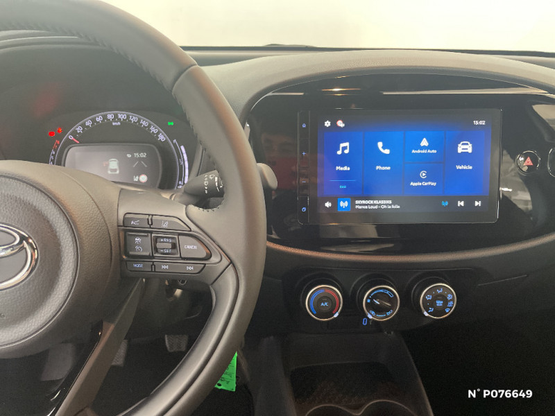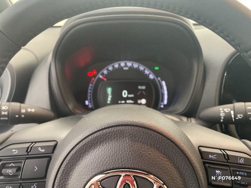 Branche centrale du volant noir laqué / Ciel de toit gris clair / Combiné d'instrumentation avec écran couleur TFT multifonction 4,2" / Compte-tours / Connectivité smartphone Apple CarPlay et Android Auto sans fil / Coques de rétroviseurs noires / Eclairage de coffre / Fermeture centralisée avec commande à distance / Indicateur de perte de pression des pneus / Jantes en acier 17" avec enjoliveurs et centre de roue avec logo Toyota / Kit anti-crevaison / Kit de sécurité / Levier de vitesse en cuir avec surpiqûres / Passages de roues et bas de caisse latéraux noirs / Poignées de portes extérieurs couleur carroserie / Pommeau de levier de vitesse avec contour chromé / Porte-gobelets (2) / Projecteurs AV et clignotants halogènes / Rétroviseurs extérieurs électriques, dégivrants et rabattables manuellement / Services connectés standards MyToyota (inclus 10 ans) / Système d'appel d'urgence automatique "E-Call" / Système de contrôle de stabilité (VSC) + Système de contrôle de motricité (TRC) / Système de freinage antiblocage ABS / Système multimédia Toyota Touch 3 avec écran couleur tactile 9" haute définition, Bluetooth, USB, Radio FM et DAB (digitale), Système de connectivité smartphone Apple CarPlay et Android Auto (sans fil) / Système multimédia Toyota Touch 3 avec écran couleur tactile 9", radio digitale (DAB) et système de téléphonie Bluetooth / Tapis de sol AV/AR / Toyota Safety Sense Système de sécurité précollision avec détection des véhicules, des piétons et des cyclistes, actif également dans les intersections, Alerte de franchissement de ligne avec aide au maintien dans la voie et assistant de trajectoire, Régulateur de vitesse adaptatif intelligent, Lecture des panneaux de signalisation, Gestion automatique des feux de route / Toyota Safety Sense Système de sécurité précollision avec détection des véhicules, piétons et cyclistes, actif également dans les intersections. Alerte de franchissement de ligne avec aide au maintien dans la file, assistant de trajectoire et détecteur de fatigue, Lecture des panneaux de signalisation avec limiteur de vitesse, Gestion automatique des feux de route, Régulateur de vitesse adaptatif intelligent / Volant cuir avec commandes au volant / 1 Port USB de type C sur console centrale / 1 prise 12V AV sur console centrale / 4 HP