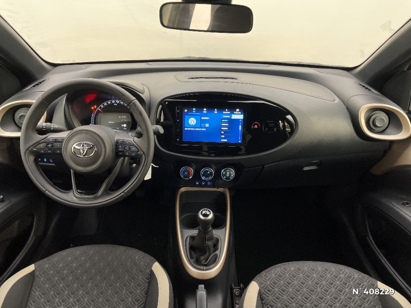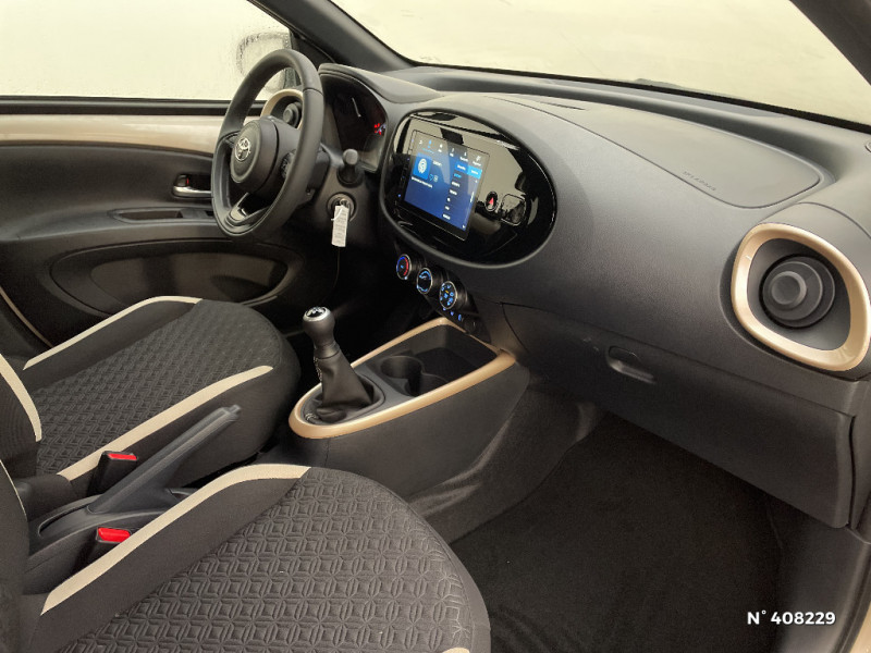 1 Port USB de type C sur console centrale / 1 prise 12V AV sur console centrale / 4 HP / Toyota Safety Sense Système de sécurité précollision avec détection des véhicules, des piétons et des cyclistes, actif également dans les intersections, Alerte de franchissement de ligne avec aide au maintien dans la voie et assistant de trajectoire, Régulateur de vitesse adaptatif intelligent, Lecture des panneaux de signalisation, Gestion automatique des feux de route / Toyota Safety Sense Système de sécurité précollision avec détection des véhicules, piétons et cyclistes, actif également dans les intersections. Alerte de franchissement de ligne avec aide au maintien dans la file, assistant de trajectoire et détecteur de fatigue, Lecture des panneaux de signalisation avec limiteur de vitesse, Gestion automatique des feux de route, Régulateur de vitesse adaptatif intelligent / Volant cuir avec commandes au volant / Branche centrale du volant noir laqué / Calandre noir laqué / Carrosserie bi-ton avec toit et piliers peints en noir / Ciel de toit noir / Compte-tours / Connectivité smartphone Apple CarPlay et Android Auto sans fil / Contour d'aérateurs couleur carrosserie / Contour de console centrale couleur carrosserie / Contour de l'écran tactile noir laqué / Coques de rétroviseurs noires / Eclairage de coffre / Fermeture centralisée avec commande à distance / Indicateur de perte de pression des pneus / Insert de pare-chocs AR couleur carrosserie / Jantes en alliage 17" noir usiné avec centre de roue avec logo Toyota noir / Kit anti-crevaison / Kit de sécurité / Levier de vitesse en cuir avec surpiqûres couleur carrosserie / Ornements latéraux noirs (partie supérieure du bas de caisse) / Passages de roues et bas de caisse latéraux noirs / Poignées de portes extérieurs couleur carroserie / Pommeau de levier de vitesse avec contour chromé / Porte-gobelets (2) / Projecteurs AV et clignotants halogènes / Rétroviseurs extérieurs électriques, dégivrants et rabattables manuellement / Sellerie tissu avec contour d'assise et de dossier couleur carrosserie / Services connectés standards MyToyota (inclus 10 ans) / Système d'appel d'urgence automatique "E-Call" / Système de contrôle de stabilité (VSC) + Système de contrôle de motricité (TRC) / Système de freinage antiblocage ABS / Système multimédia Toyota Touch 3 avec écran couleur tactile 9" haute définition, Bluetooth, USB, Radio FM et DAB (digitale), Système de connectivité smartphone Apple CarPlay et Android Auto (sans fil) / Système multimédia Toyota Touch 3 avec écran couleur tactile 9", radio digitale (DAB) et système de téléphonie Bluetooth / Tapis de sol AV/AR / Combiné d'instrumentation avec écran couleur TFT multifonction 4,2"