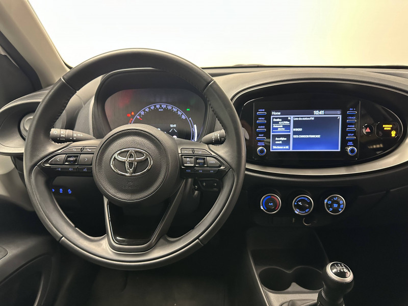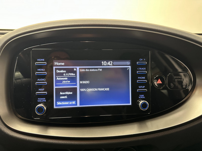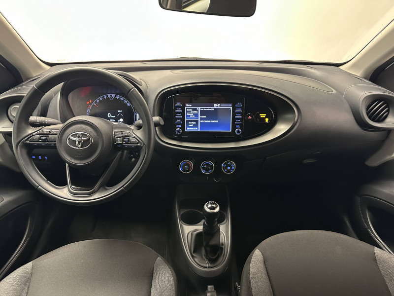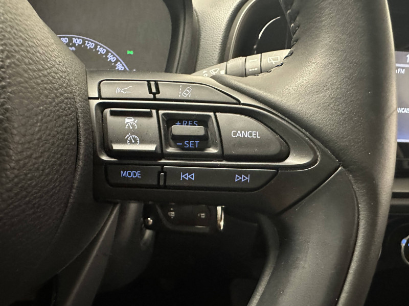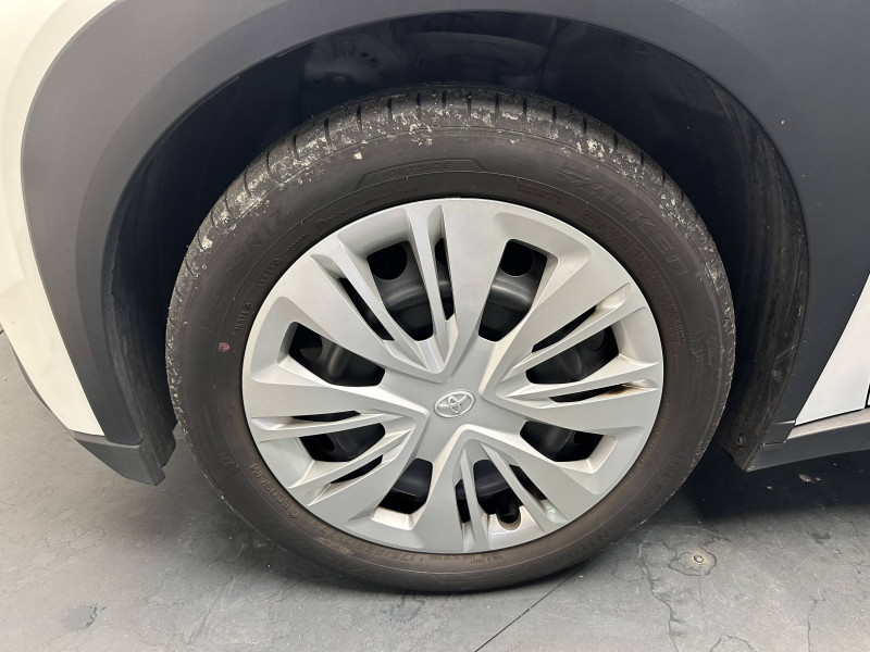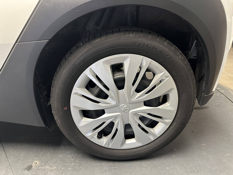 1 Port USB de type C sur console centrale / 1 prise 12V AV sur console centrale / 4 HP / Branche centrale du volant noir laqué / Ciel de toit gris clair / Combiné d'instrumentation avec écran couleur TFT multifonction 4,2" / Compte-tours / Connectivité smartphone Apple CarPlay et Android Auto sans fil / Coques de rétroviseurs noires / Eclairage de coffre / Fermeture centralisée avec commande à distance / Indicateur de perte de pression des pneus / Jantes en acier 17" avec enjoliveurs et centre de roue avec logo Toyota / Kit anti-crevaison / Kit de sécurité / Levier de vitesse en cuir avec surpiqûres / Passages de roues et bas de caisse latéraux noirs / Poignées de portes extérieurs couleur carroserie / Porte-gobelets (2) / Projecteurs AV et clignotants halogènes / Rétroviseurs extérieurs électriques, dégivrants et rabattables manuellement / Services connectés standards MyToyota (inclus 10 ans) / Système d'appel d'urgence automatique "E-Call" / Système de contrôle de stabilité (VSC) + Système de contrôle de motricité (TRC) / Système de freinage antiblocage ABS / Système multimédia Toyota Touch 3 avec écran couleur tactile 9" haute définition, Bluetooth, USB, Radio FM et DAB (digitale), Système de connectivité smartphone Apple CarPlay et Android Auto (sans fil) / Tapis de sol AV/AR / Toyota Safety Sense Système de sécurité précollision avec détection des véhicules, piétons et cyclistes, actif également dans les intersections. Alerte de franchissement de ligne avec aide au maintien dans la file, assistant de trajectoire et détecteur de fatigue, Lecture des panneaux de signalisation avec limiteur de vitesse, Gestion automatique des feux de route, Régulateur de vitesse adaptatif intelligent / Volant cuir avec commandes au volant