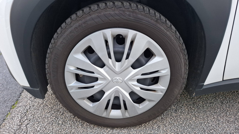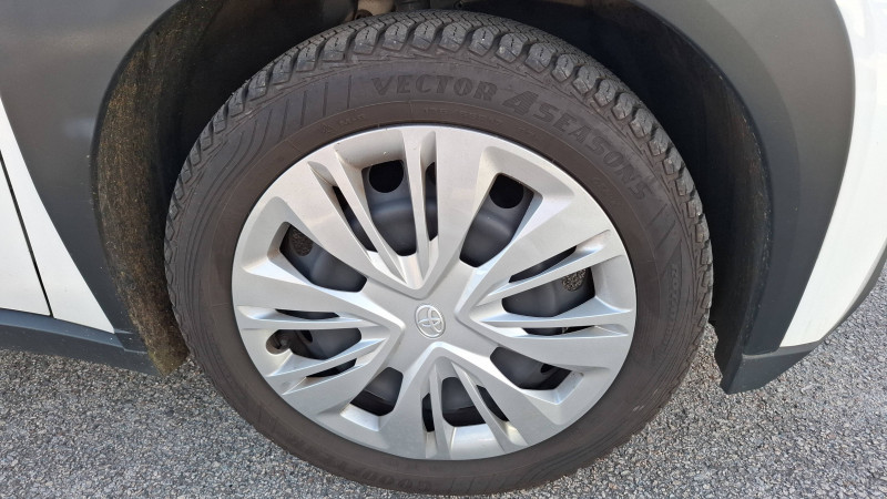 1 Port USB de type C sur console centrale / 1 prise 12V AV sur console centrale / 4 HP / Branche centrale du volant noir laqué / Ciel de toit gris clair / Combiné d'instrumentation avec écran couleur TFT multifonction 4,2" / Compte-tours / Connectivité smartphone Apple CarPlay et Android Auto sans fil / Coques de rétroviseurs noires / Eclairage de coffre / Fermeture centralisée avec commande à distance / Indicateur de perte de pression des pneus / Jantes en acier 17" avec enjoliveurs et centre de roue avec logo Toyota / Kit anti-crevaison / Kit de sécurité / Levier de vitesse en cuir avec surpiqûres / Passages de roues et bas de caisse latéraux noirs / Poignées de portes extérieurs couleur carroserie / Porte-gobelets (2) / Projecteurs AV et clignotants halogènes / Rétroviseurs extérieurs électriques, dégivrants et rabattables manuellement / Système d'appel d'urgence automatique "E-Call" / Système de contrôle de stabilité (VSC) + Système de contrôle de motricité (TRC) / Système de freinage antiblocage ABS / Système multimédia Toyota Touch 3 avec écran couleur tactile 9", radio digitale (DAB) et système de téléphonie Bluetooth / Tapis de sol AV/AR / Toyota Safety Sense Système de sécurité précollision avec détection des véhicules, piétons et cyclistes, actif également dans les intersections. Alerte de franchissement de ligne avec aide au maintien dans la file, assistant de trajectoire et détecteur de fatigue, Lecture des panneaux de signalisation avec limiteur de vitesse, Gestion automatique des feux de route, Régulateur de vitesse adaptatif intelligent / Volant cuir avec commandes au volant