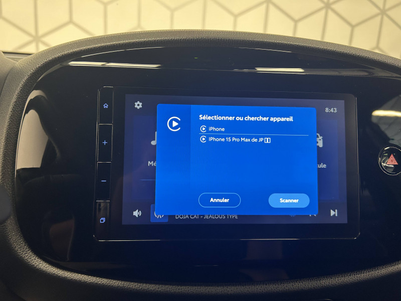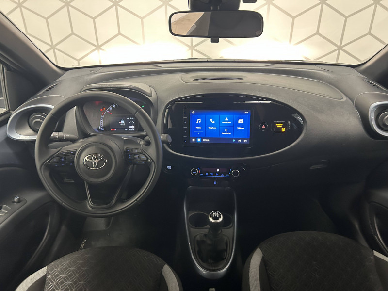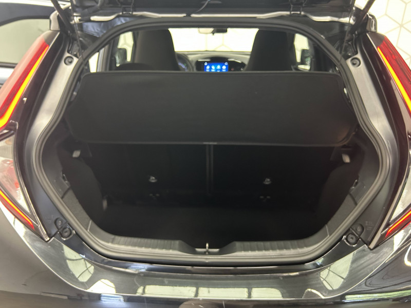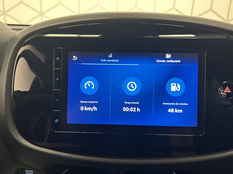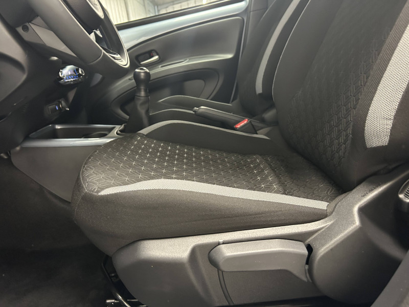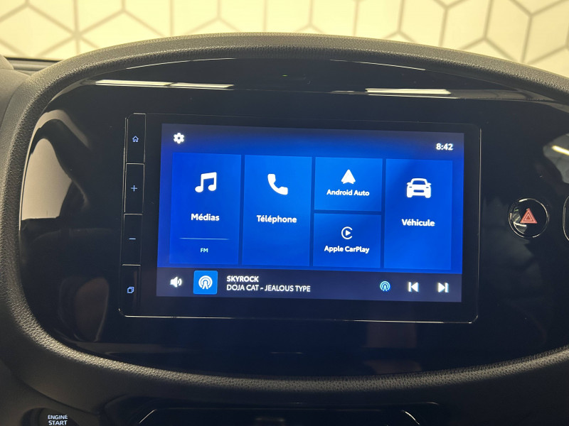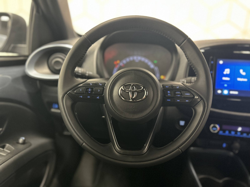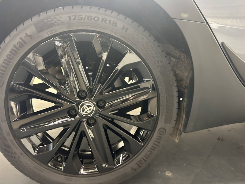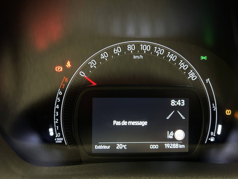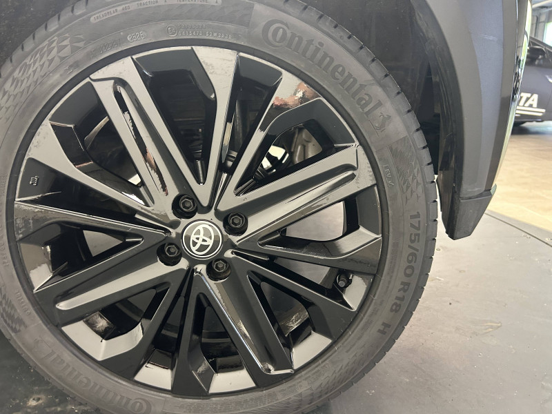 1 Port USB de type C sur console centrale / 1 prise 12V AV sur console centrale / 4 HP / Branche centrale du volant noir laqué / Calandre noir laqué / Capote en toile découvrable electriquement / Carrosserie bi-ton avec toit et piliers peints en noir / Ciel de toit noir / Combiné d'instrumentation avec écran couleur TFT multifonction 4,2" / Compte-tours / Connectivité smartphone Apple CarPlay et Android Auto sans fil / Contour d'aérateurs couleur carrosserie / Contour de console centrale couleur carrosserie / Contour de l'écran tactile noir laqué / Coques de rétroviseurs noires / Eclairage de coffre / Entourage d'antibrouillards noir laqué / Fermeture centralisée avec commande à distance / Indicateur de perte de pression des pneus / Insert de pare-chocs AR couleur carrosserie / Inserts sur contours et bas de caisse AV/AR (selon couleur carrosserie) : Noir laqué / Jantes en alliage 18" noir mat avec, selon couleur carrosserie, inserts Rouge Piment / Kit anti-crevaison / Kit de sécurité / Levier de vitesse en cuir avec surpiqûres couleur carrosserie / Ornements latéraux noirs (partie supérieure du bas de caisse) / Passages de roues et bas de caisse latéraux noirs / Poignées de portes extérieurs couleur carroserie / Porte-gobelets (2) / Projecteurs AV et clignotants halogènes / Rétroviseurs extérieurs électriques, dégivrants et rabattables manuellement / Sellerie tissu avec contour d'assise et de dossier couleur carrosserie / Services connectés standards MyToyota (inclus 10 ans) / Système d'appel d'urgence automatique "E-Call" / Système de contrôle de stabilité (VSC) + Système de contrôle de motricité (TRC) / Système de freinage antiblocage ABS / Système multimédia Toyota Touch 3 avec écran couleur tactile 9" haute définition, Bluetooth, USB, Radio FM et DAB (digitale), Système de connectivité smartphone Apple CarPlay et Android Auto (sans fil) / Tapis de sol AV/AR / Toyota Safety Sense Système de sécurité précollision avec détection des véhicules, piétons et cyclistes, actif également dans les intersections. Alerte de franchissement de ligne avec aide au maintien dans la file, assistant de trajectoire et détecteur de fatigue, Lecture des panneaux de signalisation avec limiteur de vitesse, Gestion automatique des feux de route, Régulateur de vitesse adaptatif intelligent / Volant cuir avec commandes au volant