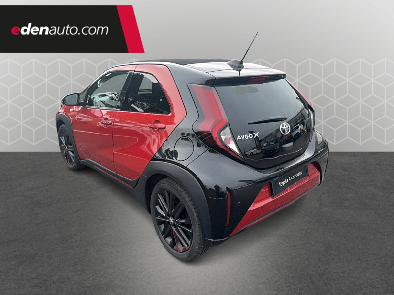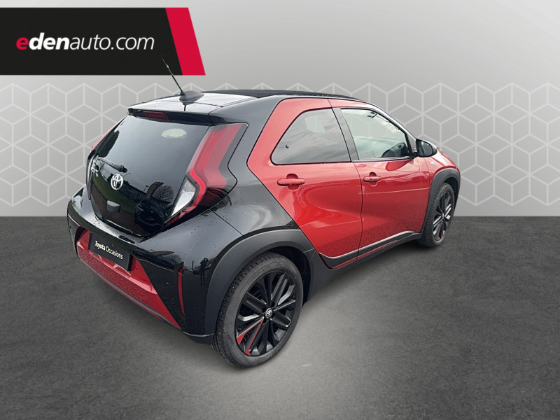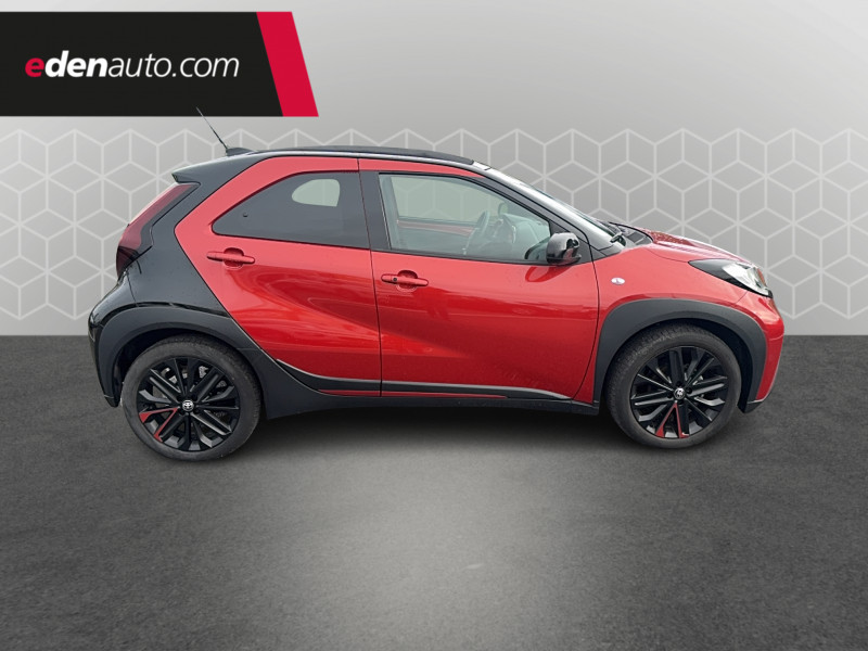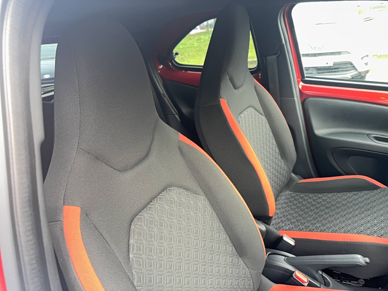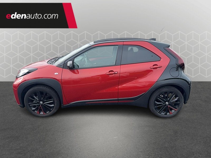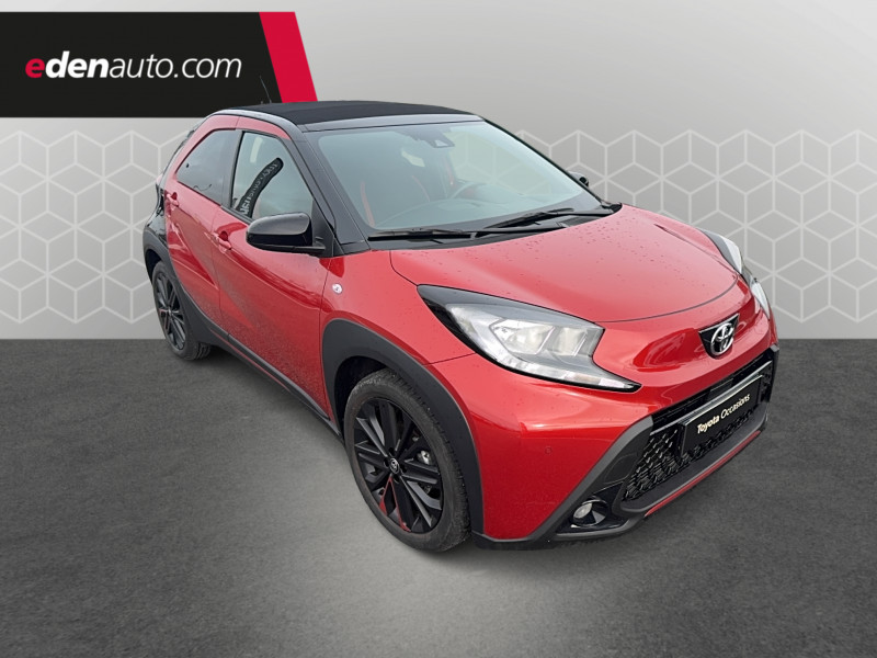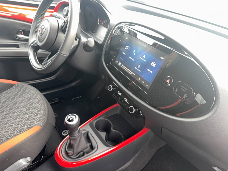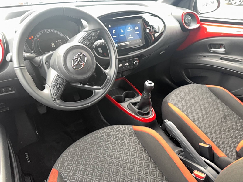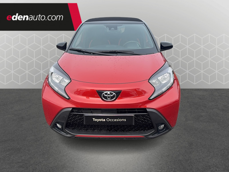 1 Port USB de type C sur console centrale / 1 prise 12V AV sur console centrale / 4 HP / Branche centrale du volant noir laqué / Calandre noir laqué / Capote en toile découvrable electriquement / Carrosserie bi-ton avec toit et piliers peints en noir / Ciel de toit noir / Combiné d'instrumentation avec écran couleur TFT multifonction 4,2" / Compte-tours / Connectivité smartphone Apple CarPlay et Android Auto sans fil / Contour d'aérateurs couleur carrosserie / Contour de console centrale couleur carrosserie / Contour de l'écran tactile noir laqué / Coques de rétroviseurs noires / Eclairage de coffre / Entourage d'antibrouillards noir laqué / Fermeture centralisée avec commande à distance / Indicateur de perte de pression des pneus / Insert de pare-chocs AR couleur carrosserie / Inserts sur contours et bas de caisse AV/AR (selon couleur carrosserie) : Noir laqué / Jantes en alliage 18" noir mat avec, selon couleur carrosserie, inserts Rouge Piment / Kit anti-crevaison / Kit de sécurité / Levier de vitesse en cuir avec surpiqûres couleur carrosserie / Ornements latéraux noirs (partie supérieure du bas de caisse) / Passages de roues et bas de caisse latéraux noirs / Poignées de portes extérieurs couleur carroserie / Porte-gobelets (2) / Projecteurs AV et clignotants halogènes / Rétroviseurs extérieurs électriques, dégivrants et rabattables manuellement / Sellerie tissu avec contour d'assise et de dossier couleur carrosserie / Services connectés standards MyToyota (inclus 10 ans) / Système d'appel d'urgence automatique "E-Call" / Système de contrôle de stabilité (VSC) + Système de contrôle de motricité (TRC) / Système de freinage antiblocage ABS / Système multimédia Toyota Touch 3 avec écran couleur tactile 9" haute définition, Bluetooth, USB, Radio FM et DAB (digitale), Système de connectivité smartphone Apple CarPlay et Android Auto (sans fil) / Tapis de sol AV/AR / Toyota Safety Sense Système de sécurité précollision avec détection des véhicules, piétons et cyclistes, actif également dans les intersections. Alerte de franchissement de ligne avec aide au maintien dans la file, assistant de trajectoire et détecteur de fatigue, Lecture des panneaux de signalisation avec limiteur de vitesse, Gestion automatique des feux de route, Régulateur de vitesse adaptatif intelligent / Volant cuir avec commandes au volant